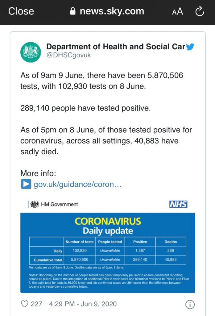 I also read in Sky News today that there is good news and bad news in the UK coronavirus stats… the good news is that the number of excess deaths in the UK is down to the lowest level since the beginning of the epidemic. The term “excess deaths” is the important part. This report so looking at the number of deaths over and above the average for the time of year and that’s where the bad news comes in. The death toll is still mounting.