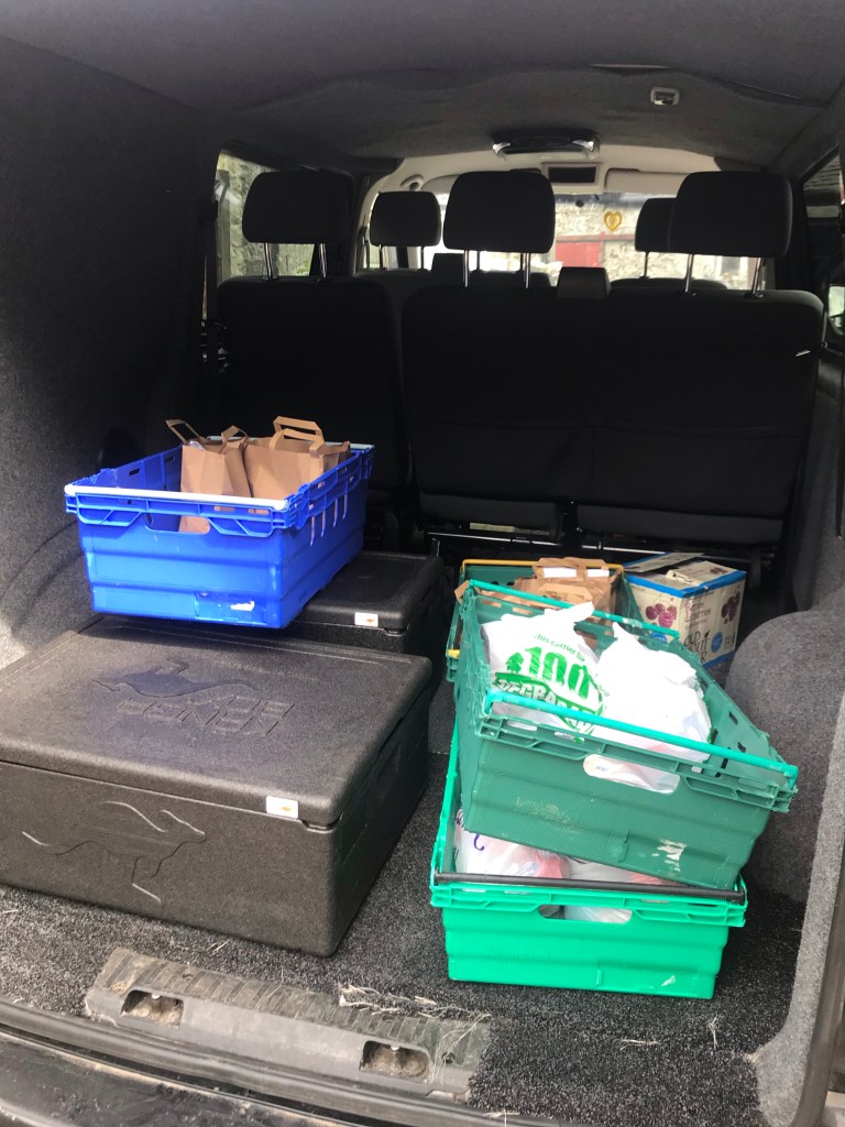 Coffee and the last of the Banana bread to start the day while Craig and I talked all things camper van…. it seems to be a lovely morning so shorts on ready for Beith Trust food deliveries. Out at 10 and got Abbie filled up ready to go… such a difference having the space in the van rather than trying to put in all in the Beetle 🚗🤣
