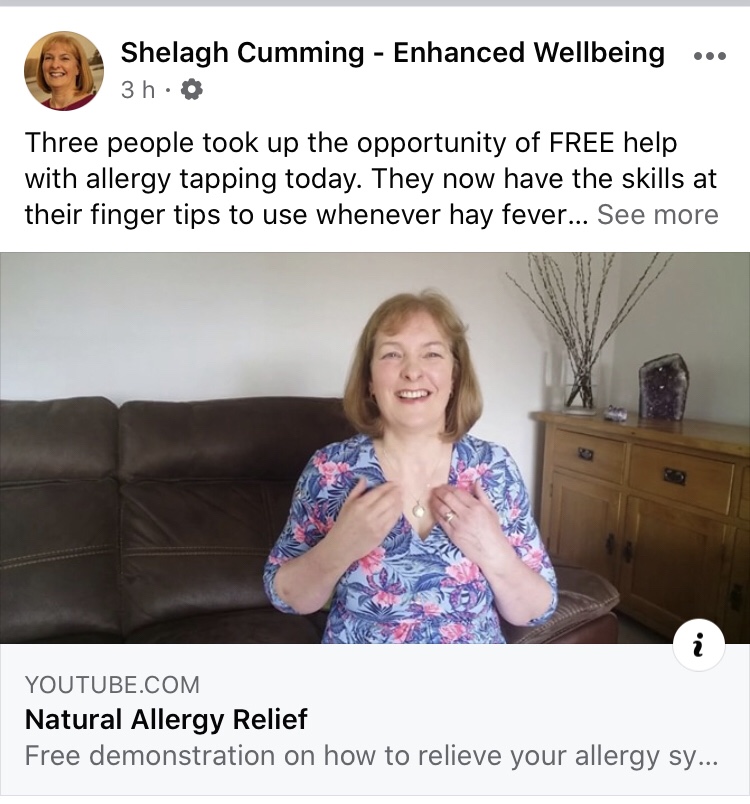 I took part in this today. A lovely session with 3 lovely ladies learning how to banish our allergies. Look forward to trying it out when my hay fever is bad. So lovely of Shelagh to run this for nothing!