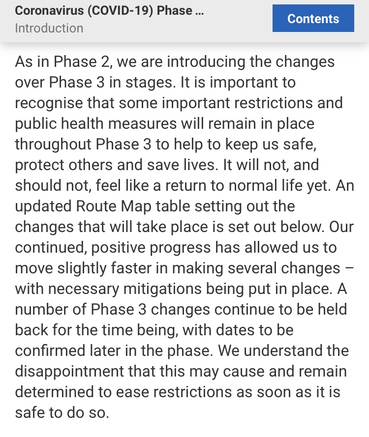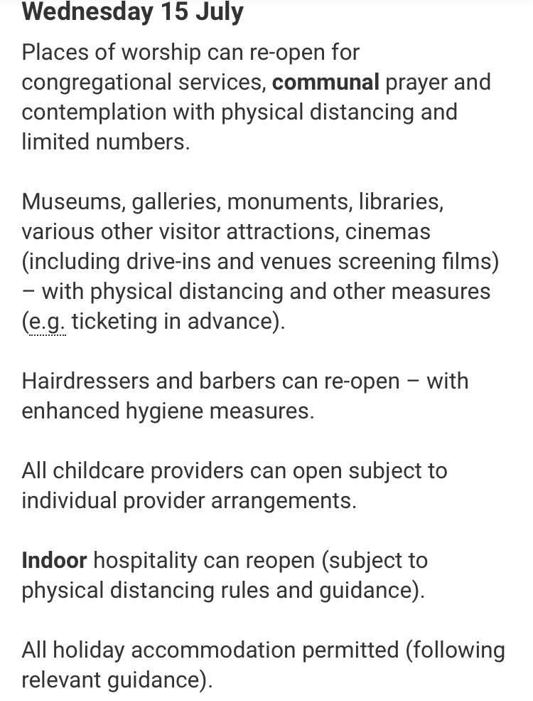 So end of I’m moving on…. in COVID news there’s been a further announcement in lockdown easing today in Scotland.