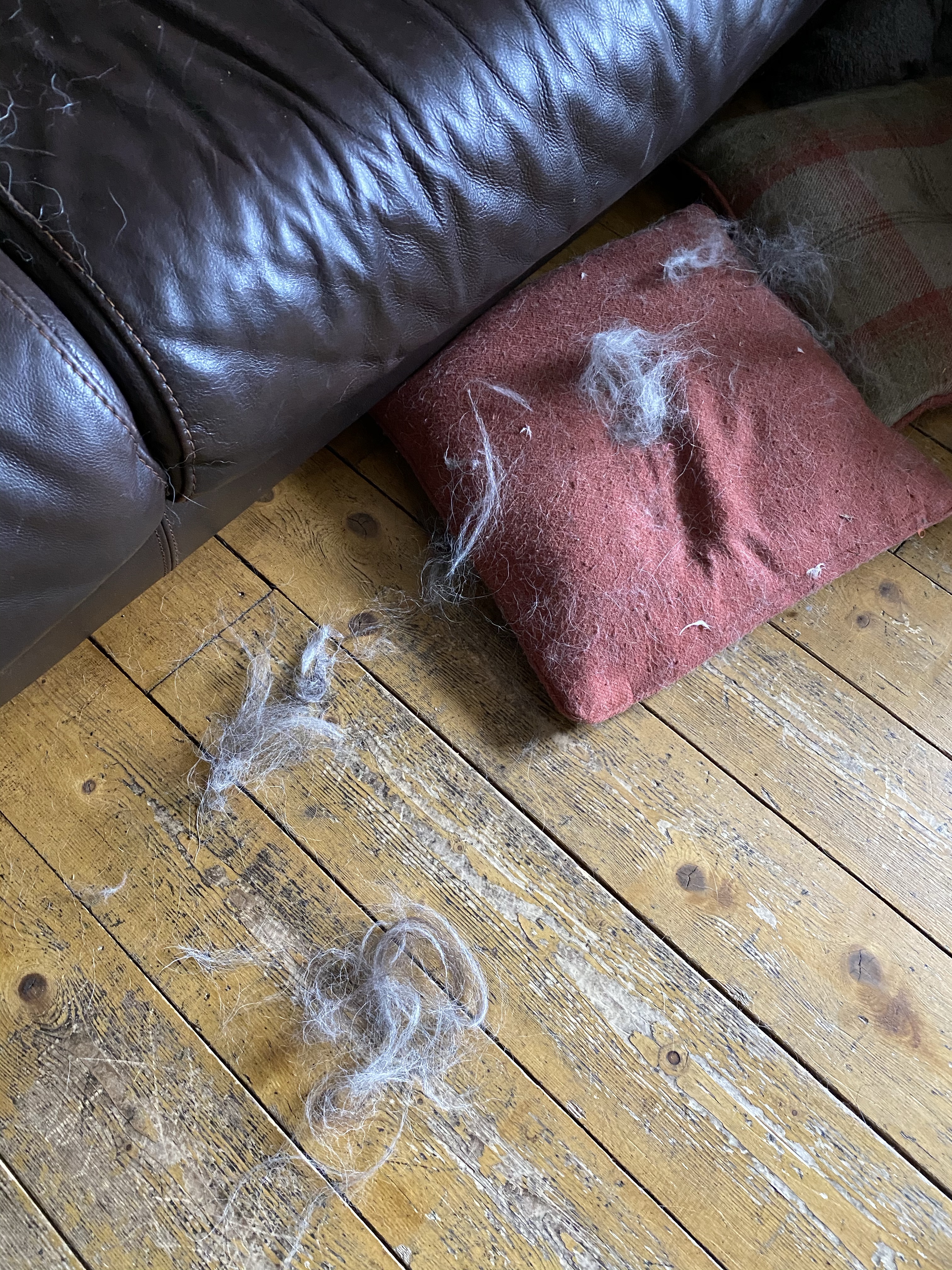 So I think the only way I can cope is to move into the camper van for a few weeks…. as empty as it is. This hair casting malarkey is not gonna be fun. I’m off…. bye…. oh right ok, course I actually can’t do that I just need to try and shut my eyes and get over it. Even the grass outside has a white dog hair hue to it?!?!?! 🤬😤