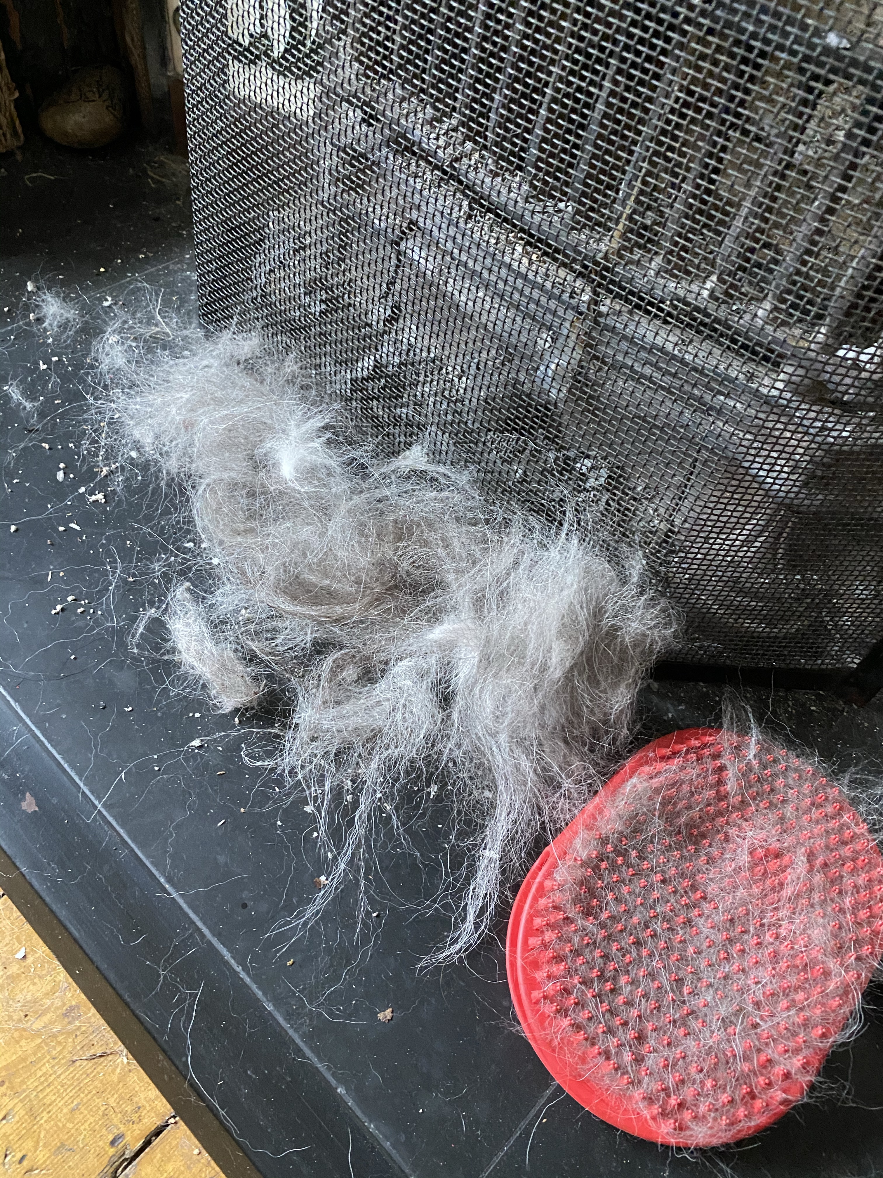So Bhruic has joined Freya in the moulting gang and it’s coming out of her in barrow loads!!