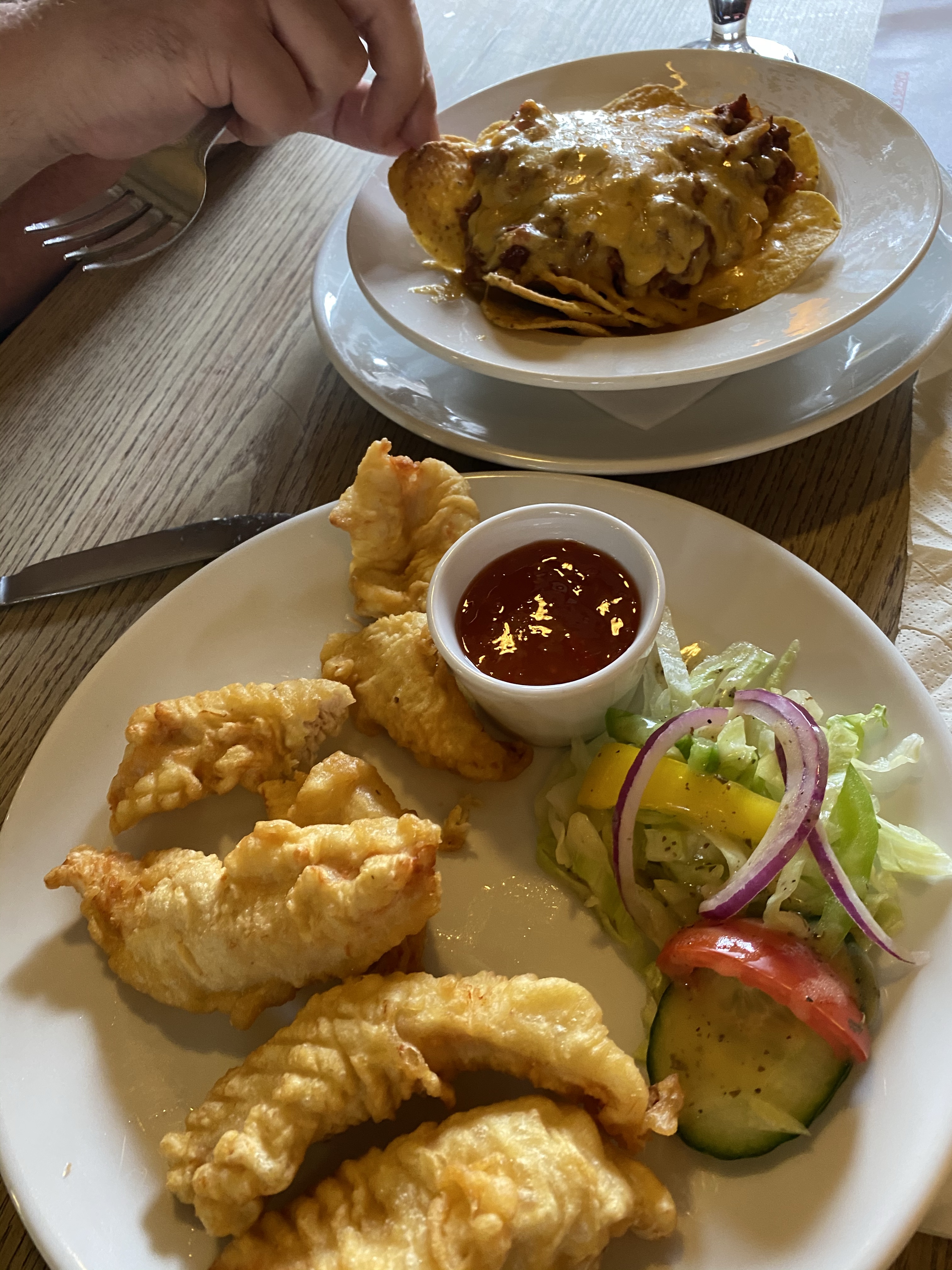 Great idea for lunch….. Straight into the pub…. awful picture but bloody good feed!