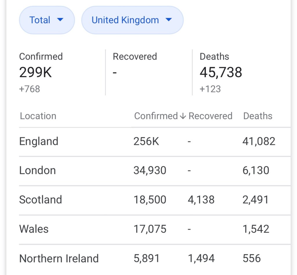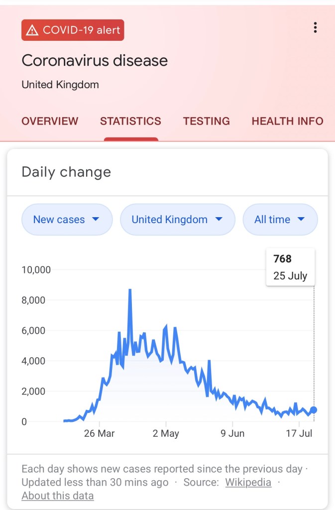 So felt I hadn’t done a covid-19 update for a while so wanted to get a look. Pleased to see Scottish deaths haven’t picked up much over the last month or so. Guess we all have to wait and see if we have a second wave particularly once we get into Autumn.