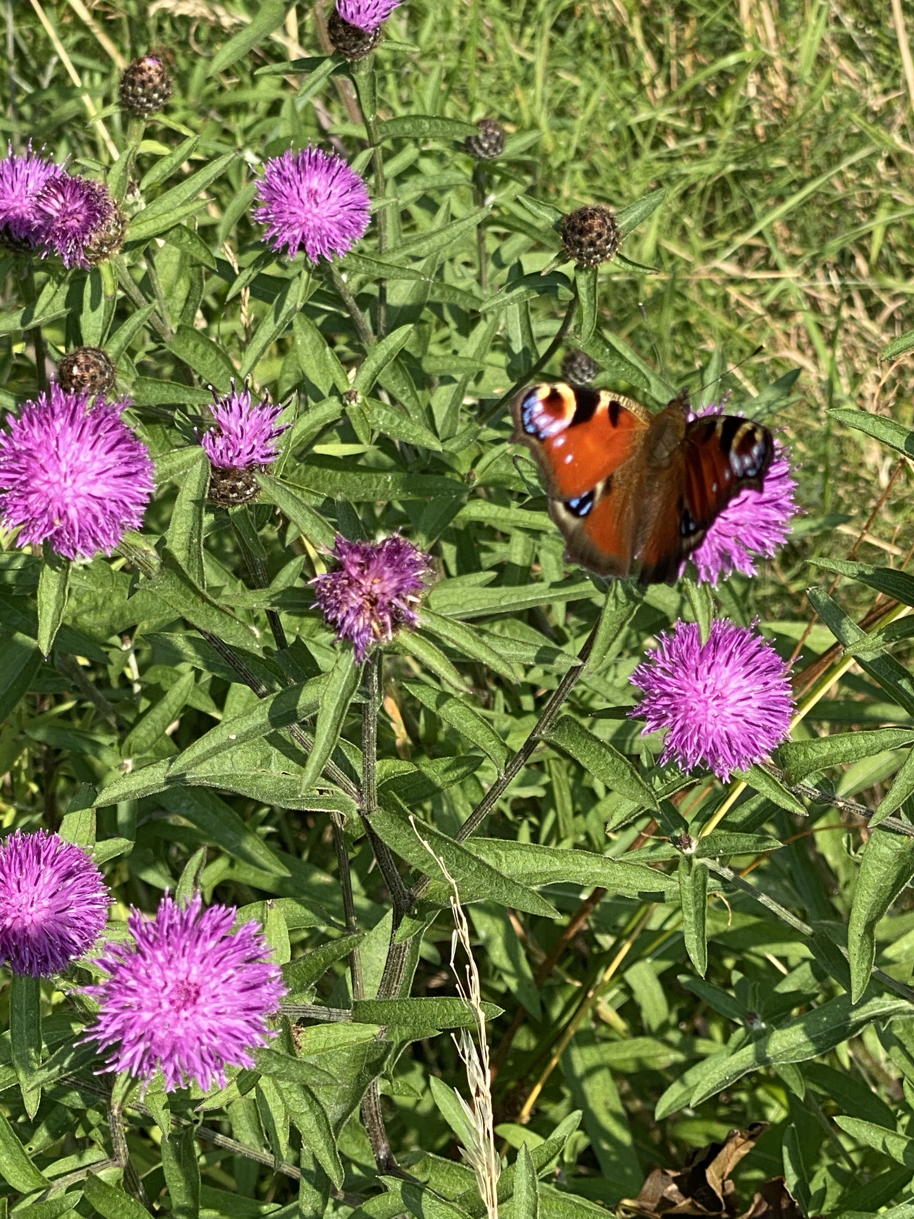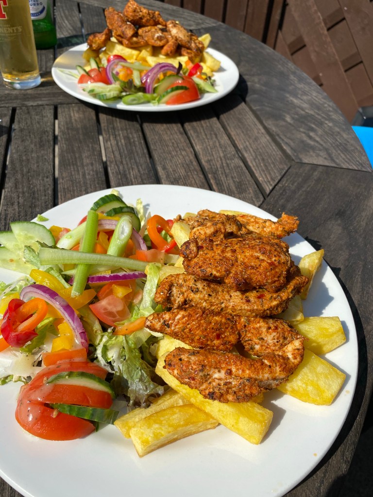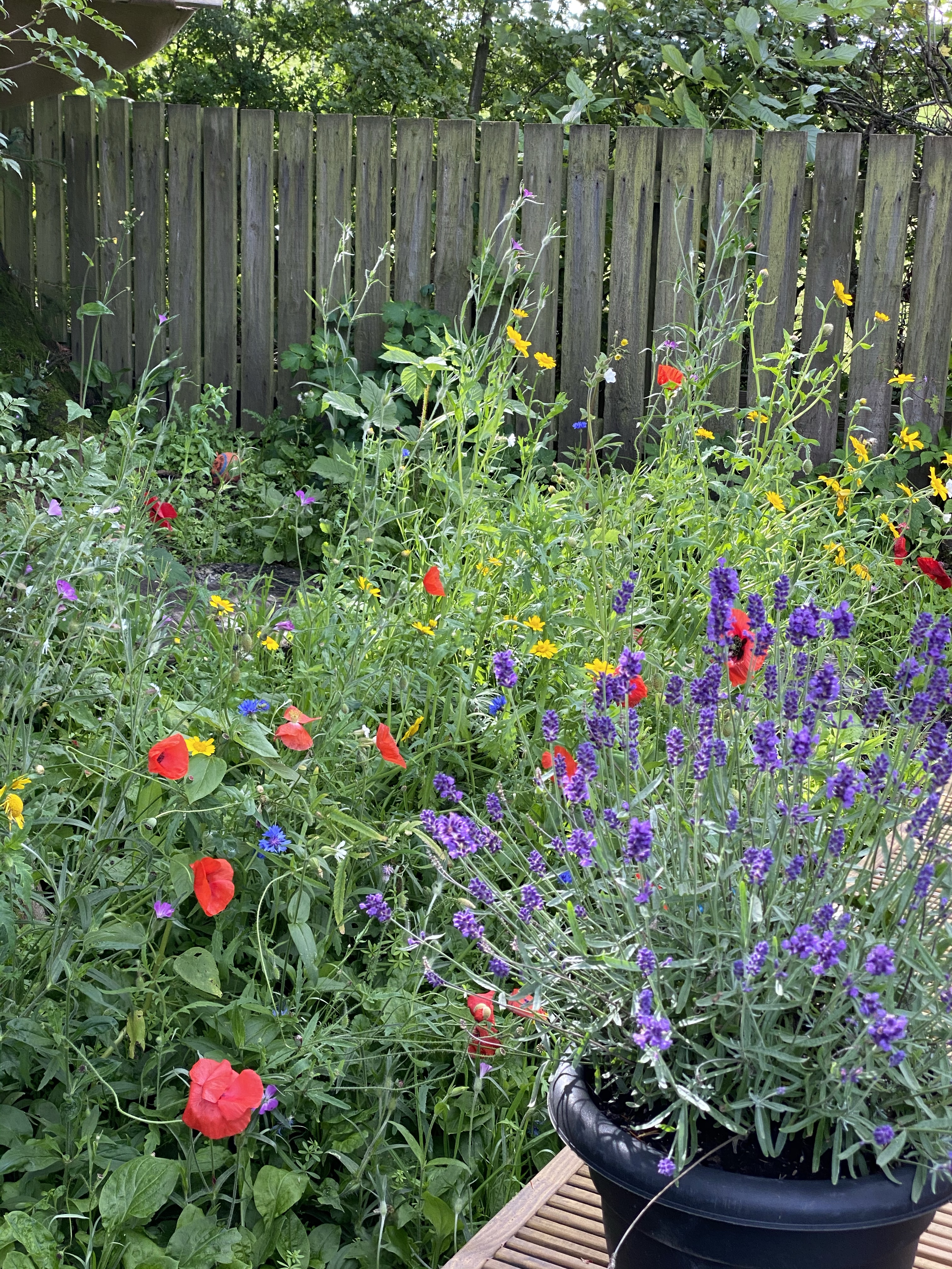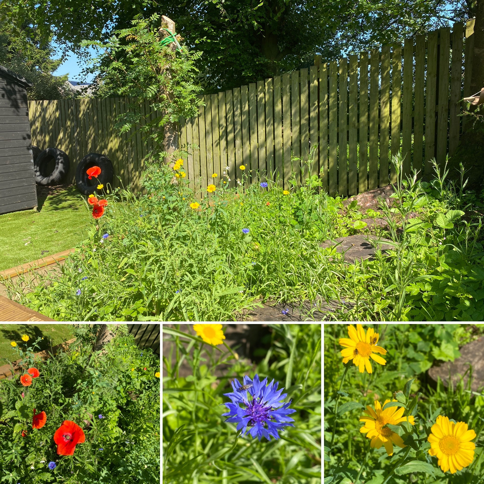 Pub lunch selfie…. could be forgive for thinking weāre abroad?!Cajun chicken salad x 2Home now sitting out in the sun!Of course thereās never a Border Collie or a tennis ball far away! š¶š¾Check these two!! Bhruās withering look is a picture! The meadow garden is really starting to bloom. Craig still thinks they are just weeds but I love it! The wee one is in her favourite place under the tree! She was out of the count until I crept up on her!
