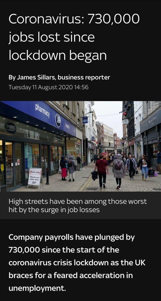 A quick check on coronavirus news…. today focussed on the amount of jobs lost.