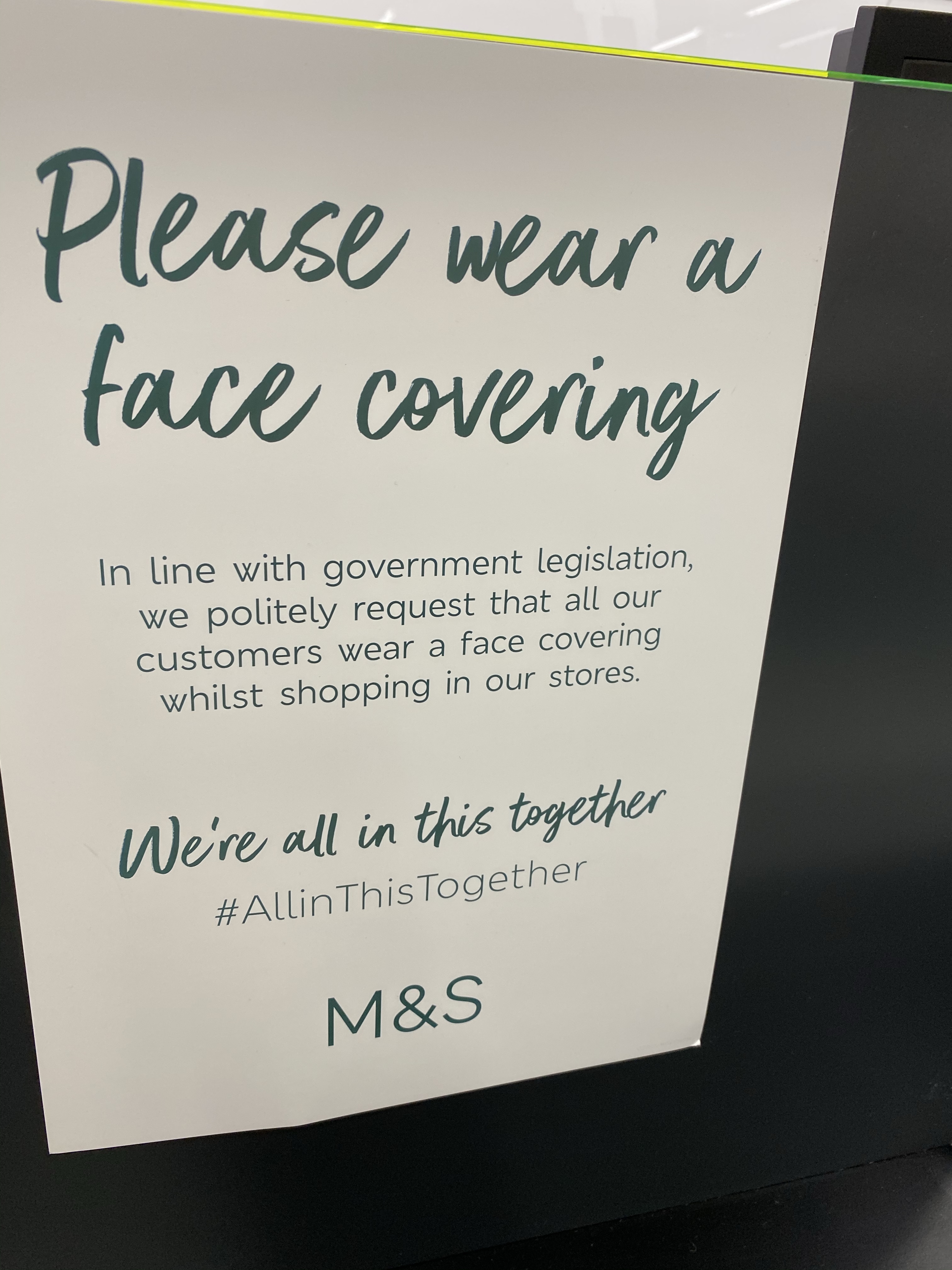 So the designer outlet shopping centre is all one way traffic now. Everyone goes in one door and all the way around the centre to go out the other door. Itās a long way to walk if you want the M&S Retail Outlet store as thatās nearly at the end of the one way system. There are arrows on the ground to show you which way to walk at all times. Most signs said 2m distance though in the toilets it said maintain 1m where possible. Every second sink is closed off, with every other hand dryer too. There were GIVE WAY signs on the entrance to the loos so that no one bumped into each other.