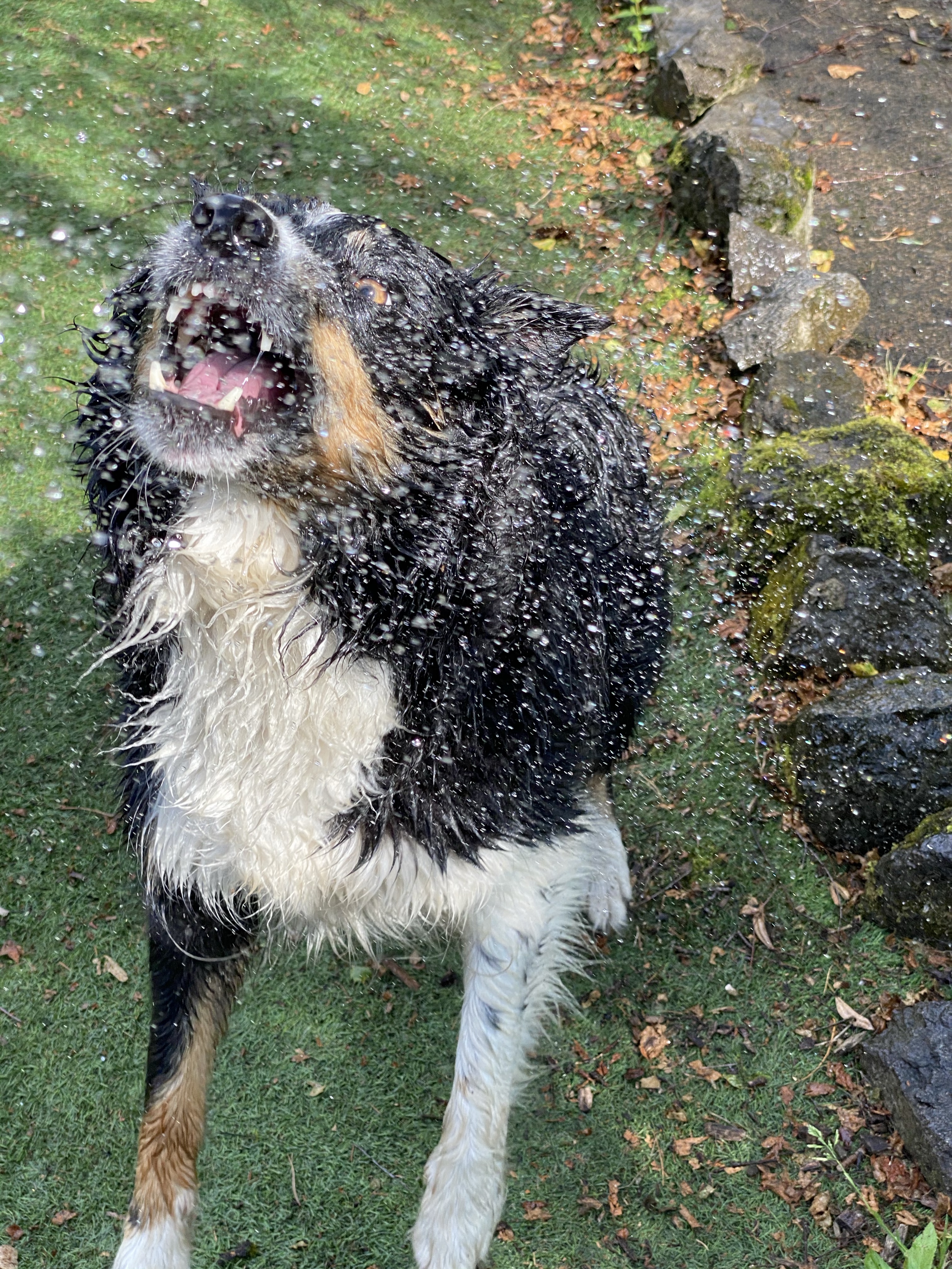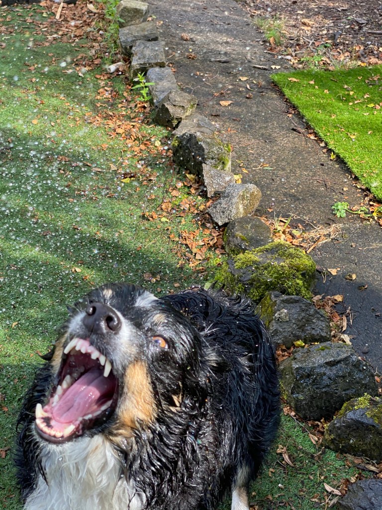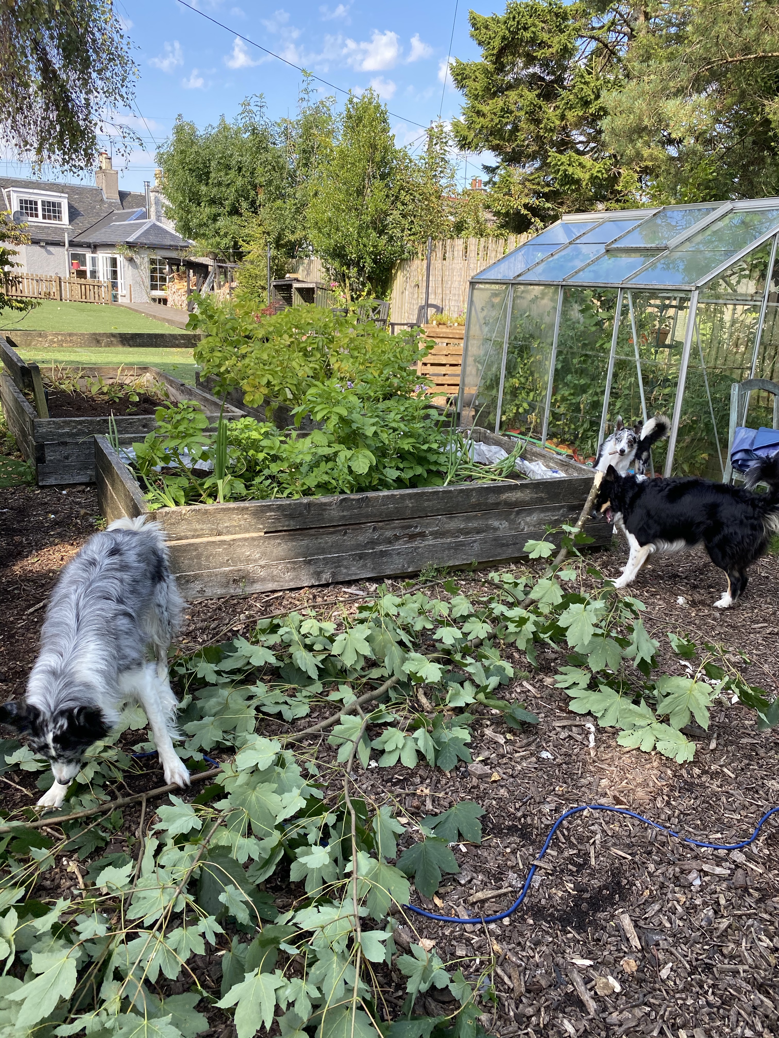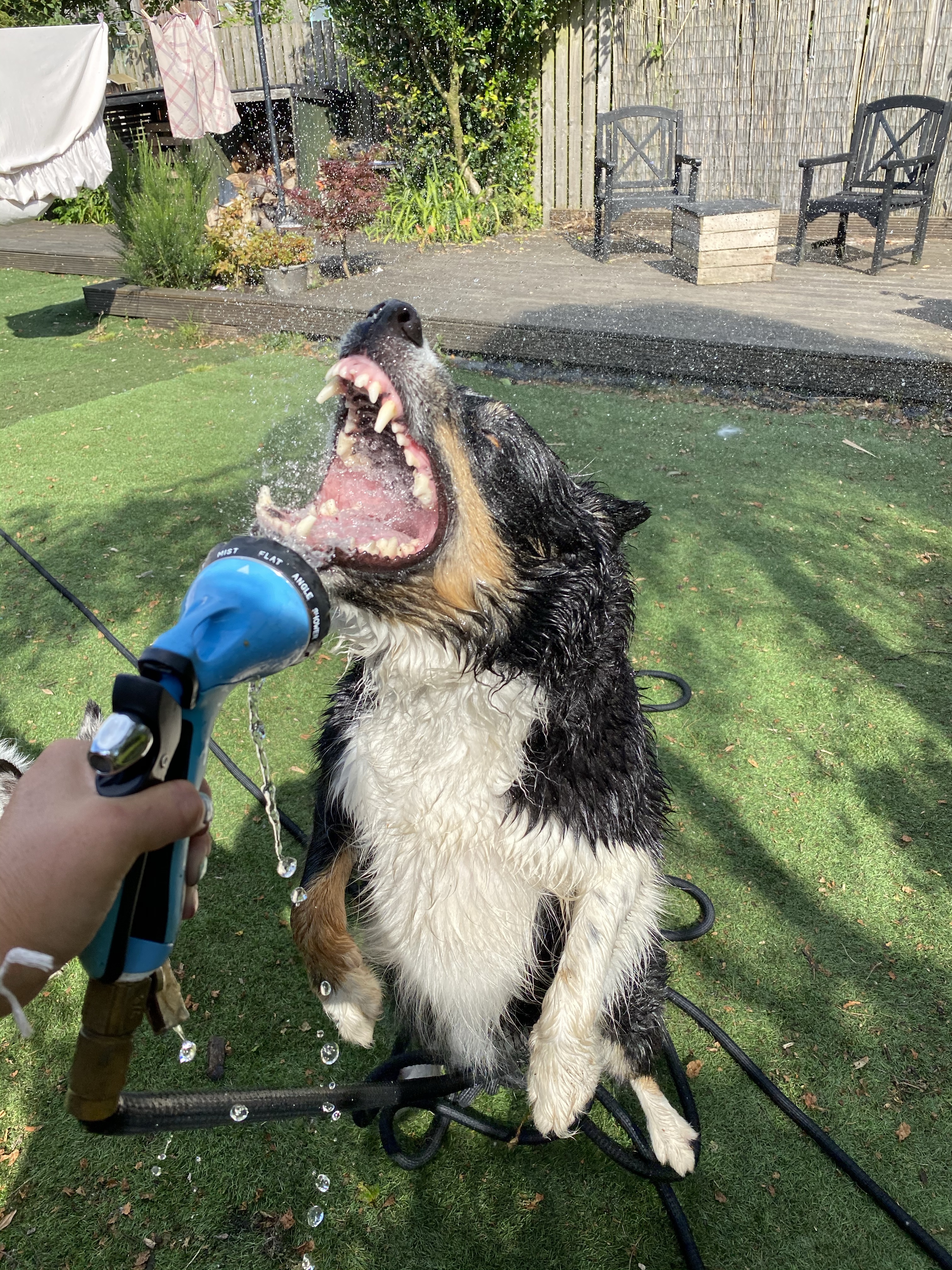Then had to empty the hose out with evil puppy Gnasher Calaidh!!! She loves a spray with the hose and itās so good for them in this hot weather as long as they donāt drink it.