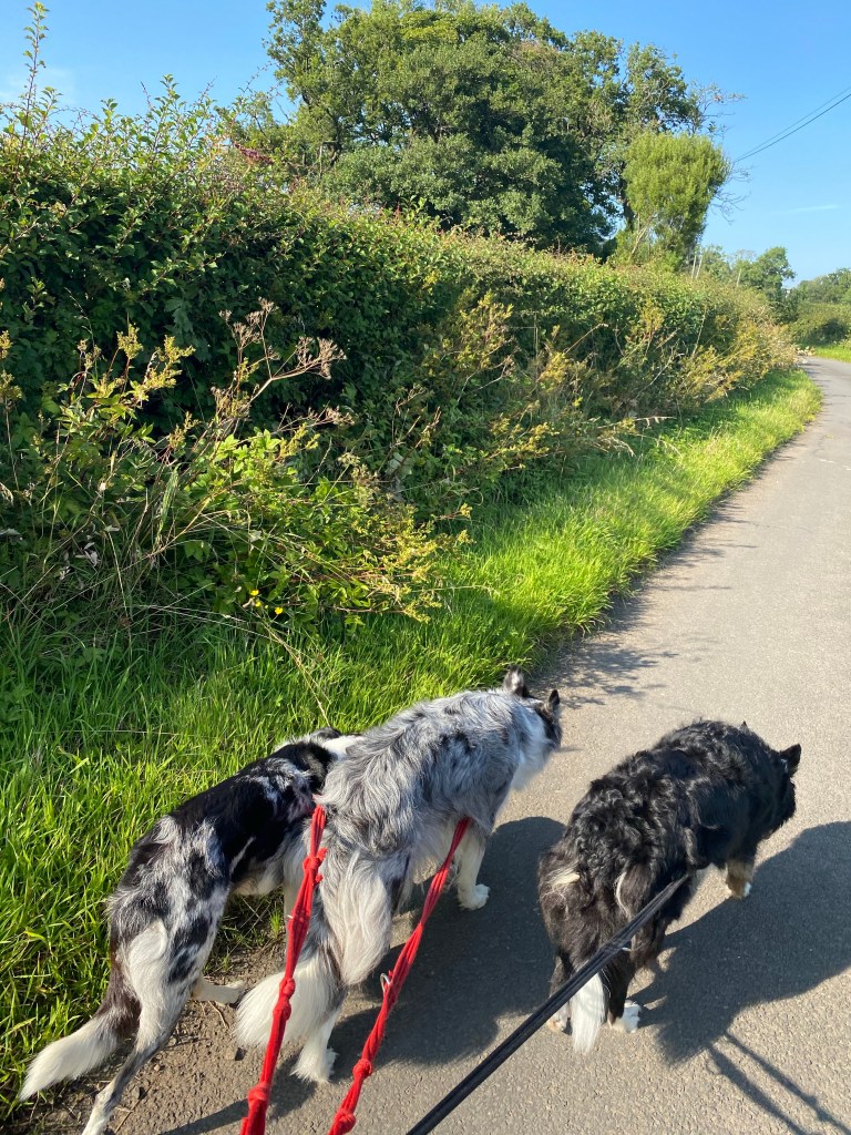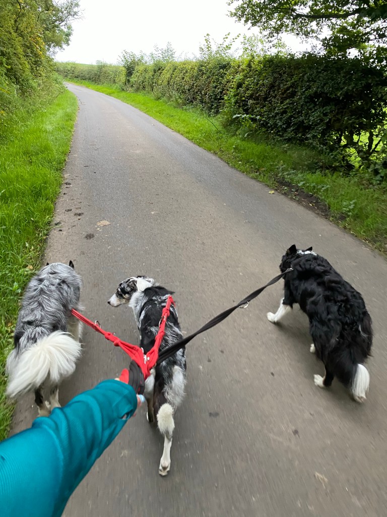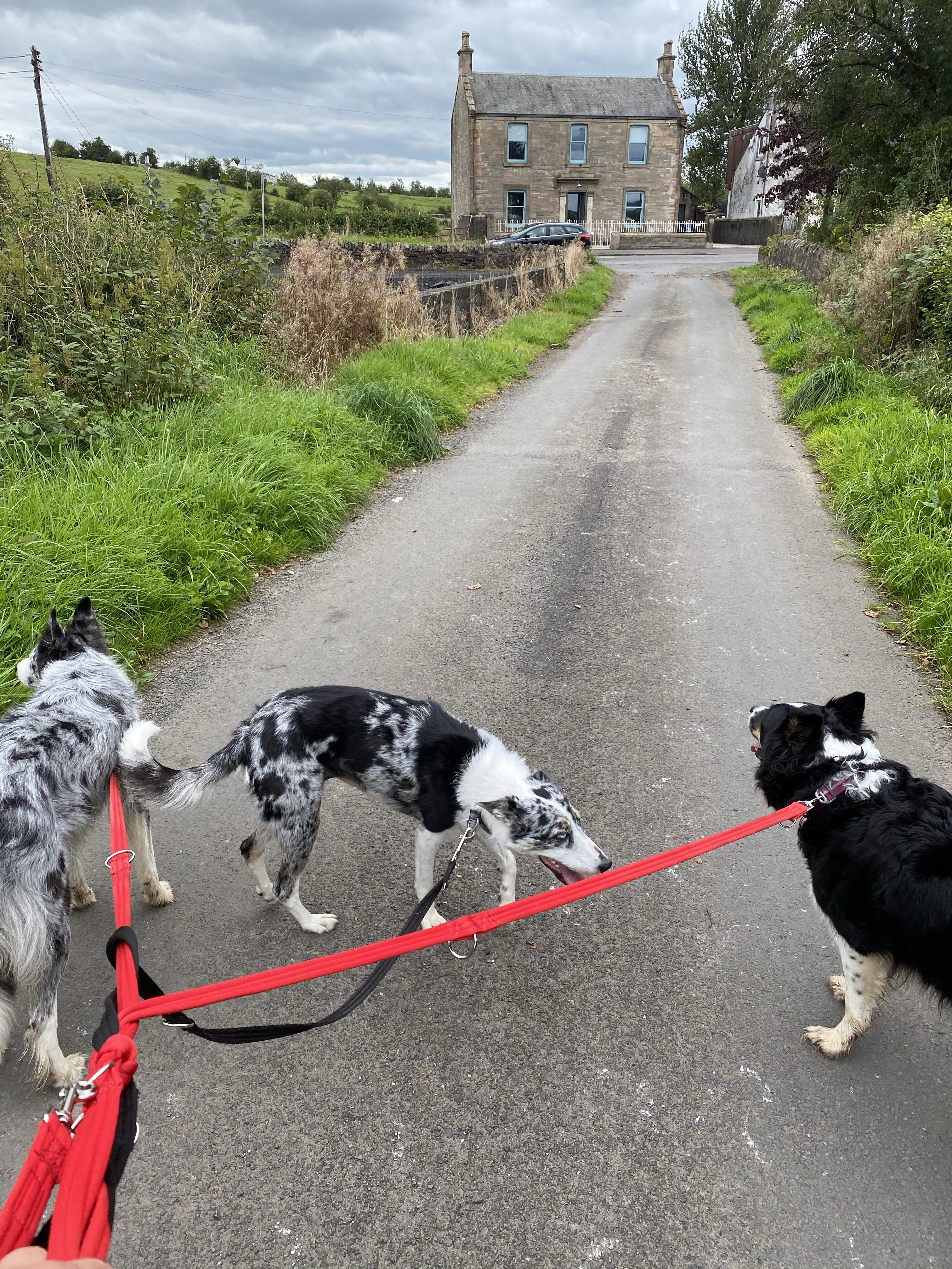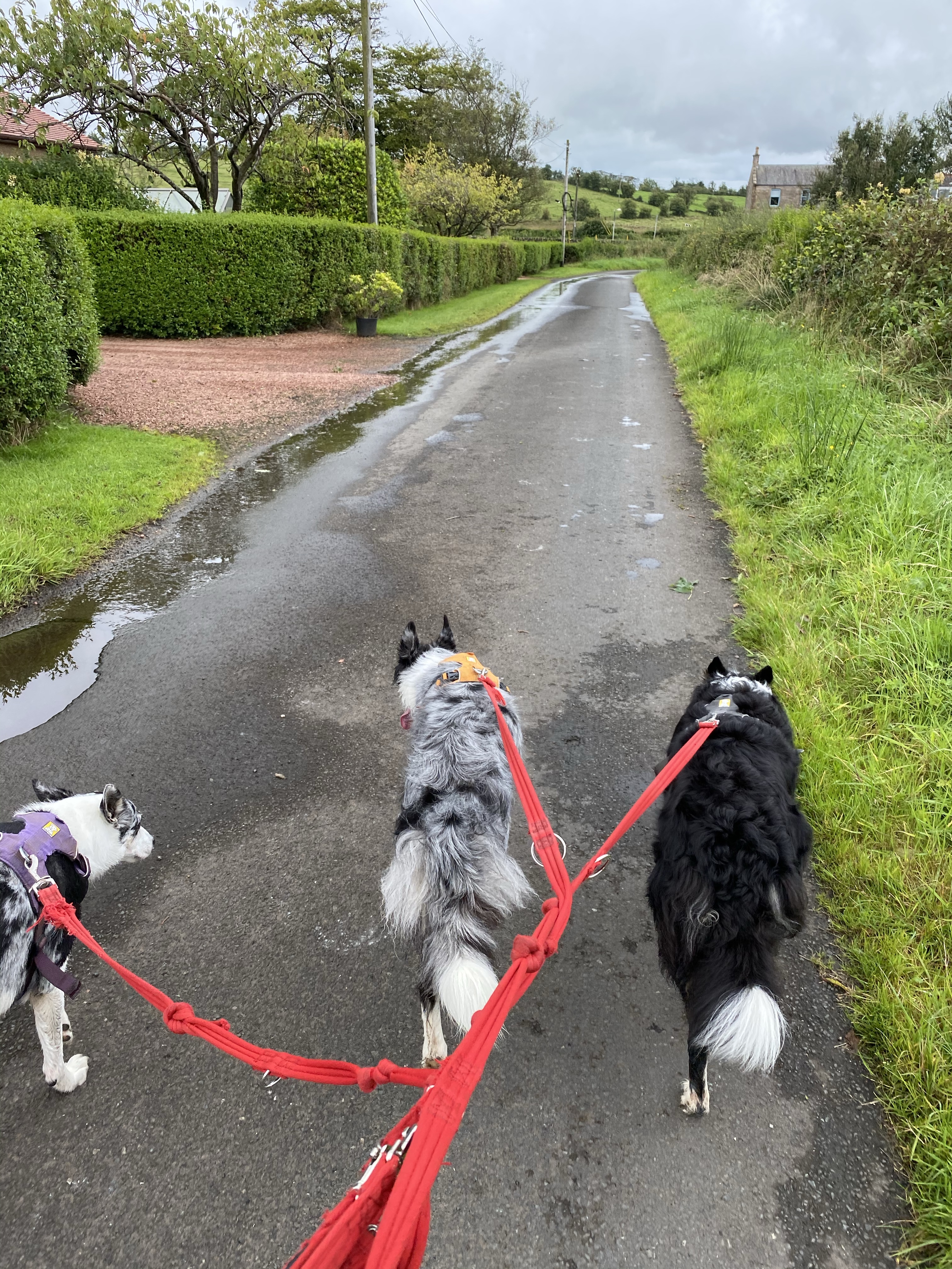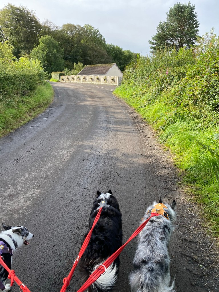 Had a lovely dog walk this morning with Rachel and Nacho from two doors down. I only had Bhruic and Freya as Craig has Calaidh at work.