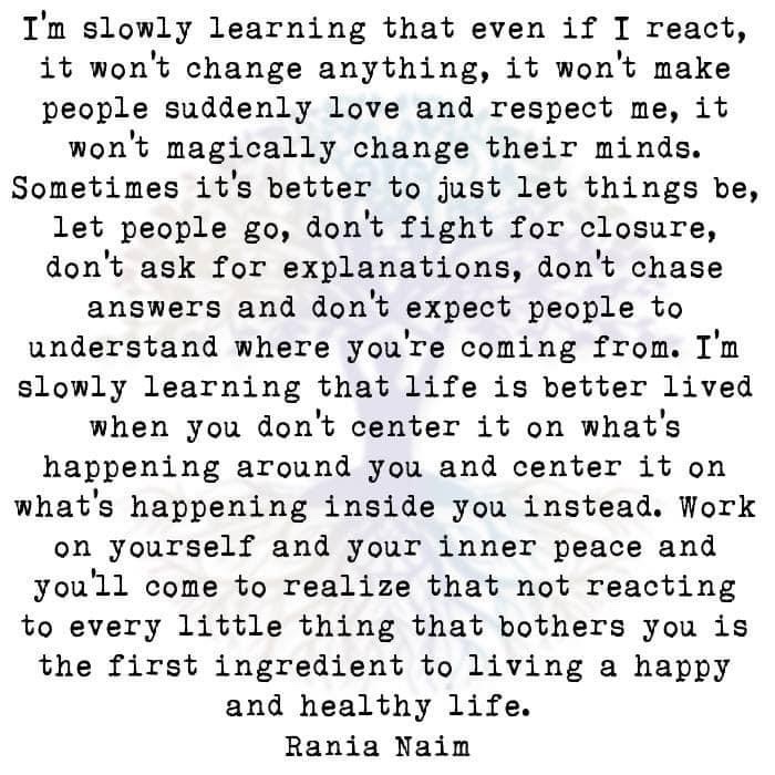 Iāve had a good day. Iāve realised that certain things in life are tests. Triggers to which I need no longer react to and every day is a learning curve.