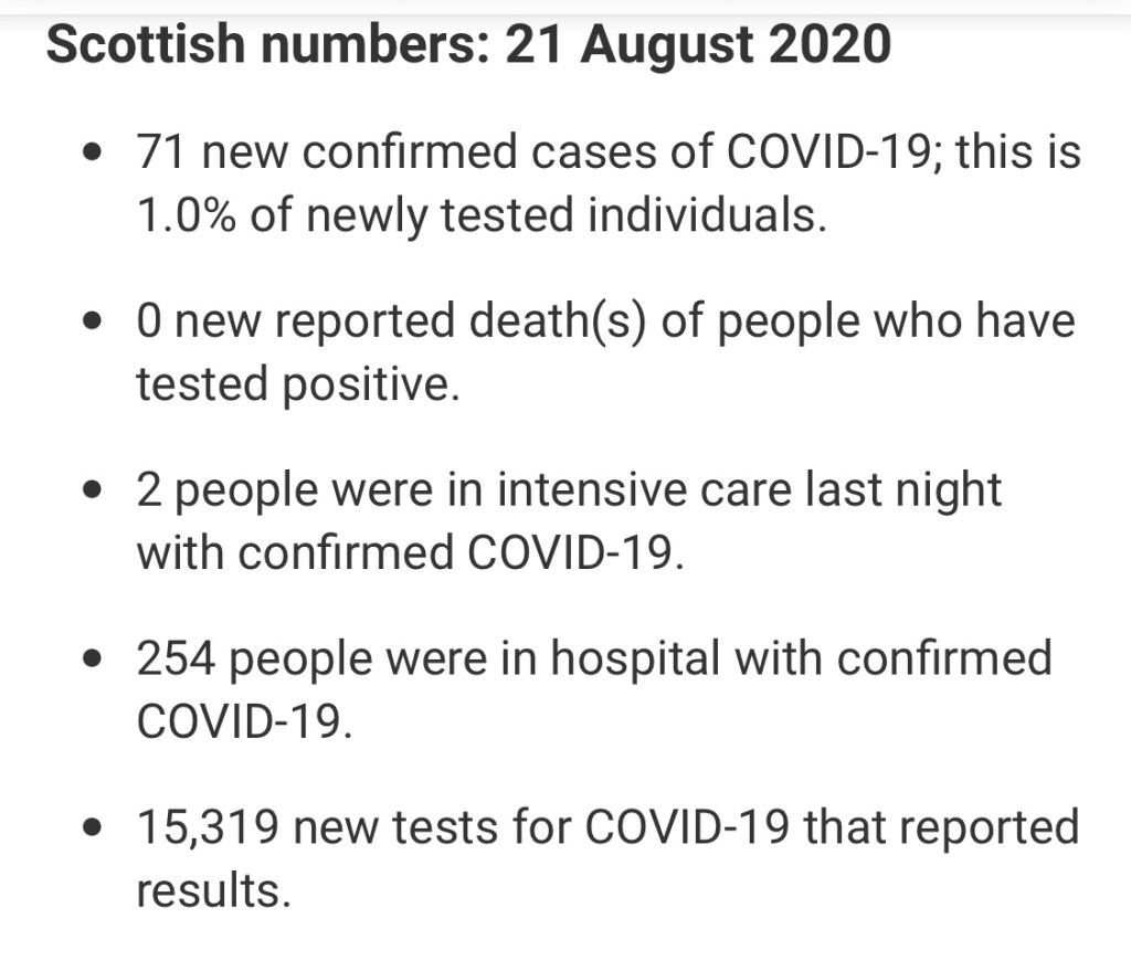 I did find some COVID news yesterday after I published the blog saying that yesterday was the highest rise in new cases since 12th June with 1,522 new cases. This was an increase of 1,048 over Wednesday. There were a further 12 deaths taking the total to 41,477 UK wide. Scotland had two of those.