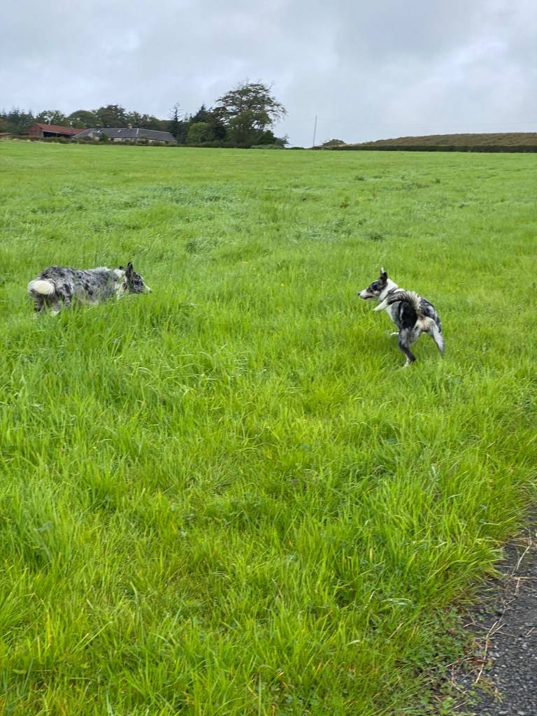Itās much cooler than itās been and a wee bit damp…. this photo was taken from shoulder dislocation angle š¤ŖšFreya and Bhruic has a good run in the field while Calaidh mooched abut behind me and ate grass! Love watching them run even if they are only tiny dots in this pic! Back home and Calaidh just needed mumma cuddles Then Bhru wanted a smooch!!