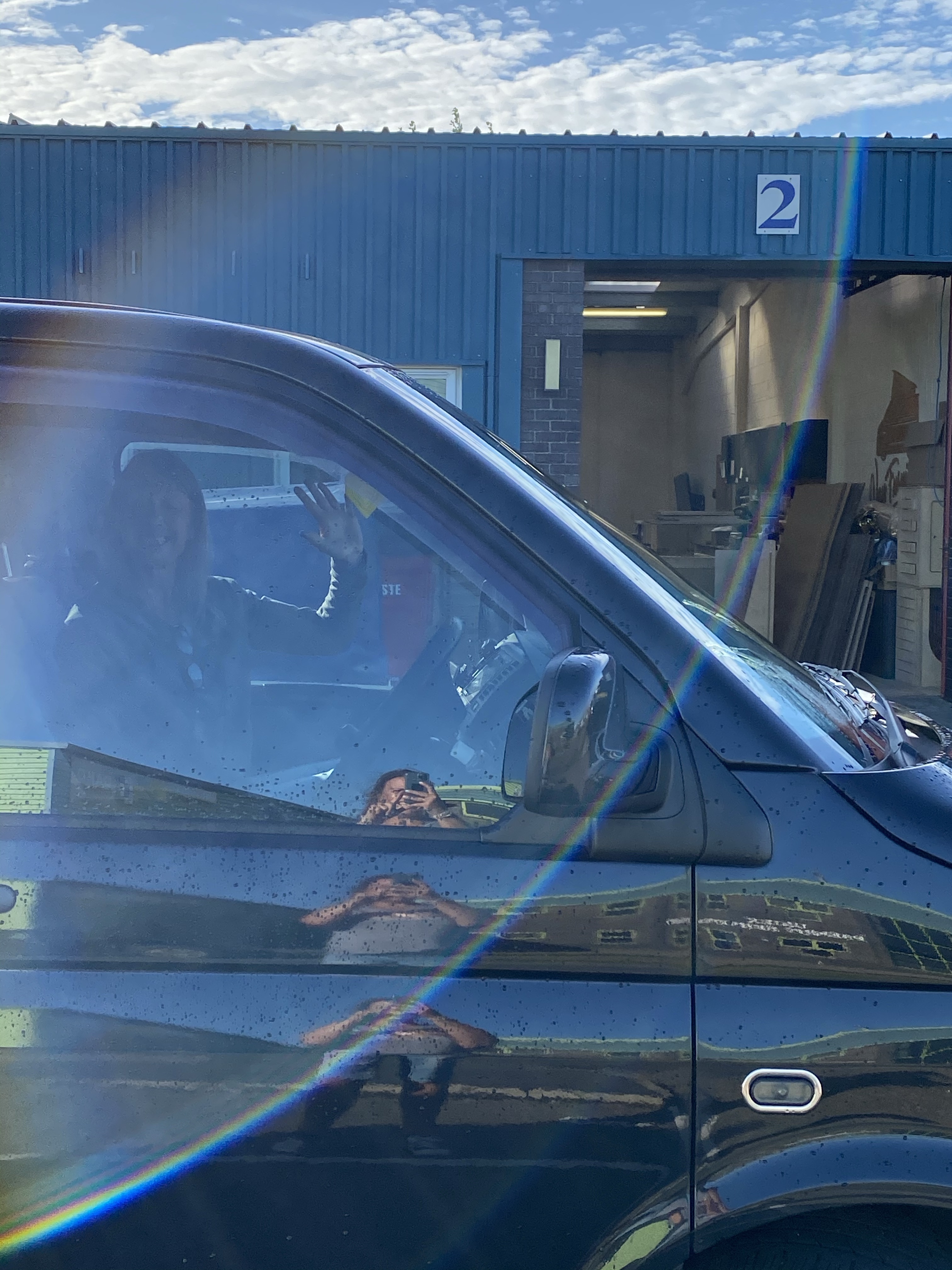 I HAVE ABBIE THE CAMPER VAN BACK FROM THE GARAGE!!!!!!!! Wooooo hooooo! We have finally found a garage that gives us the car back when they say they will…. what a great job they have done of the damaged body work too!