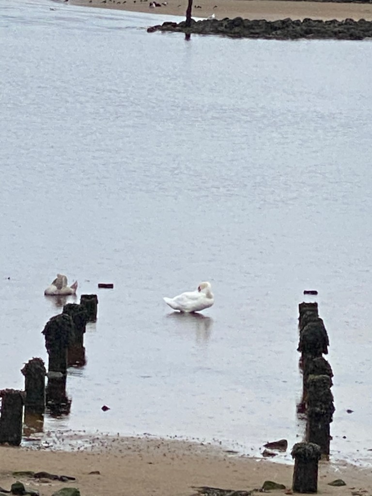 Abbie at the beach… sadly you can neither really see Abbie or the beach!!! We drove down to the seafront but the tide was out and yet so calm, it was raining though so we didnāt stay out longHuge beach in IrvineGirls wee afternoon out! Close up on Steven Seagull….. I so wanted to make that joke but I now see he is a swan…. š¤¦š»āāļøš¤£š¤£