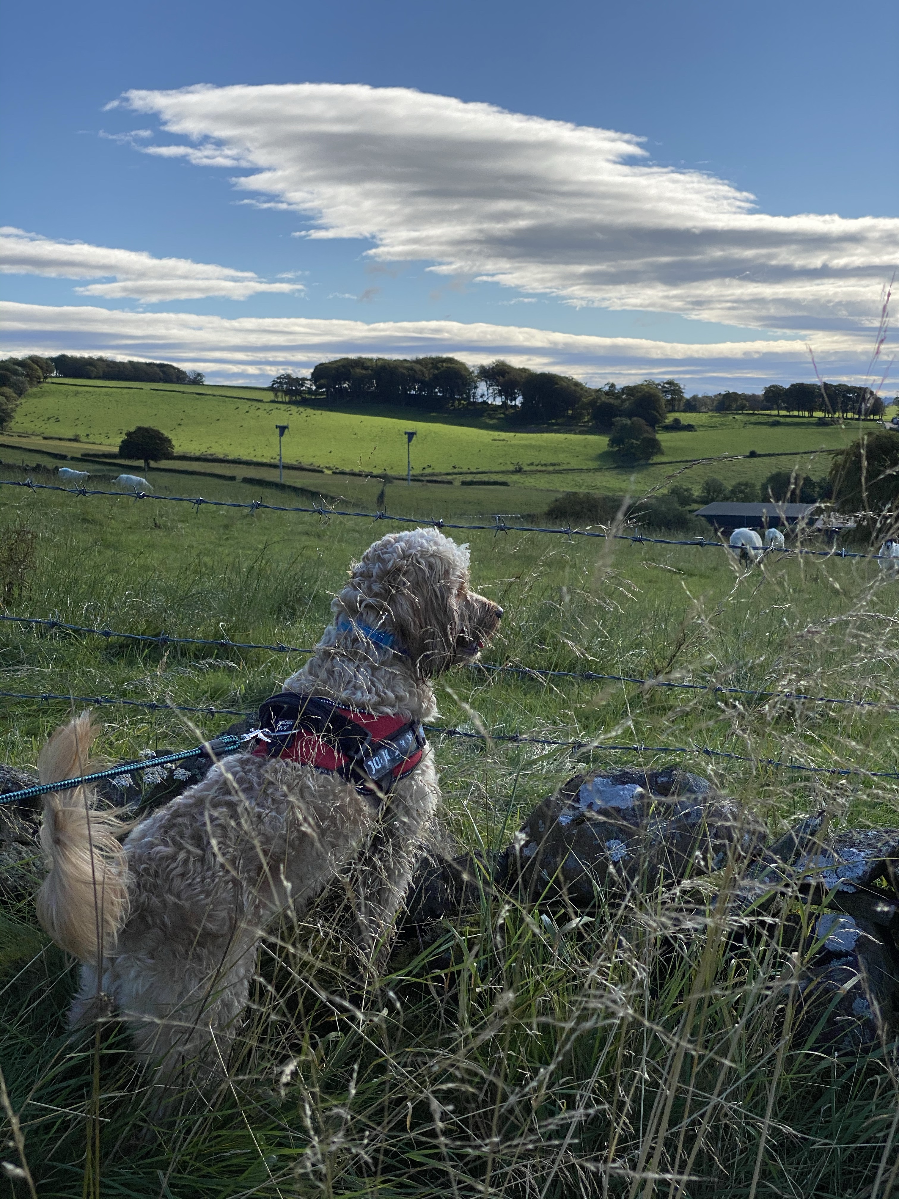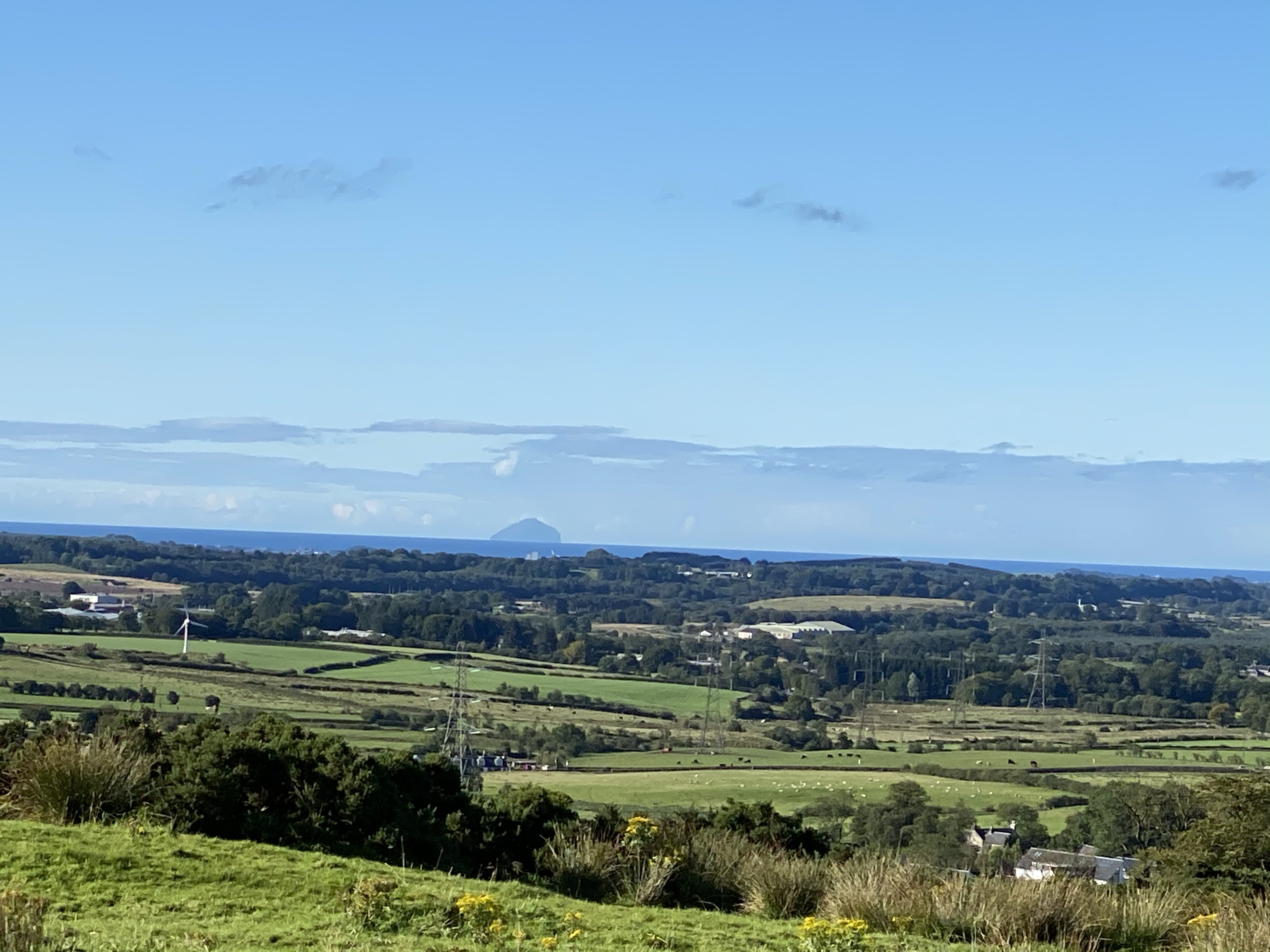 My baby Freya teaching Nacho the delicacy of a cow pat….. š„“Nachoās checking out the sheep! Tom Marshallās memorial bench was refurbed during lockdown but Robert and Jane Marshall. Nachoās still posing! Ailsa Craig in the distance!Beith with Goat Fell, Isle of Arran in the distance. This new phone camera is amazing. I could never have got as clear a zoom before. Bhru sniffing aroundSuch a beautiful day! Rachel manages to make gate crossing look super sexy! Iād just looked over it a minute earlier!!!A few clouds appearing