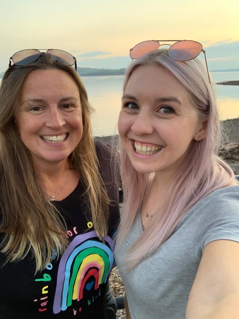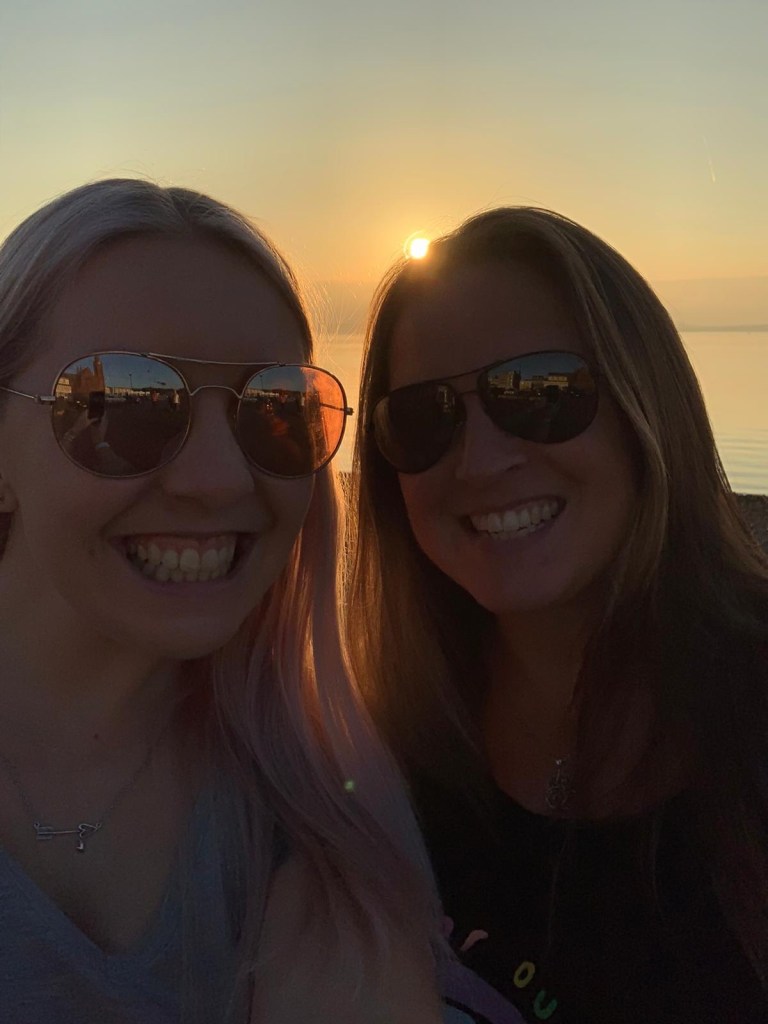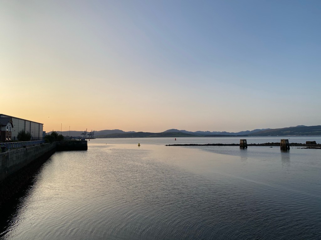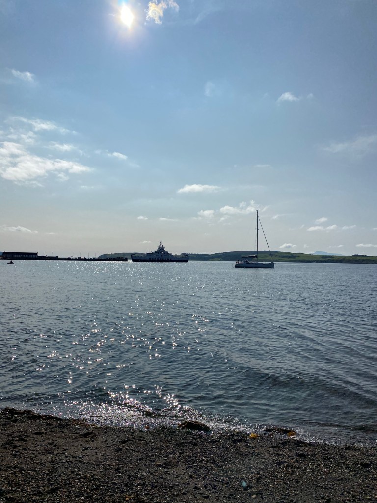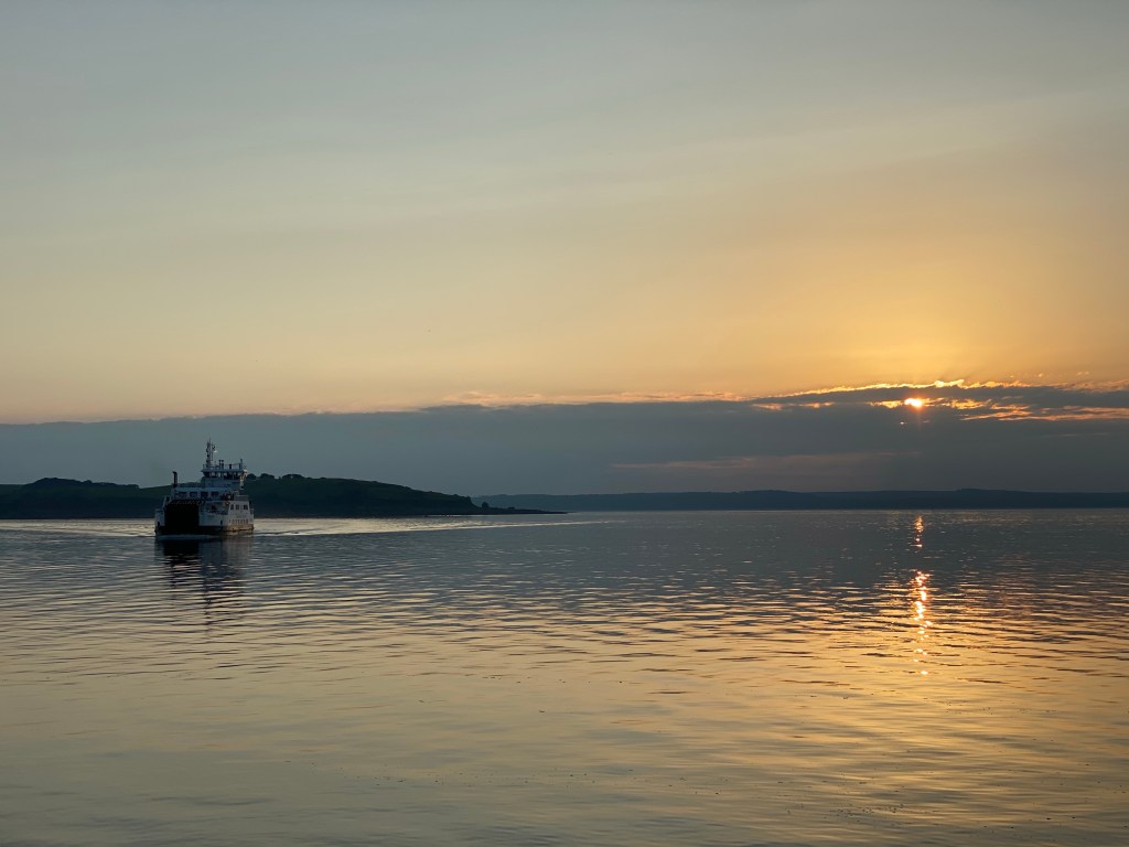 Sun setting in LargsSunset girls Into Nardinis for ice-cream…. so many flavours! 2 scoop tubs!! My new mask from Craigie. I am making a scary face for some strange reason The Cumbrae FerryAnd again! Abbie posing at the seaside!Post sunset 🌅 selfie 🤳