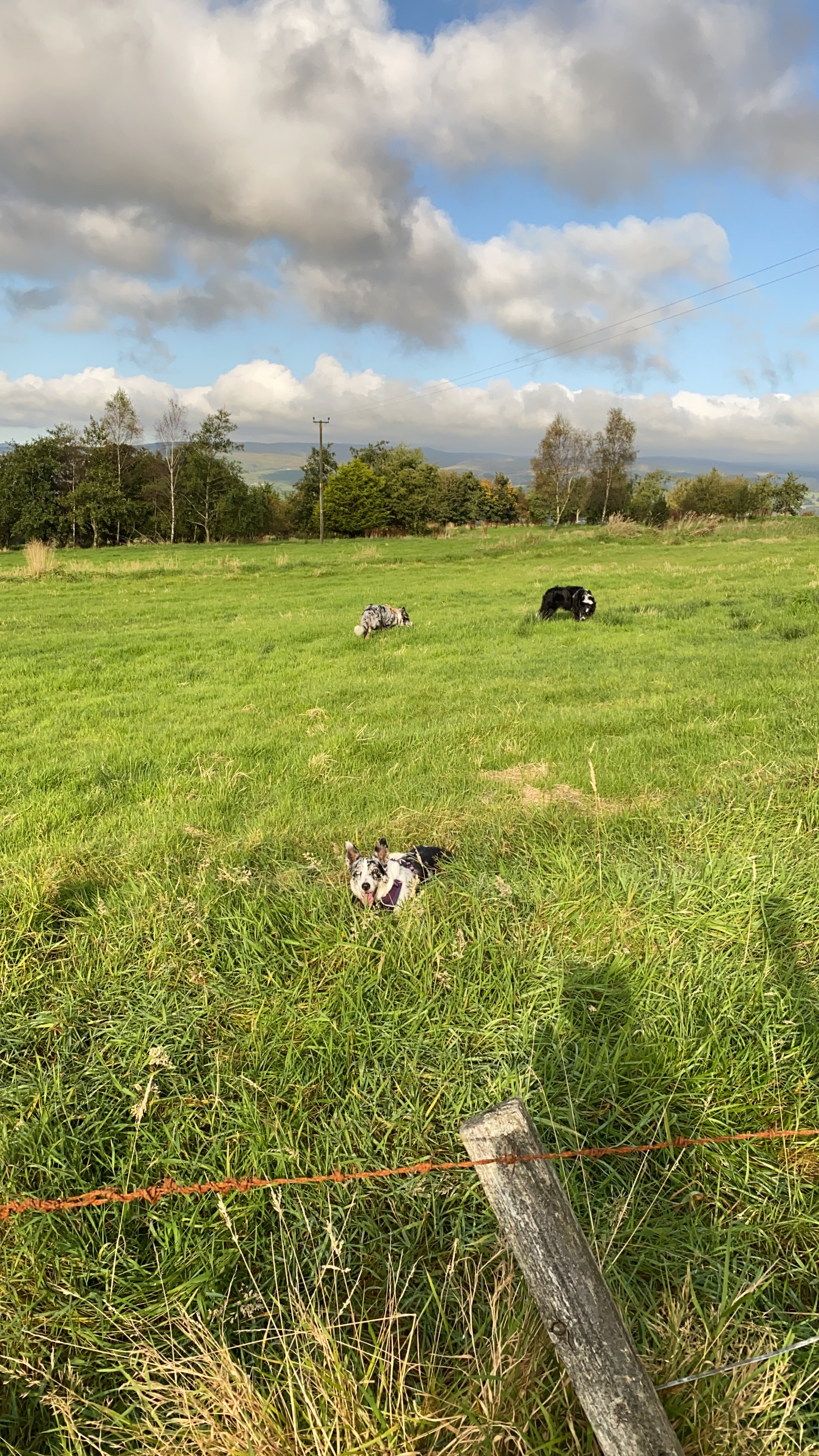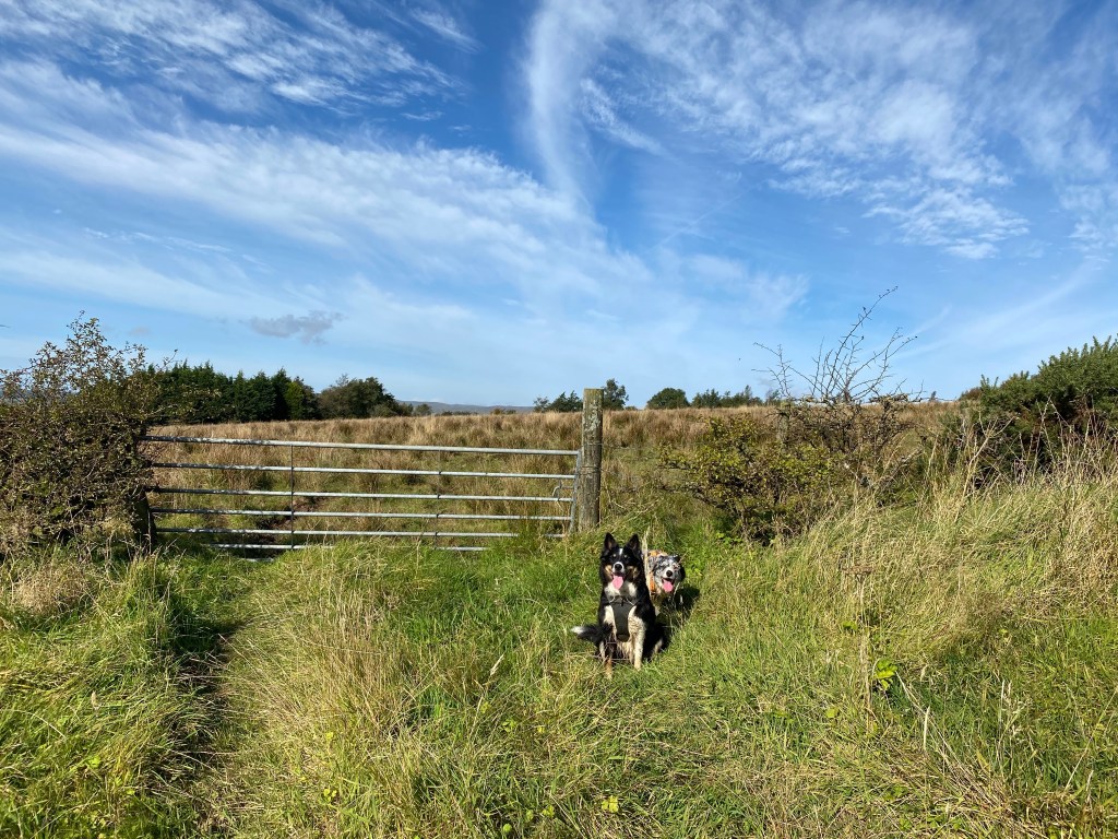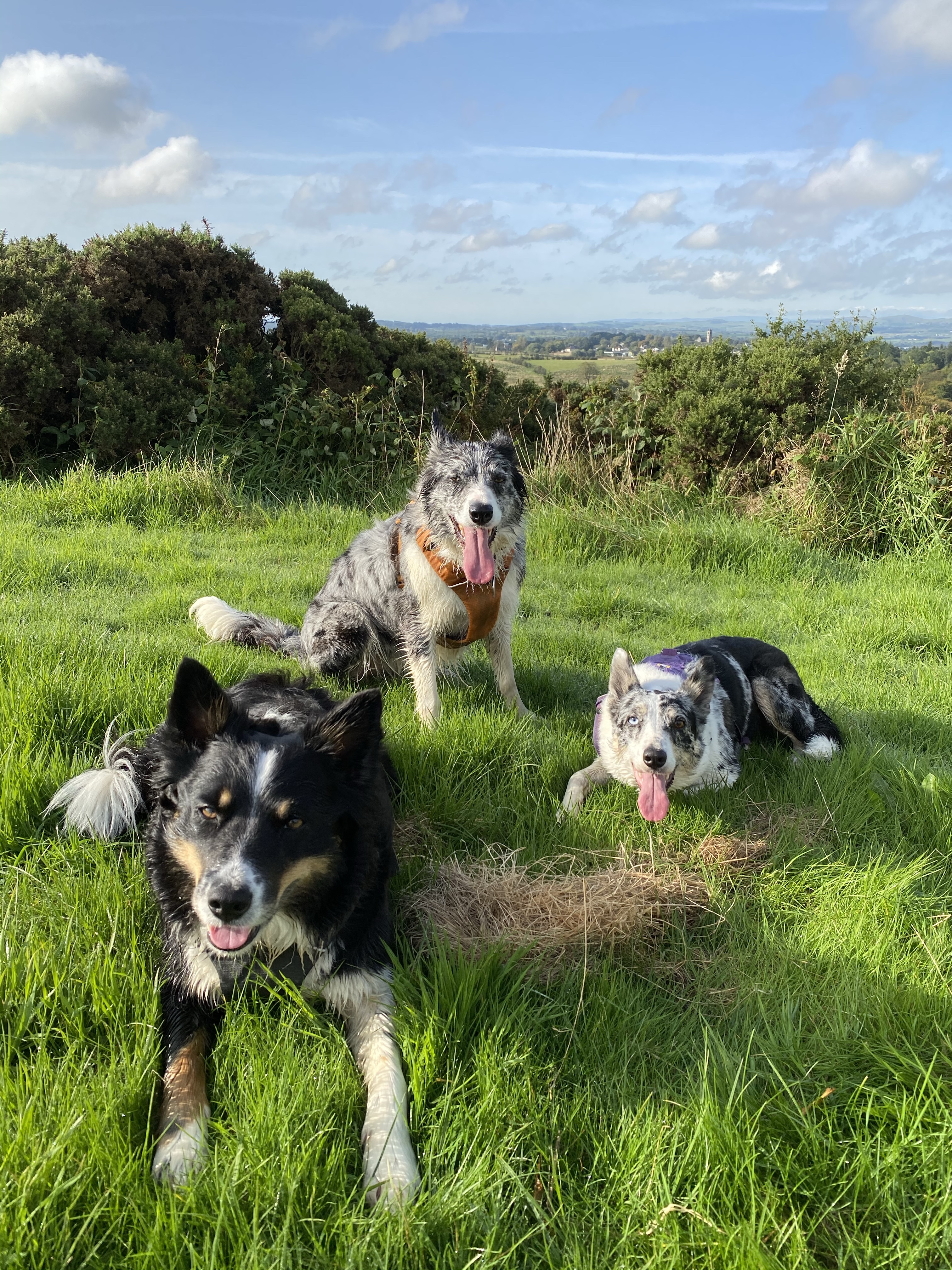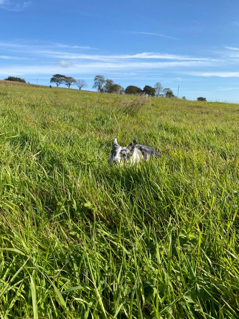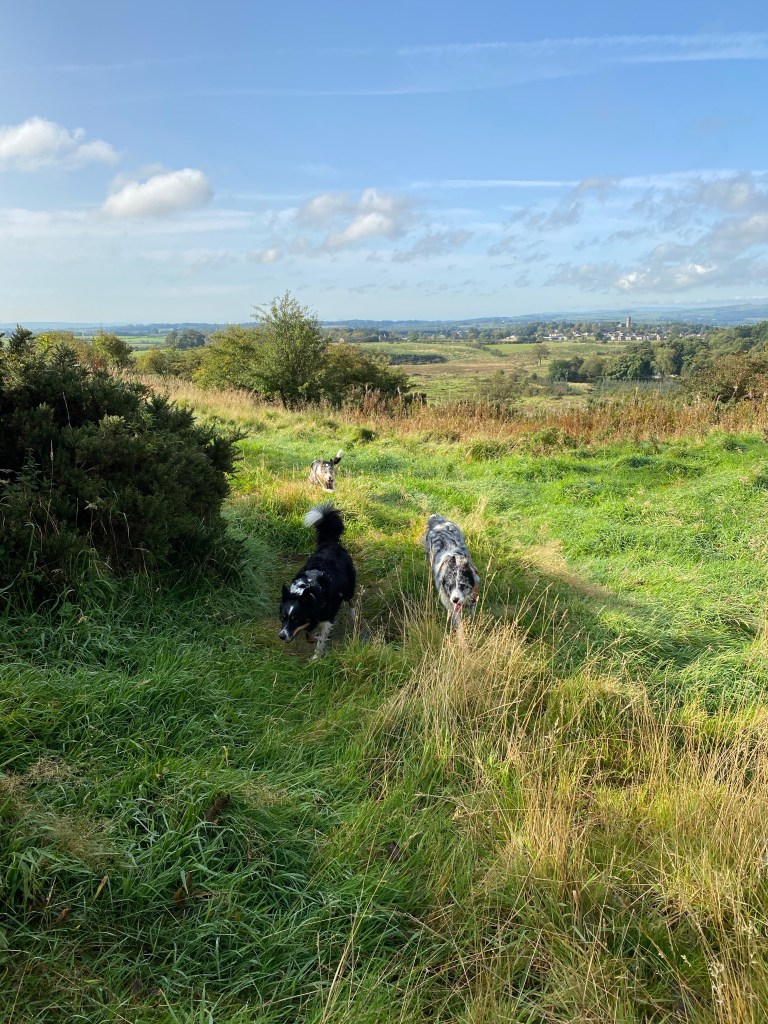 Calaidh’s such a poser! Freya chewing on the grass! I’ve actually sat down on the dog walk today… defeating the purpose of walk but soaking up the rays and breathing in the fresh air. Freya and Bhru are two small dots! I just love all the colours in these pictures