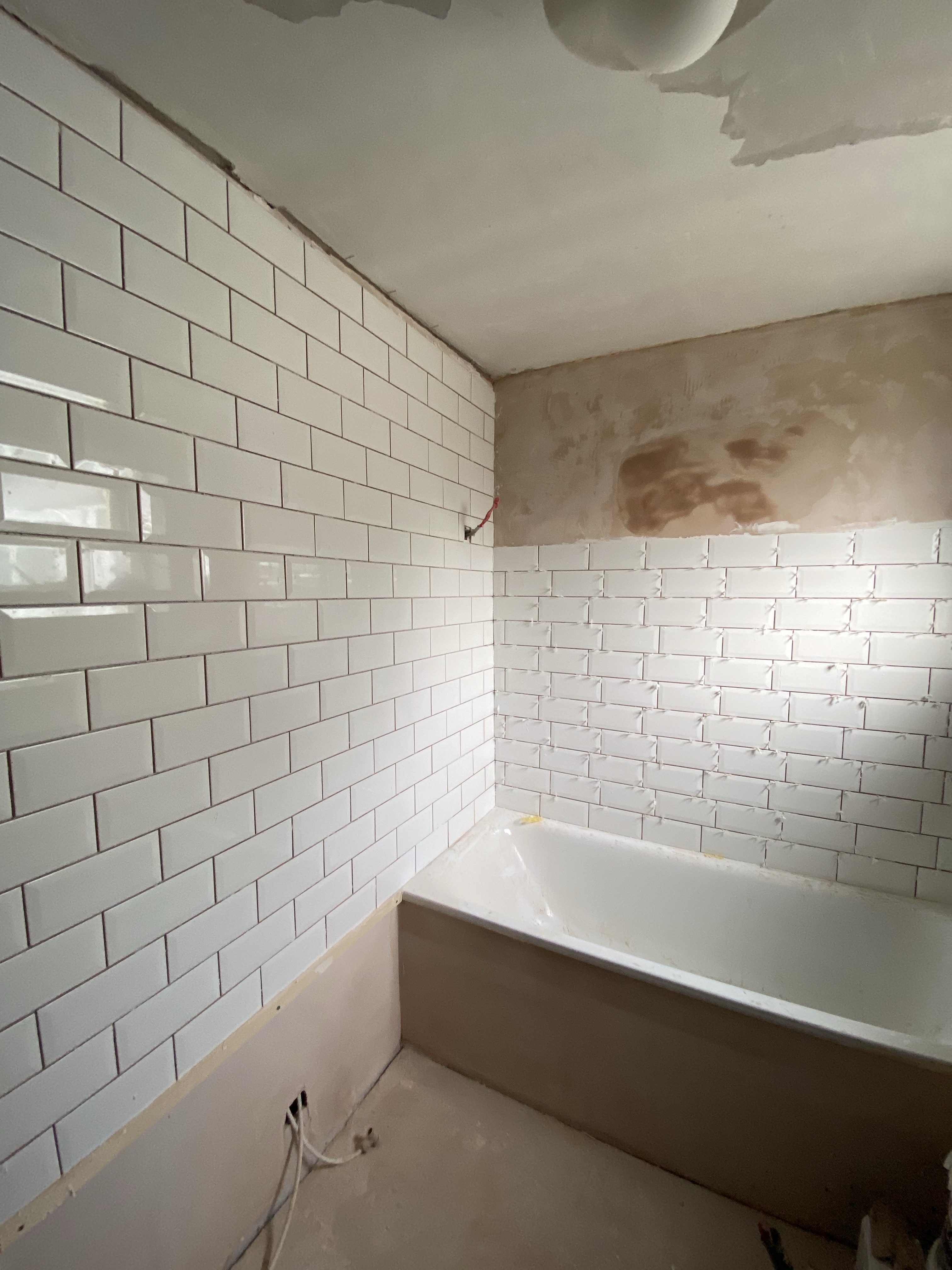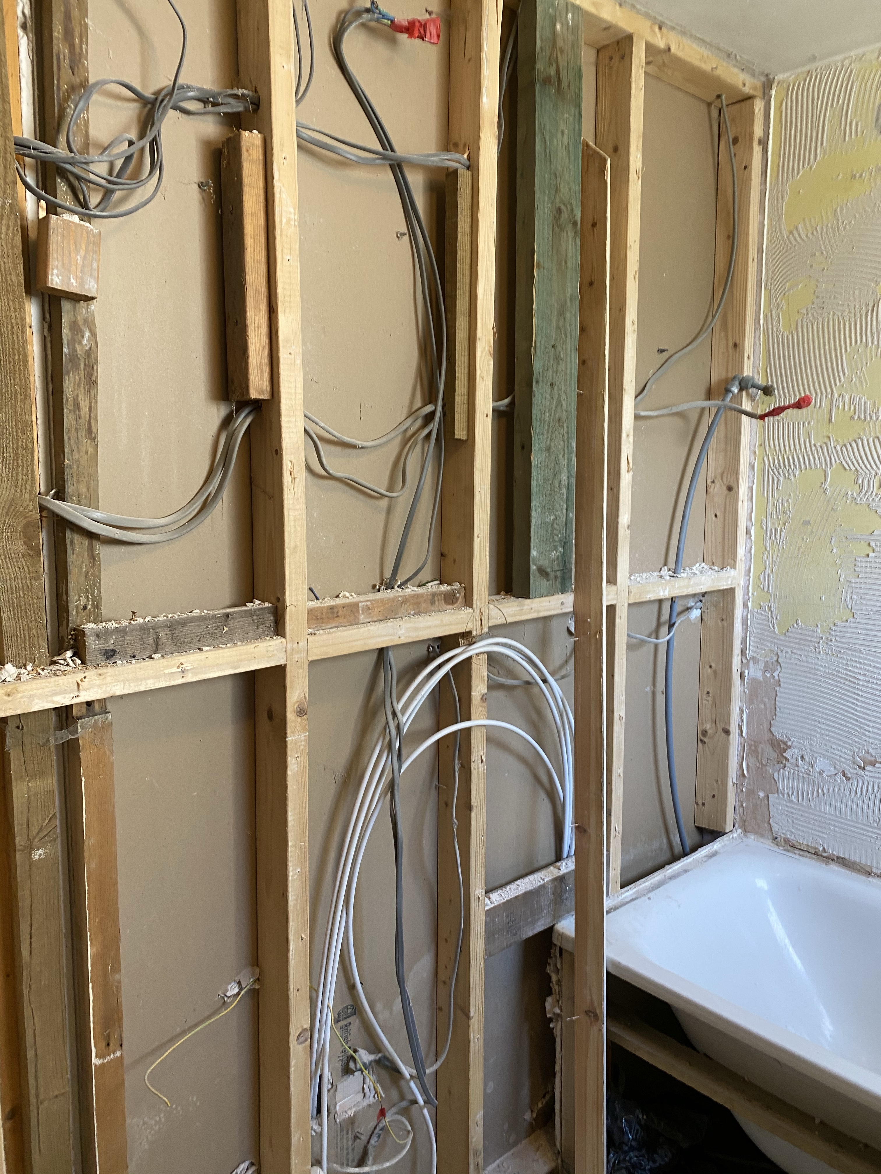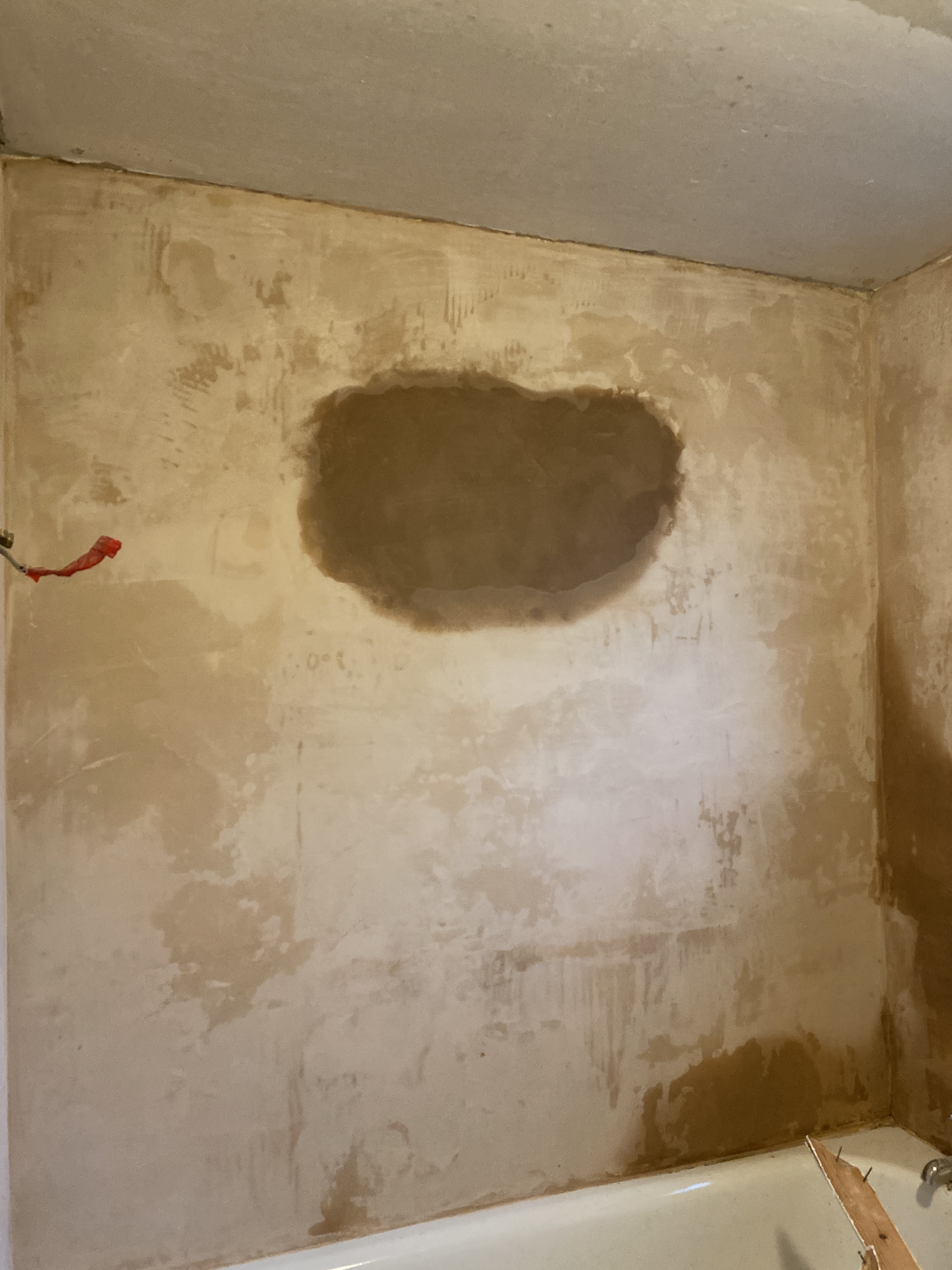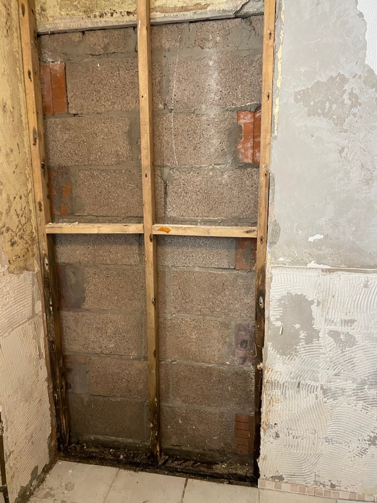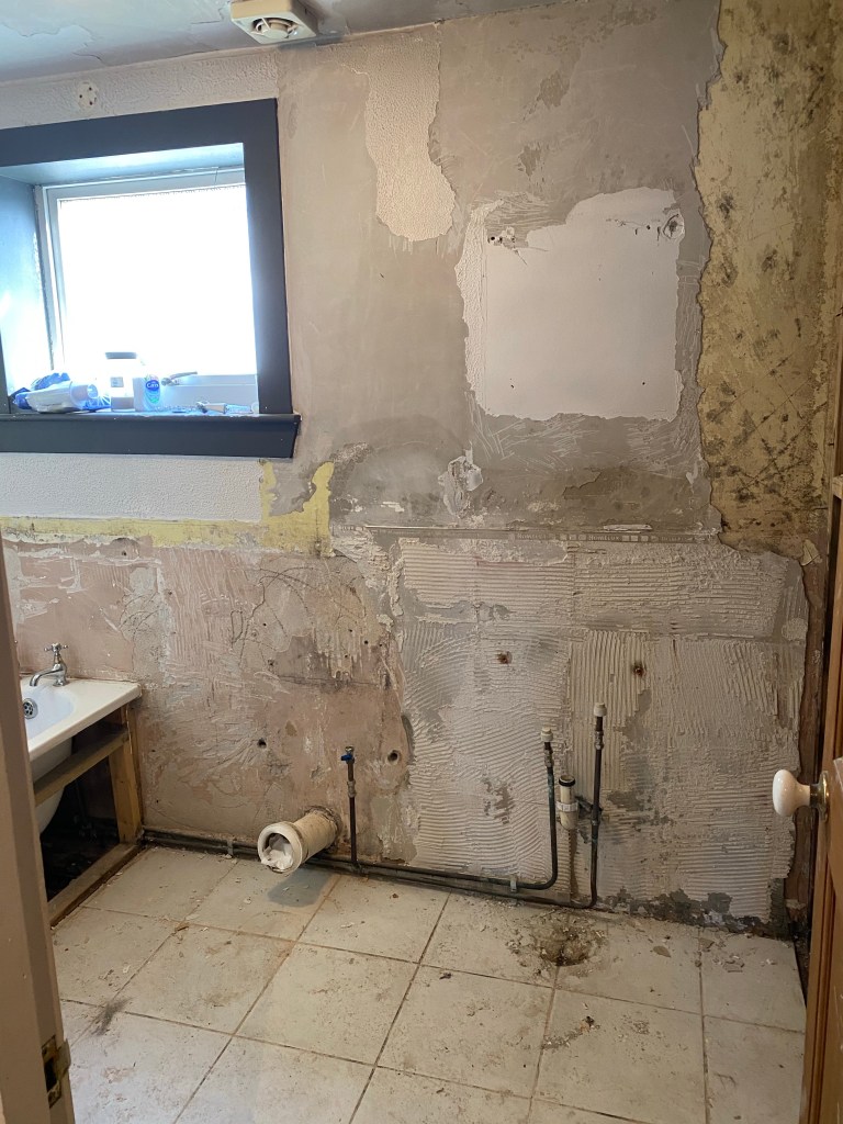 So we now need the back wall rendered and the whole bathroom plastered. The plumber knows a plasterer but we’re on our own with a Renderer if that’s even a word?!?