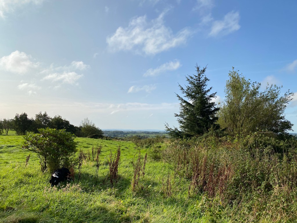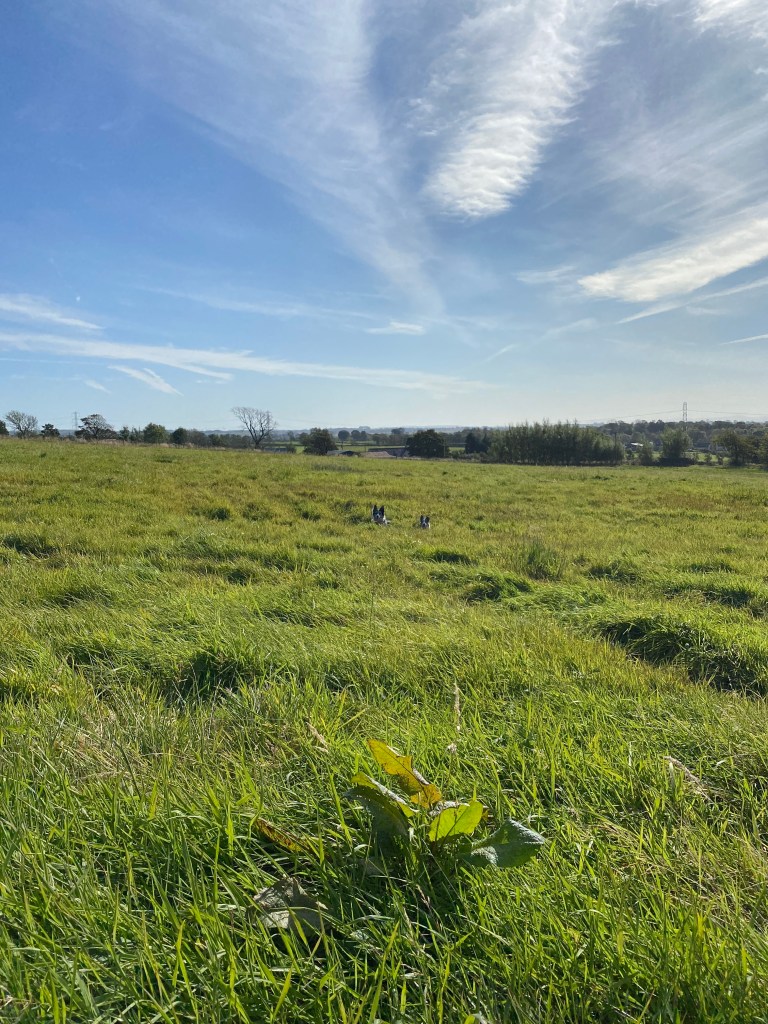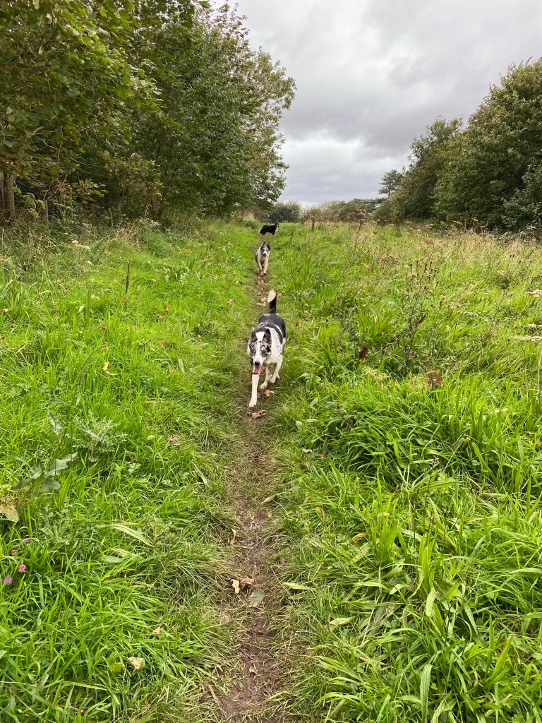It never came to anything though spots of rain were forecastThe sun went back in … jumper back onGood girl Bhru off the lead. So, so, so, so much easier when you walk the dogs on their own!