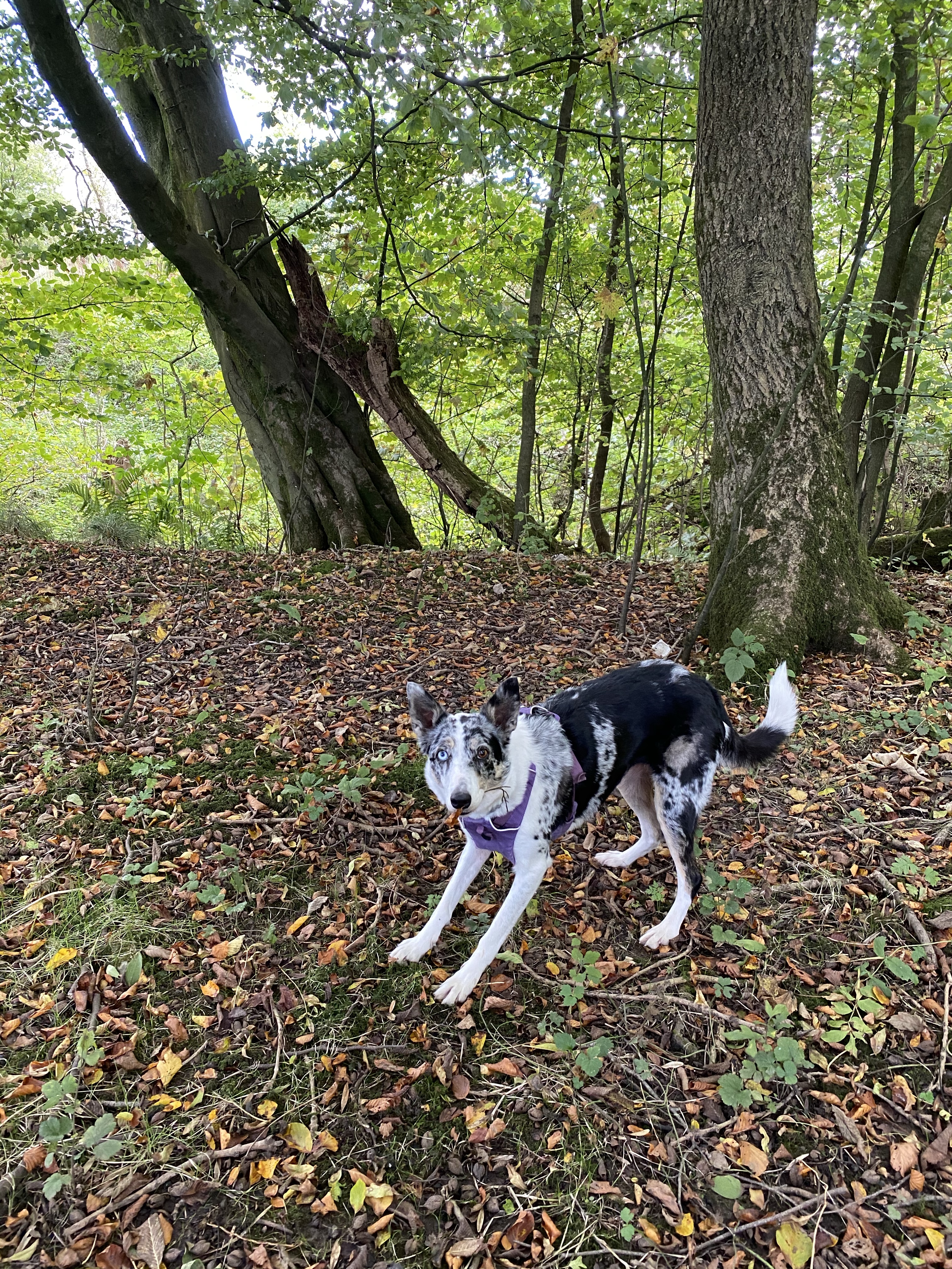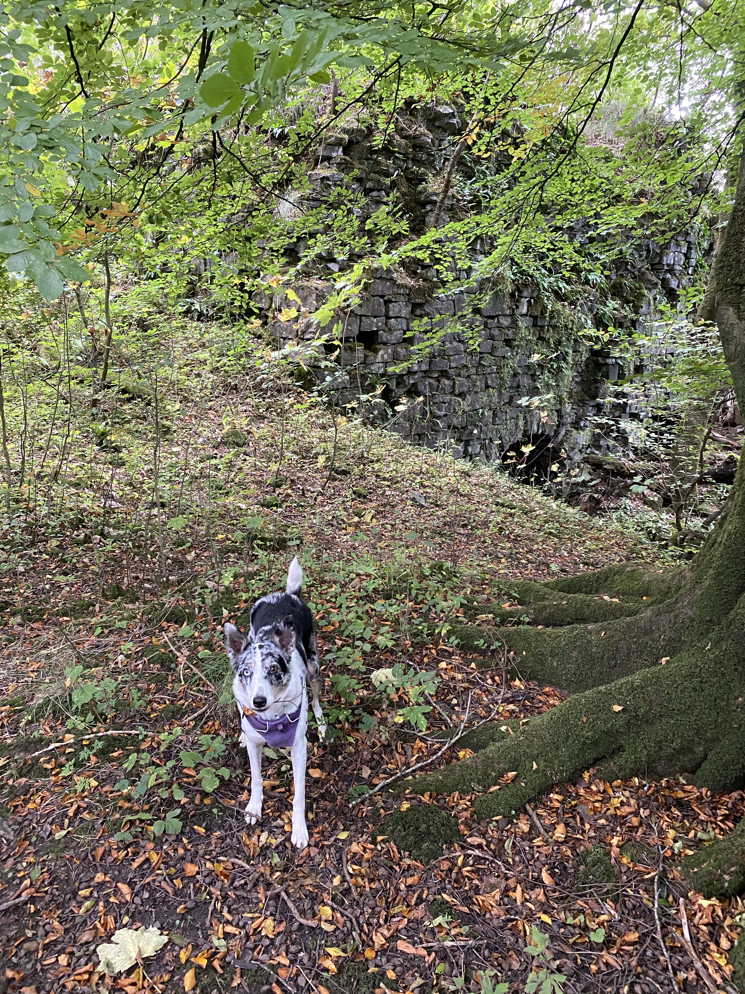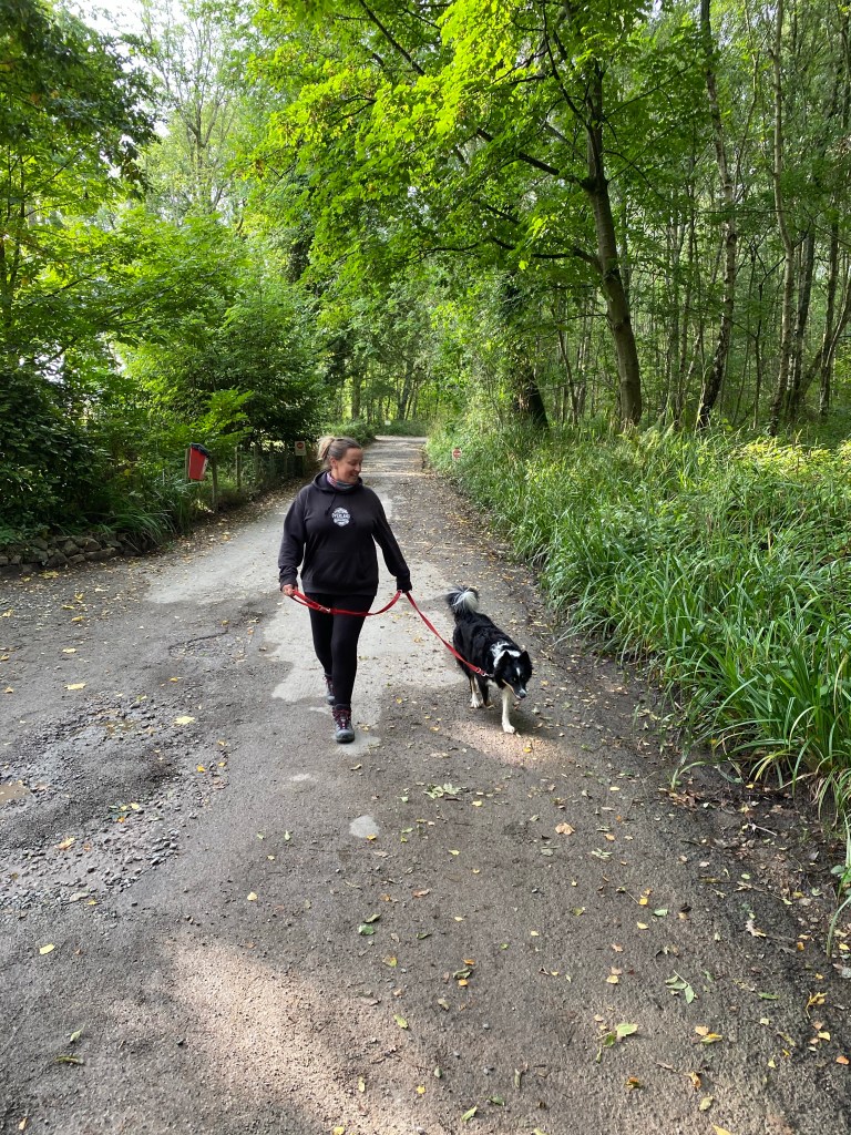 Freya and I set off for a walk under a mean and moody sky 🌌 Spending some one on one time training with her and she was really good We had a lovely run about in the woods… well of course it goes without saying that she ran and I walked! The limekilns in the background I came back home to get Bhru and take her out and the sun came back out…. jumper off…