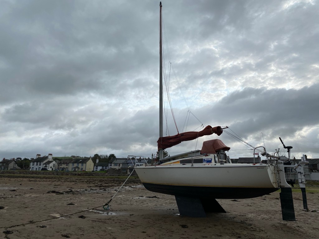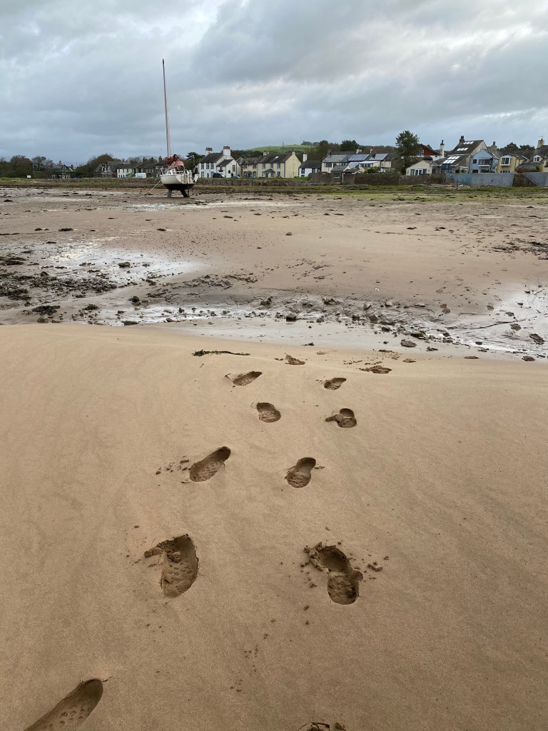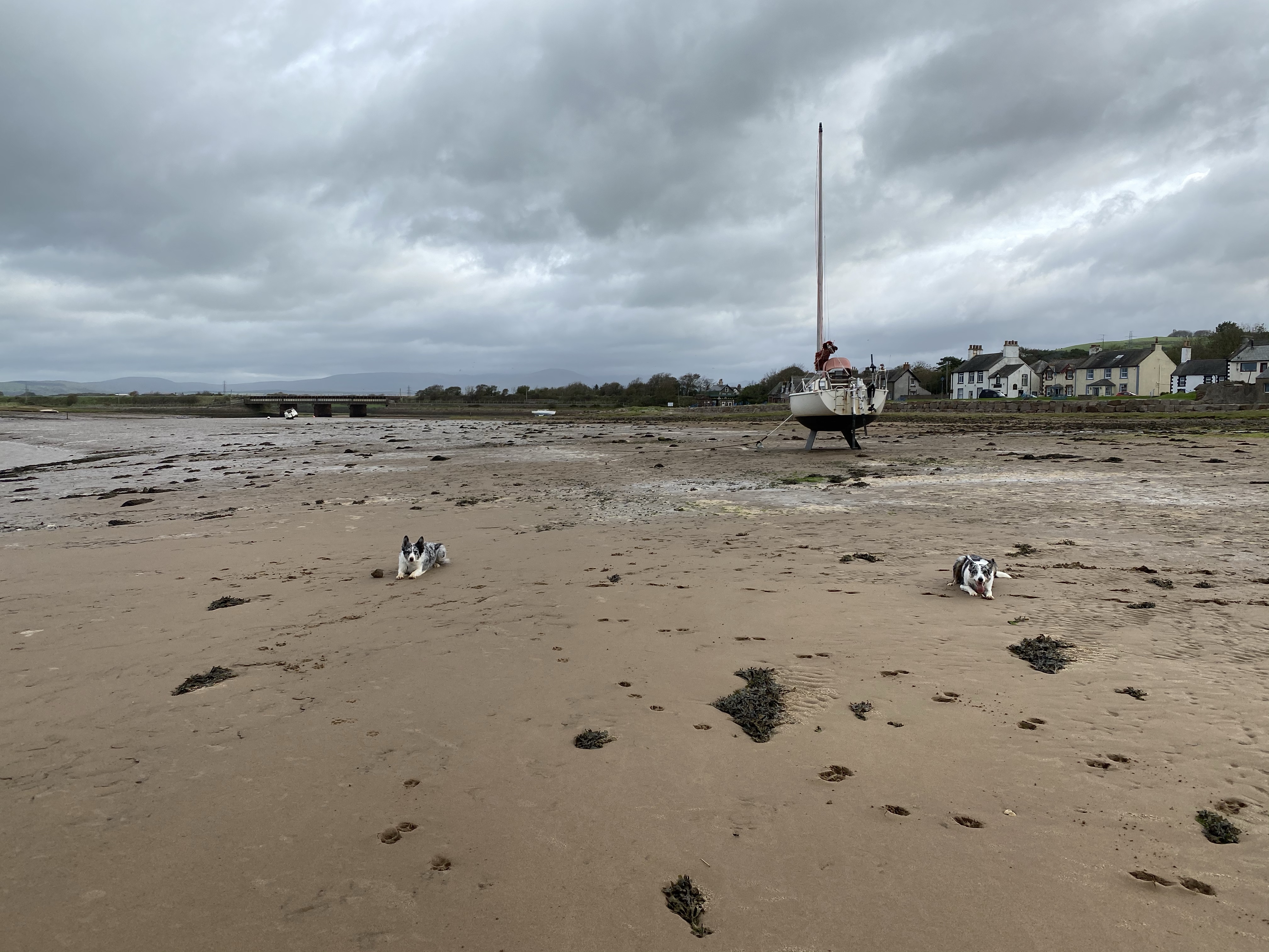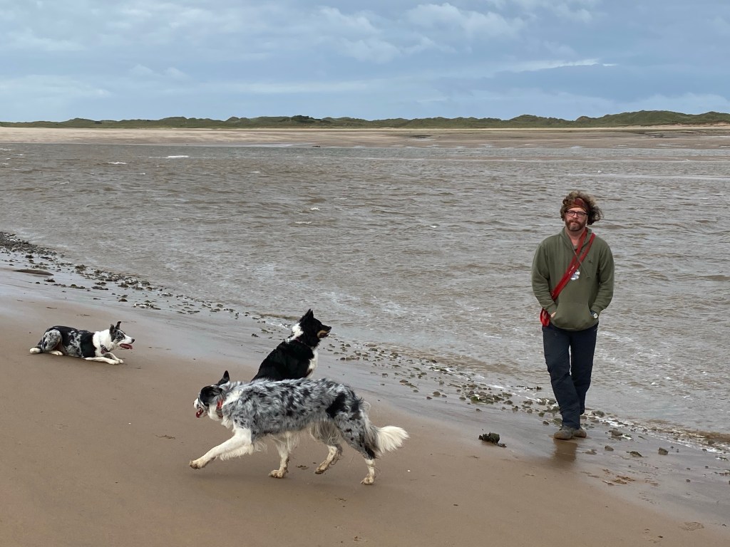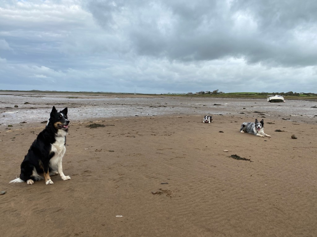 Off down to the beach Ready to run!!It’s a nice morning though really windy! Got a bit arty! We found some sea!Knackered!I had to resort to Buff over ears! Boat going nowhere… The clouds are getting darkerIs there a train coming? Same wildlife hereCalaidh has to be different