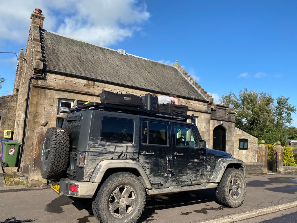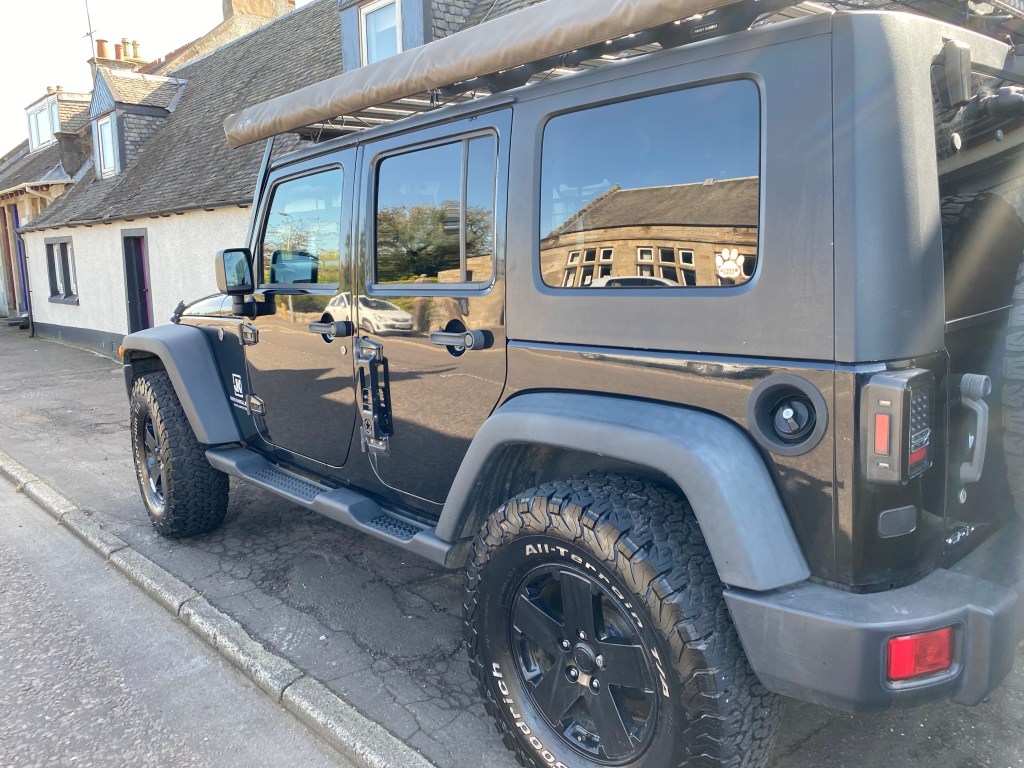 Calaidh chilling on the journey Home!!!!!The dogs look so p*d off!! Even Craig says “it’s not like you don’t have a million pictures the same”… Good old Jeepey😍