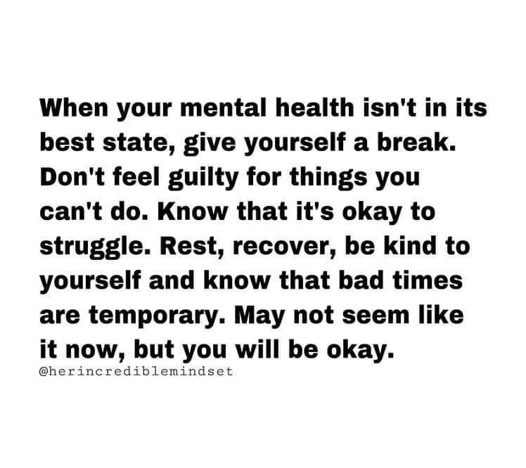 If you’re off work with a broken leg, people send you flowers and lots of well wishes. If you’re off work with mental health then it’s a whispered, taboo subject and people stay away so as not to upset you. Those that did get in touch meant a lot as they had broken the mould and reached out.