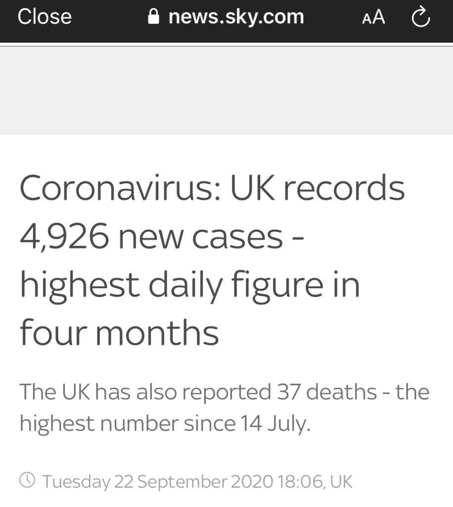 Here in the UK we’ve experienced a spike in COVID-19 cases where the R number is now between 1 and 1.2. This means for every person infected another 1 or 1.2 people become infected. These numbers sent us into lockdown in March.