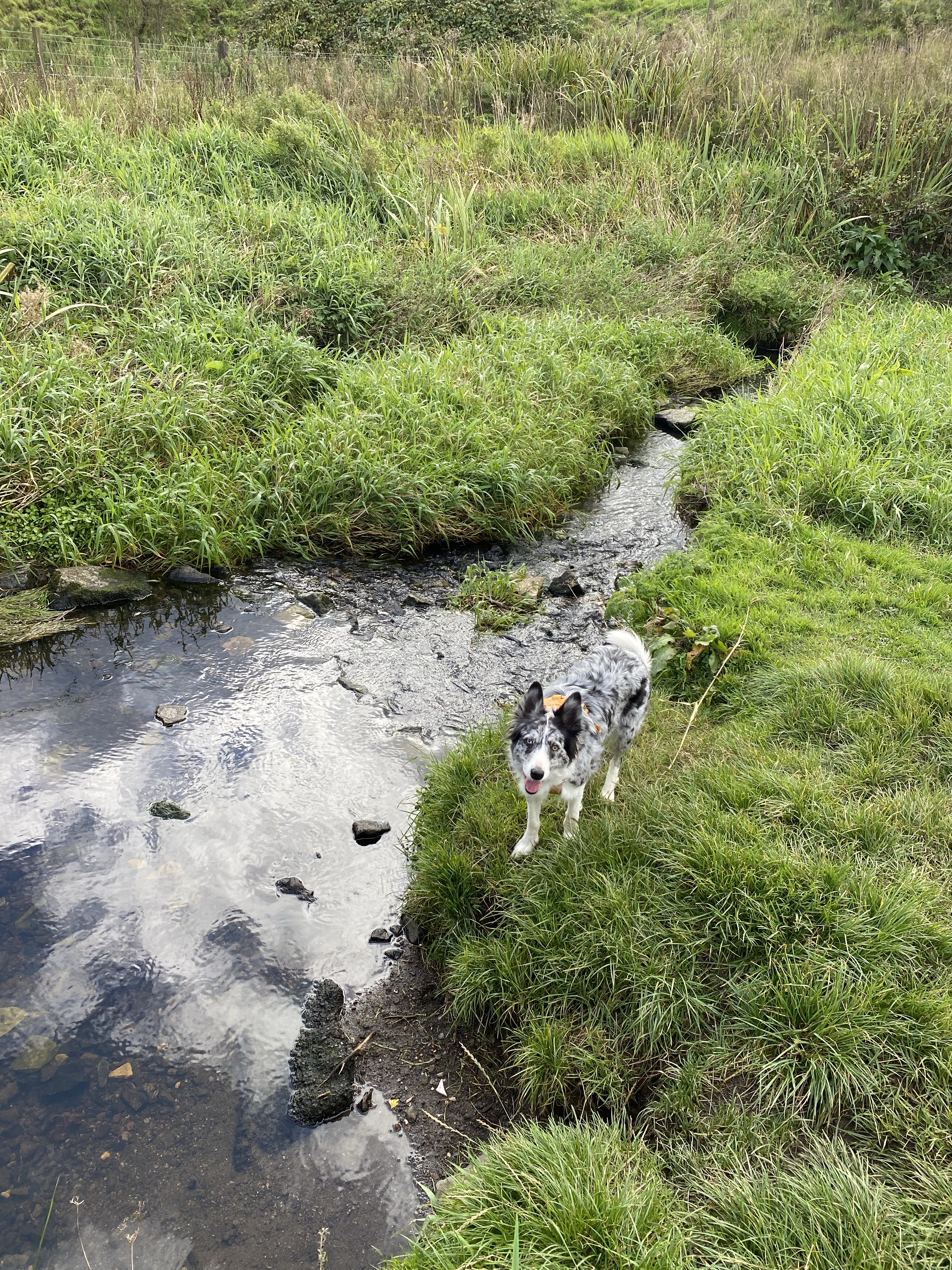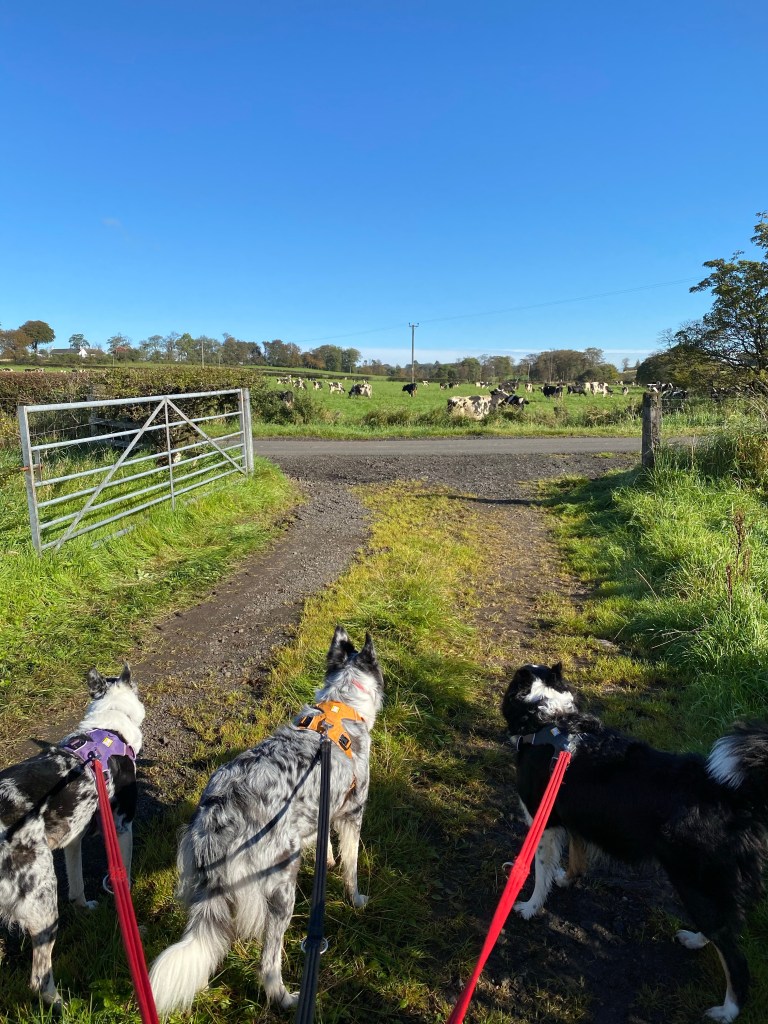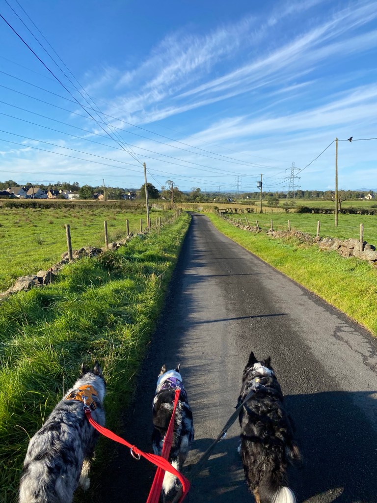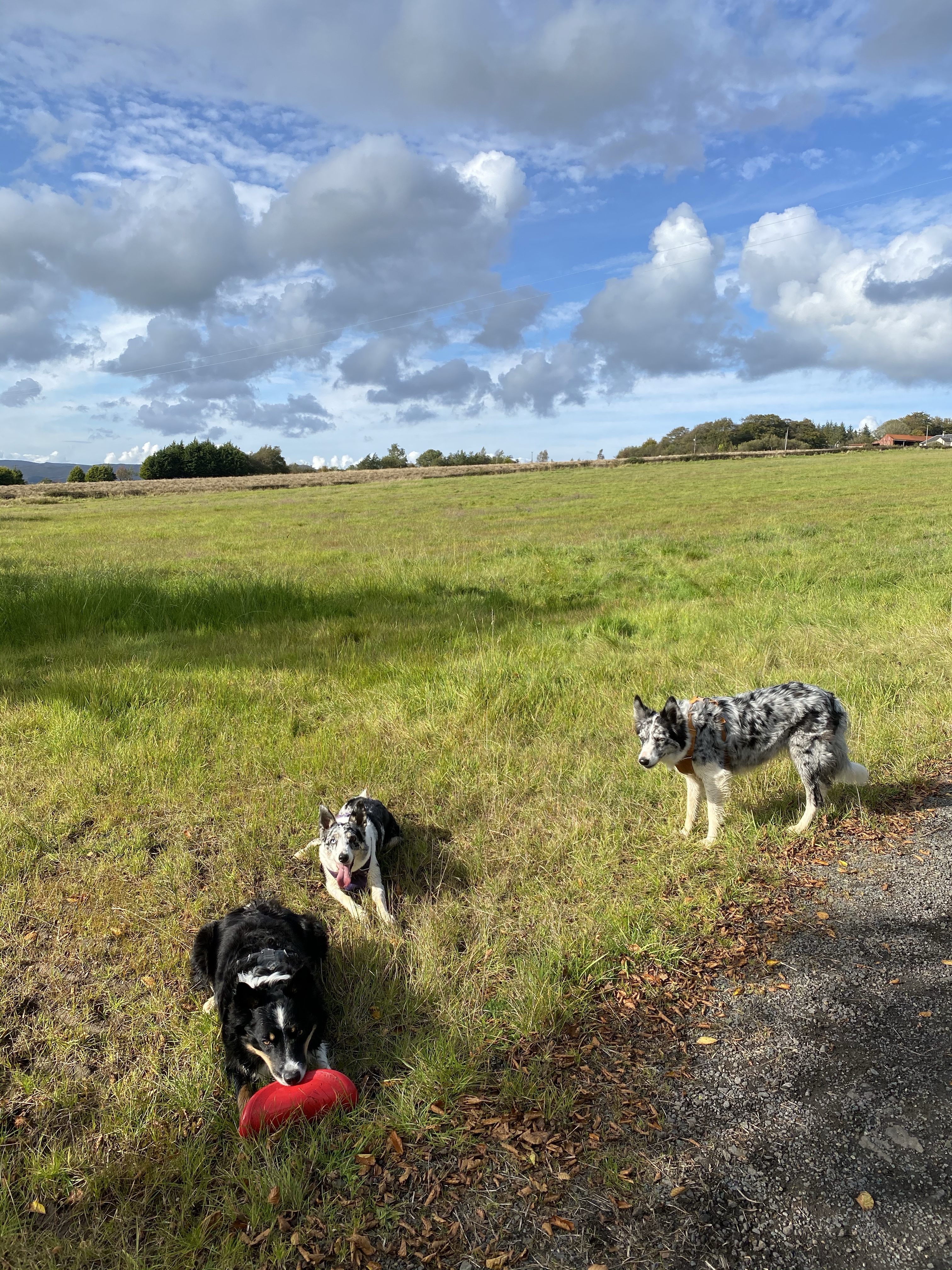 We had a lovely frisbee dog walk today It’s another beautiful day I loved this The road to nowhere… except Margaret Johnson’s obviously! Calaidh carries the frisbee home!!