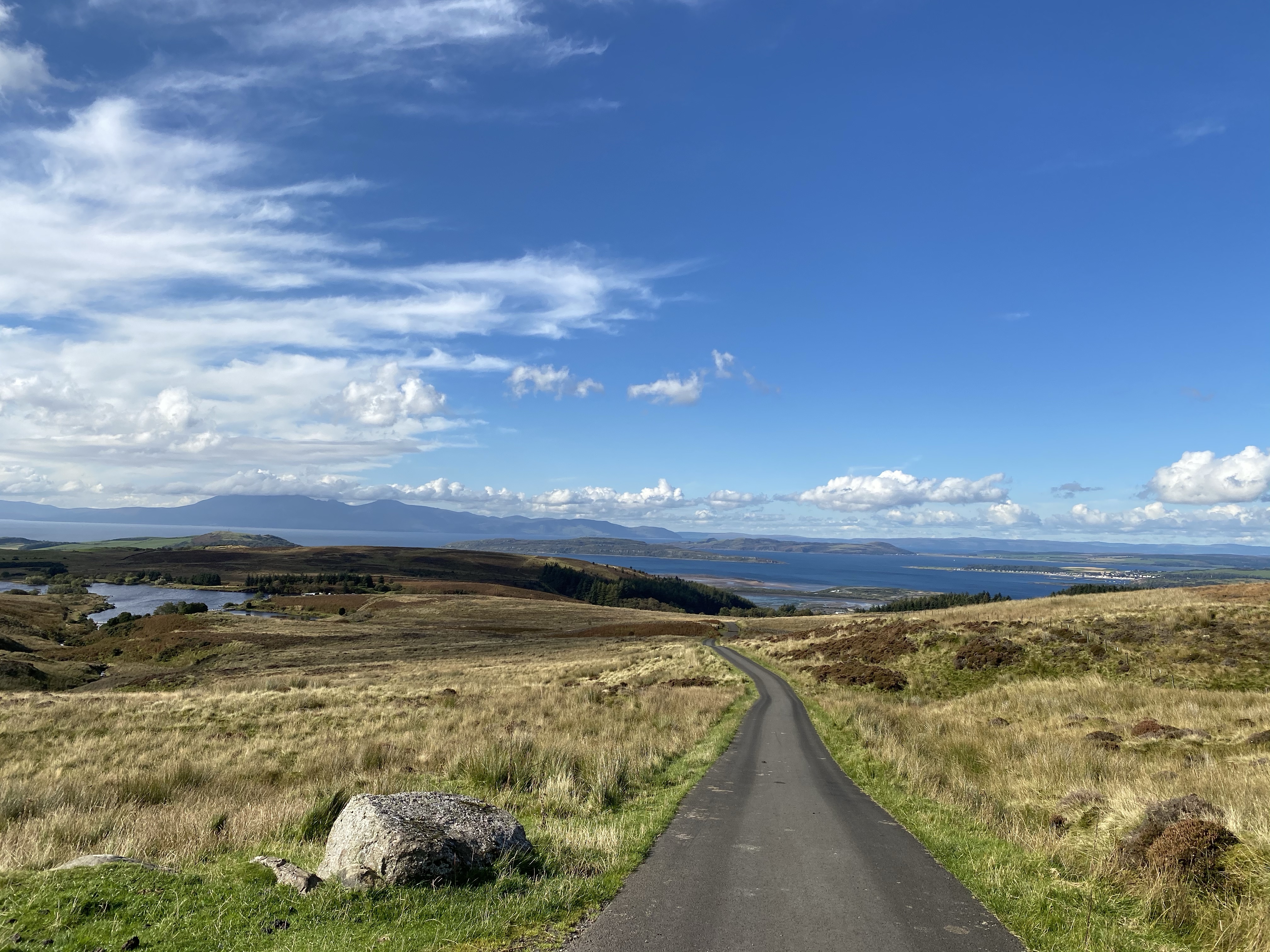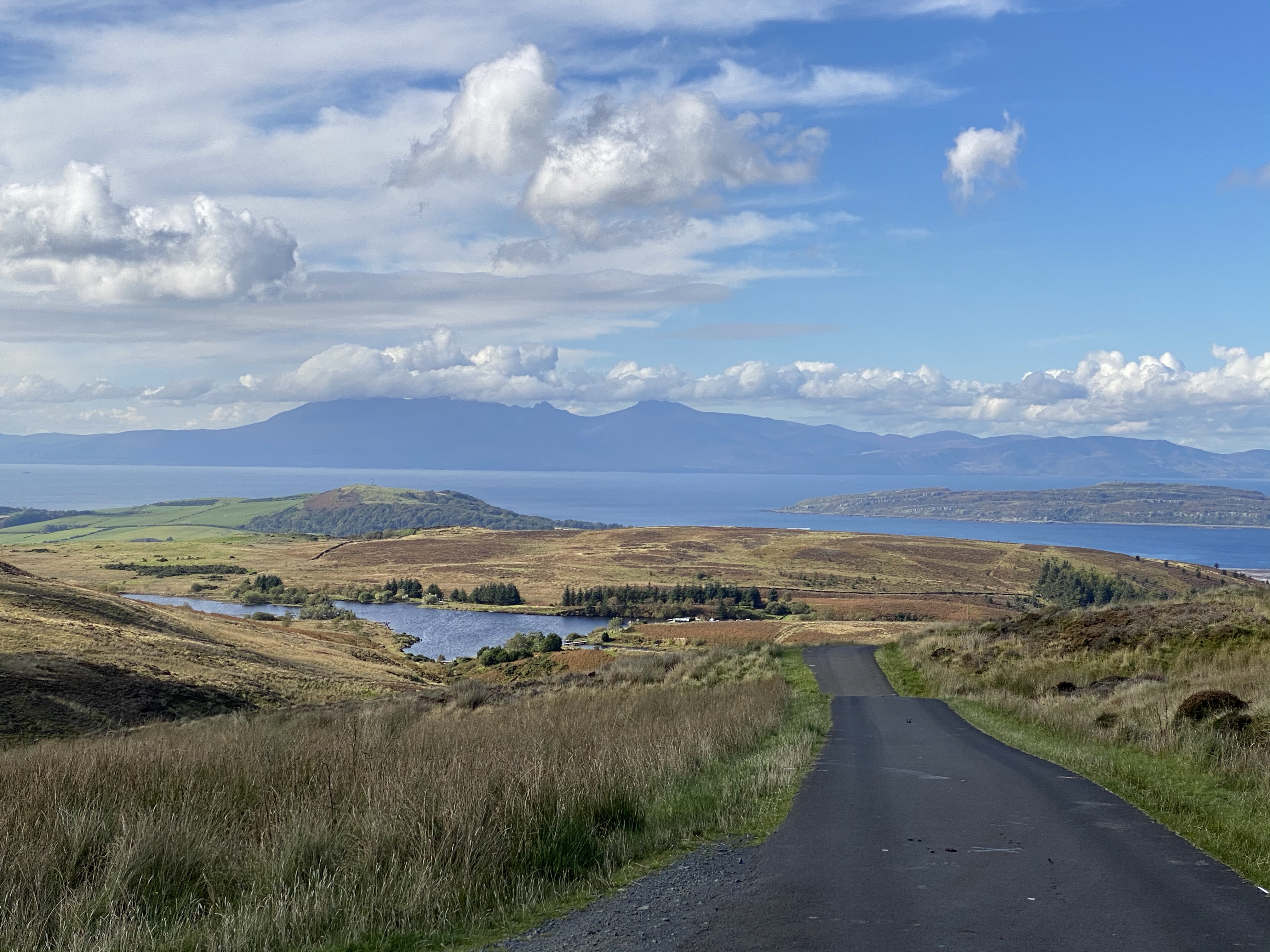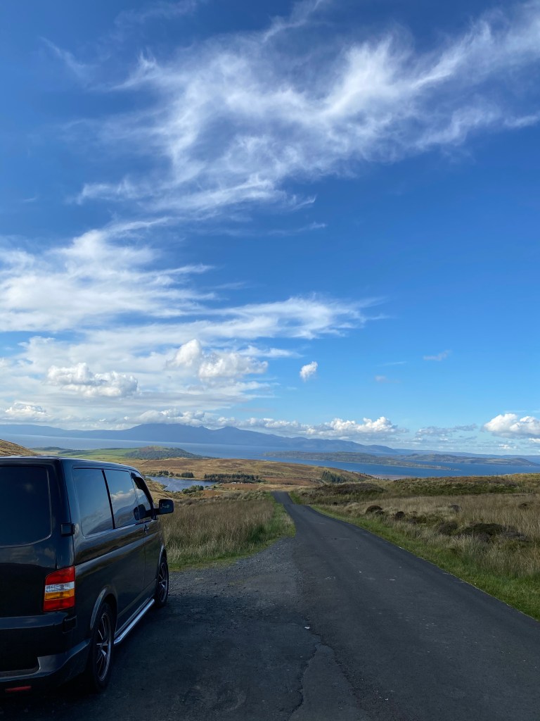 The road less travelled The first sign of the view down to the Isle of Cumbrae (Millport) on the way down to the coast Just love the peaceful road The second stop with Abbie the campervan posing Zoomed in on Goat Fell New road!! it’s been freshly tarmac’d So of course I ended up in Largs