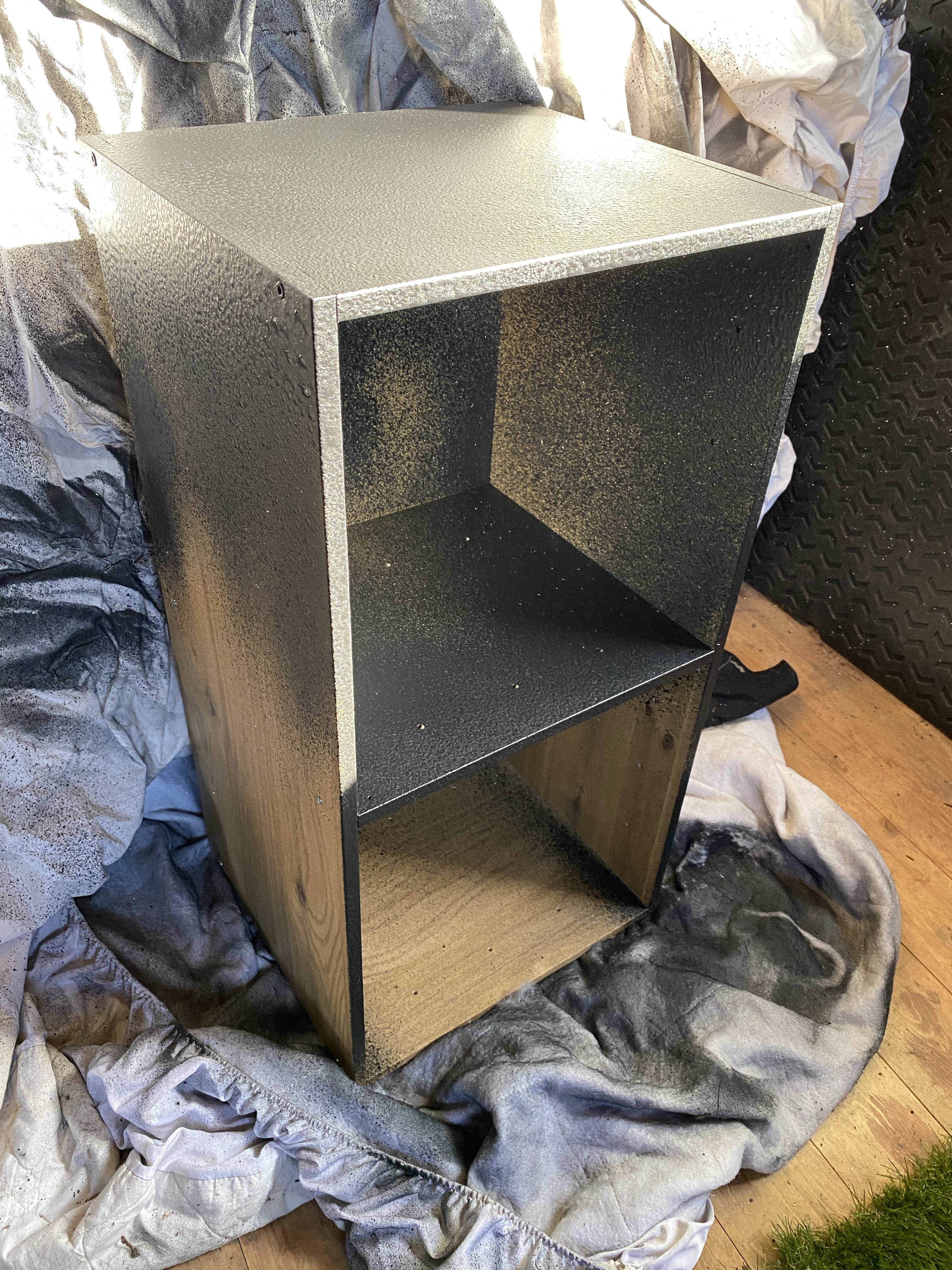 So home, shopping away and Craig started to build the drawer unit for the Jeep and has just so rested it in Raptor spray paint. He ran out but it looks great so far!