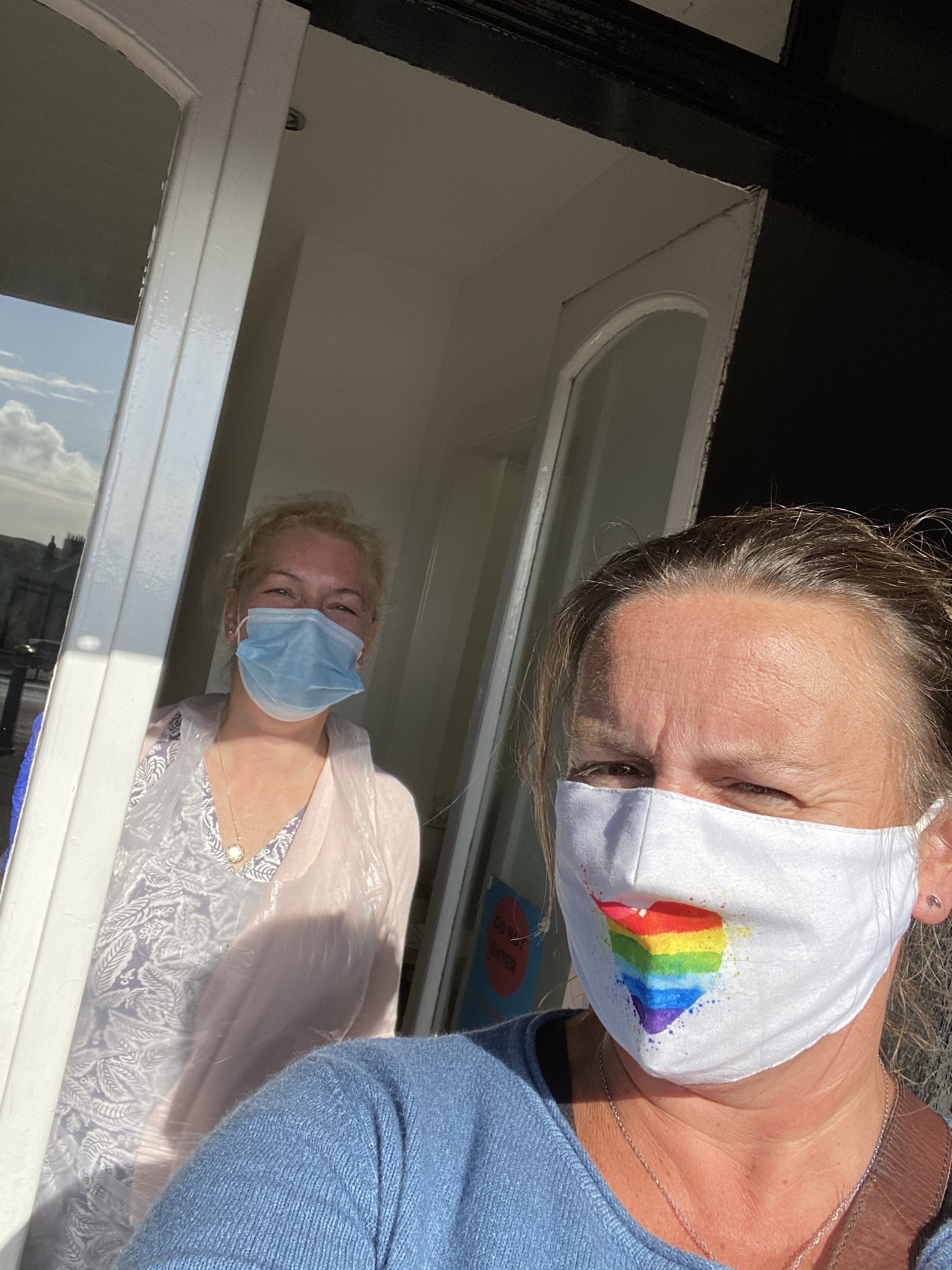 Shelagh wears a mask, apron and gloves throughout the treatment. I missed her hugs though!!