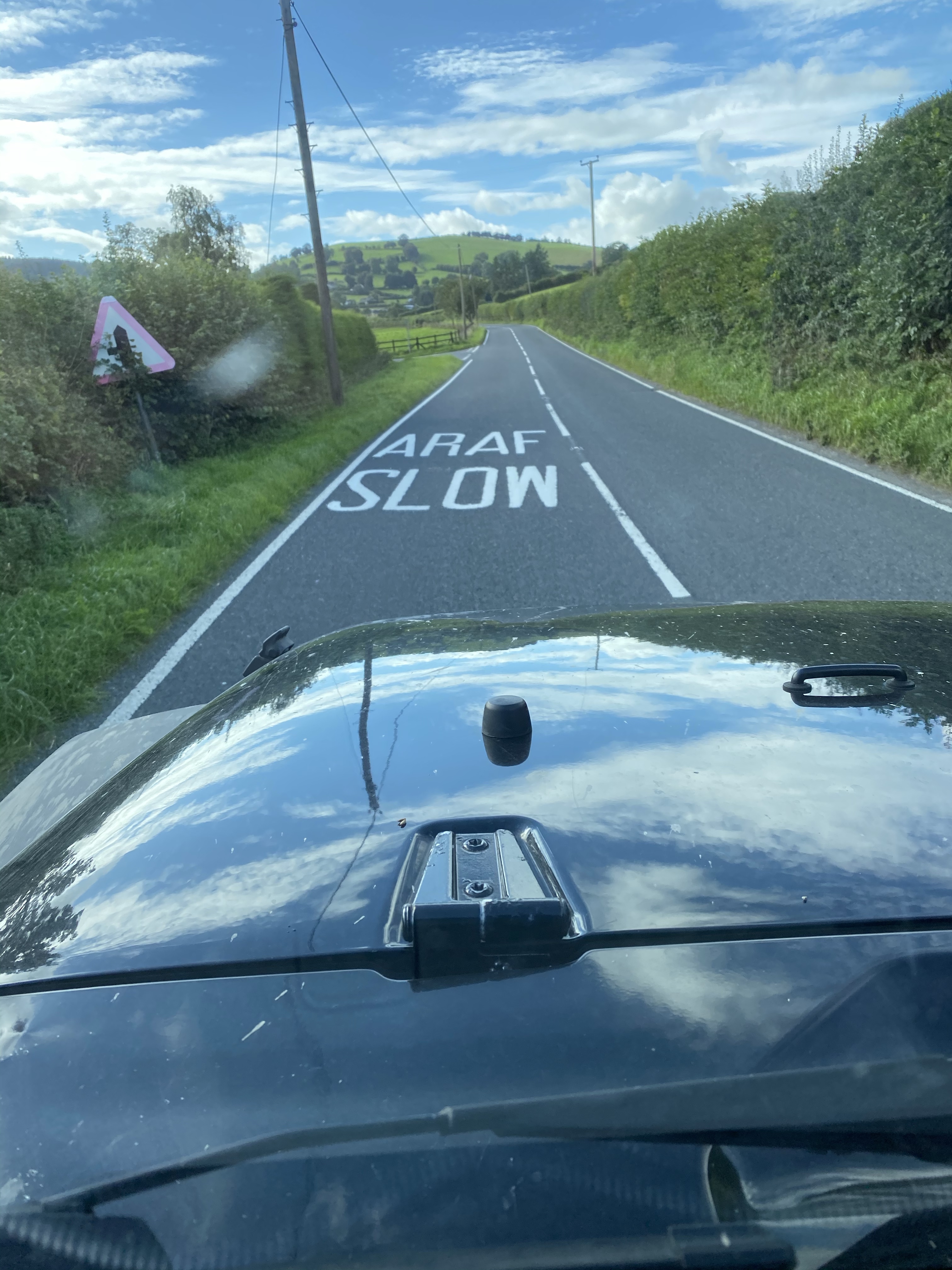 I just missed the Welsh sign…. haha! Craig’s on to his mum and waving and I’m writing this… dammit never mind. So we’re in Wales 🏴 now. Only and hour and a half to go so I’ll sign off now, think of us lying on the ground trying to sleep tonight in a tent with 3 border collies 🐶🐶🐶. It’s gonna be fun!!