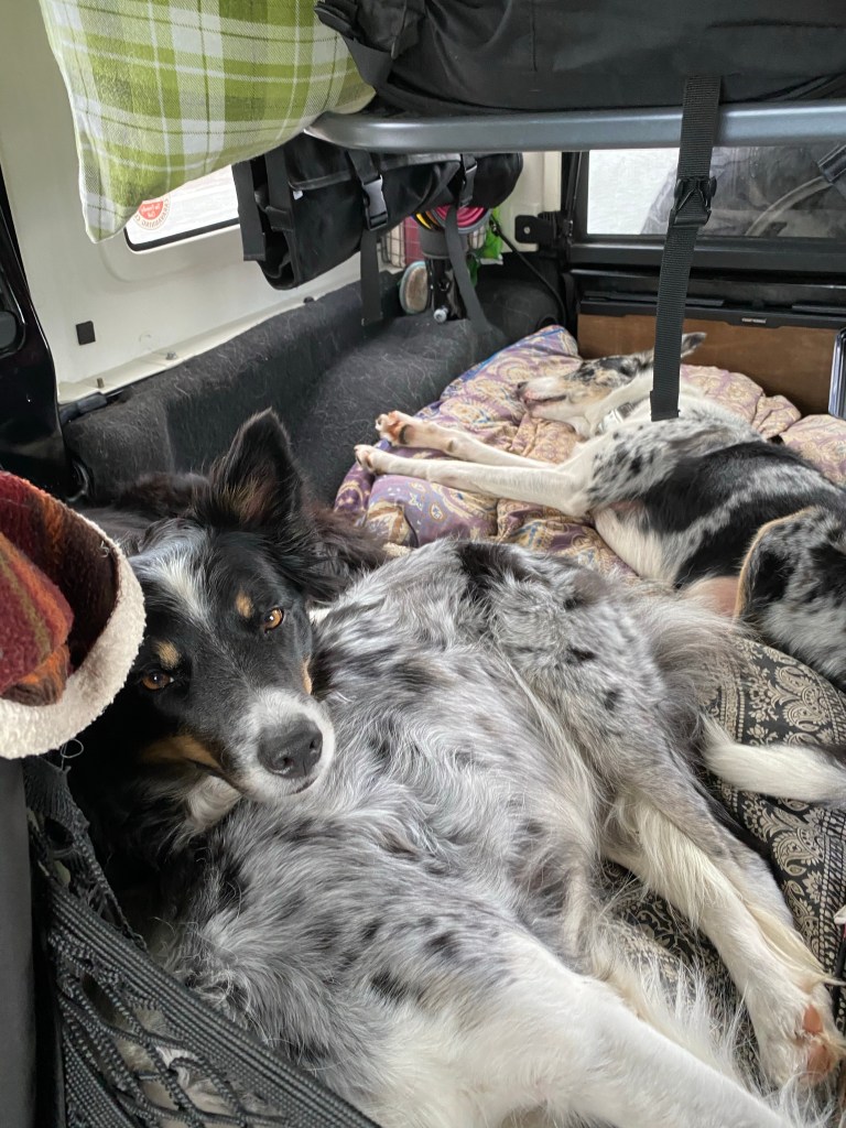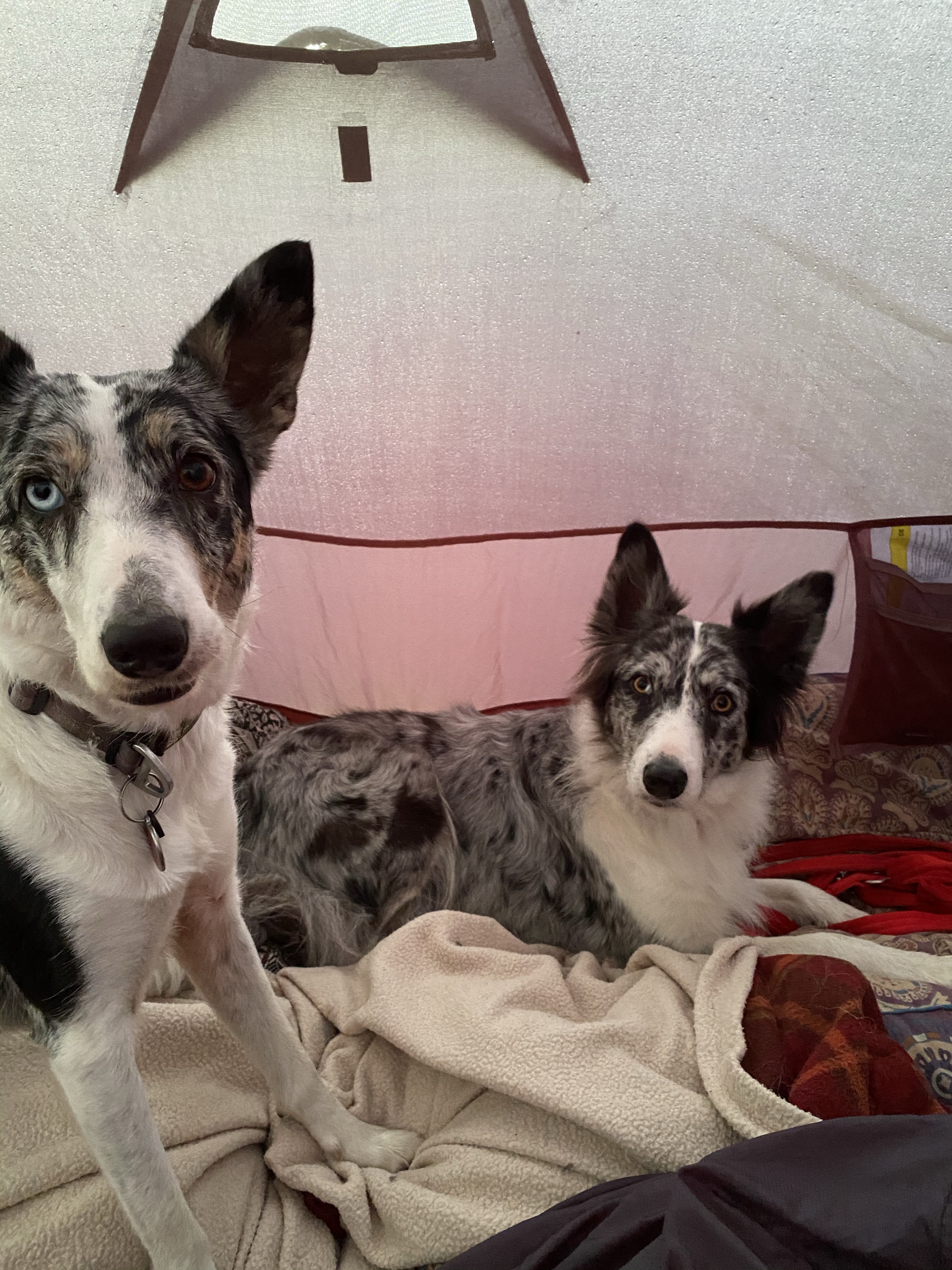 Nothing better than being snug and cosy in the tent with the 3 “dry” dogs (wet dog is never good). It’s my favourite part of camping. My least favourite part is needing a wee in the middle of the night which I invariably do!
