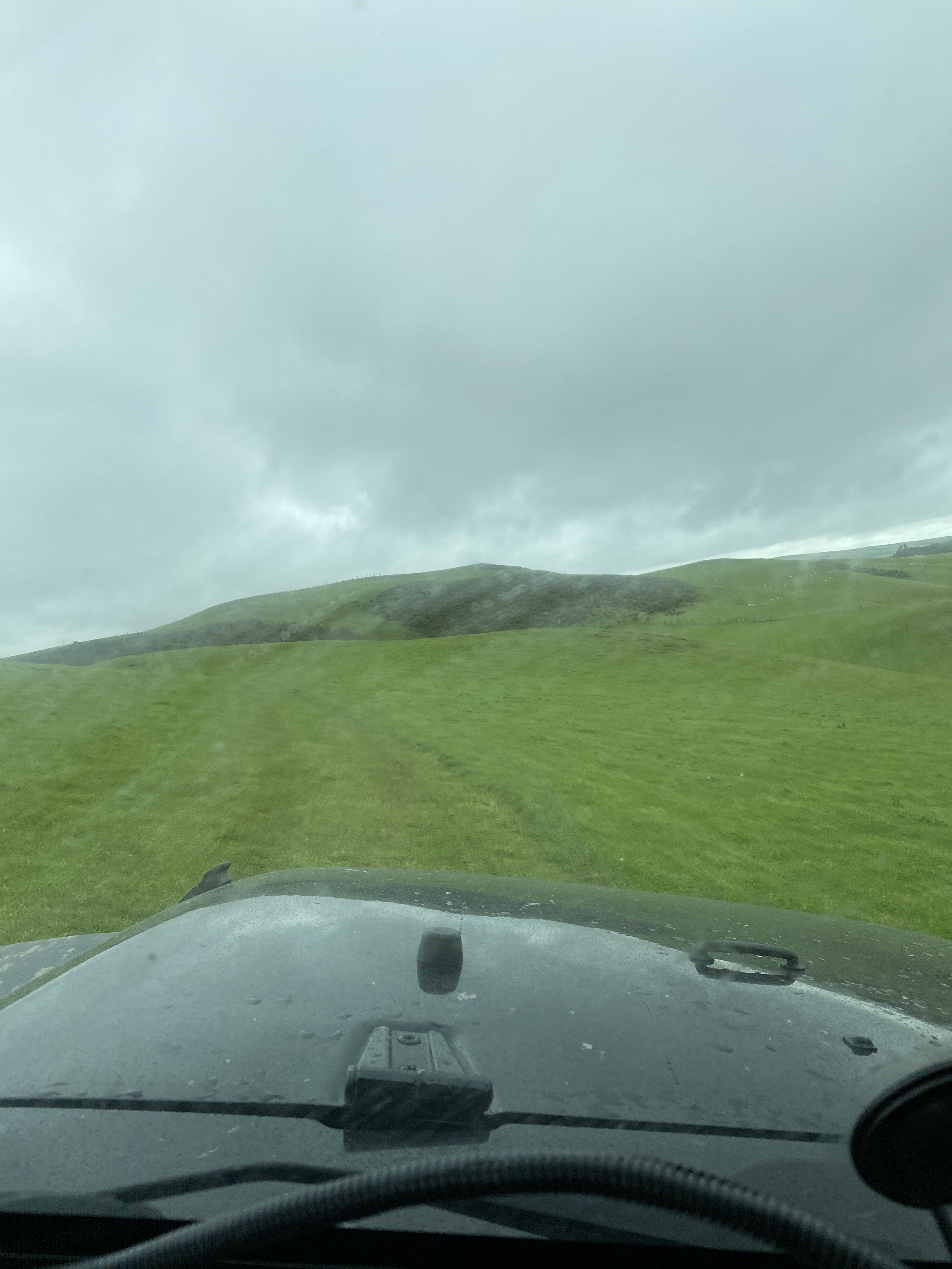 Getting ready to leave campSnapped on my hill photo shoot spot! When the sheep in the next field realised I had Border Collies with me! Our first decision…. my head went to pieces…. just could not read the map for the life of me!Phone oota windae! Naturally the passenger in the lead vehicle is official gate opener…. there were hunners o’gates!!!