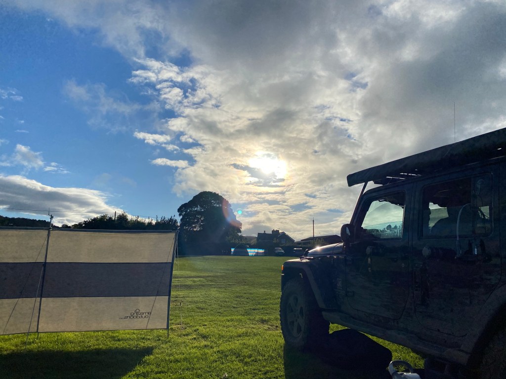 Sunset seemed early last night… think this was about 7.30pm 😱Our 8am morning trip to the toilet block! Morning silhouette of campReady for breakfast?!Kettle’s on! Coffee with a viewPacking the roof Adding more… Did we lose one?!? Nope… front seat sitting on Craig’s glasses and the go Pro of course…. typical Calaidh Last minute loo stop!! Is Calaidh laughing at me?!? “Im in your seat mumma” 😂Quite possibly the cleanest we will be for the next 5 days… off to a campsite with no facilities open due to COVID…. we have our own toilet 🚽 and “shower” 🚿
