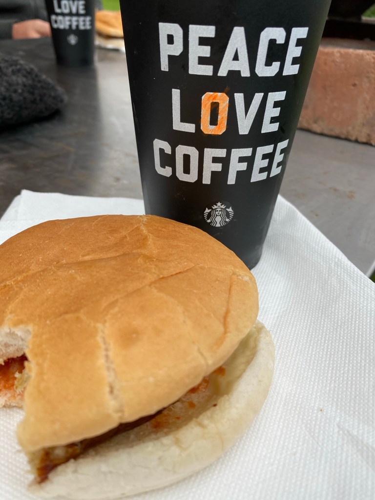 Had veggie sausages on a roll for breakfast and a lovely coffee made by Craigie because he stayed up at 7am 🤔🥱