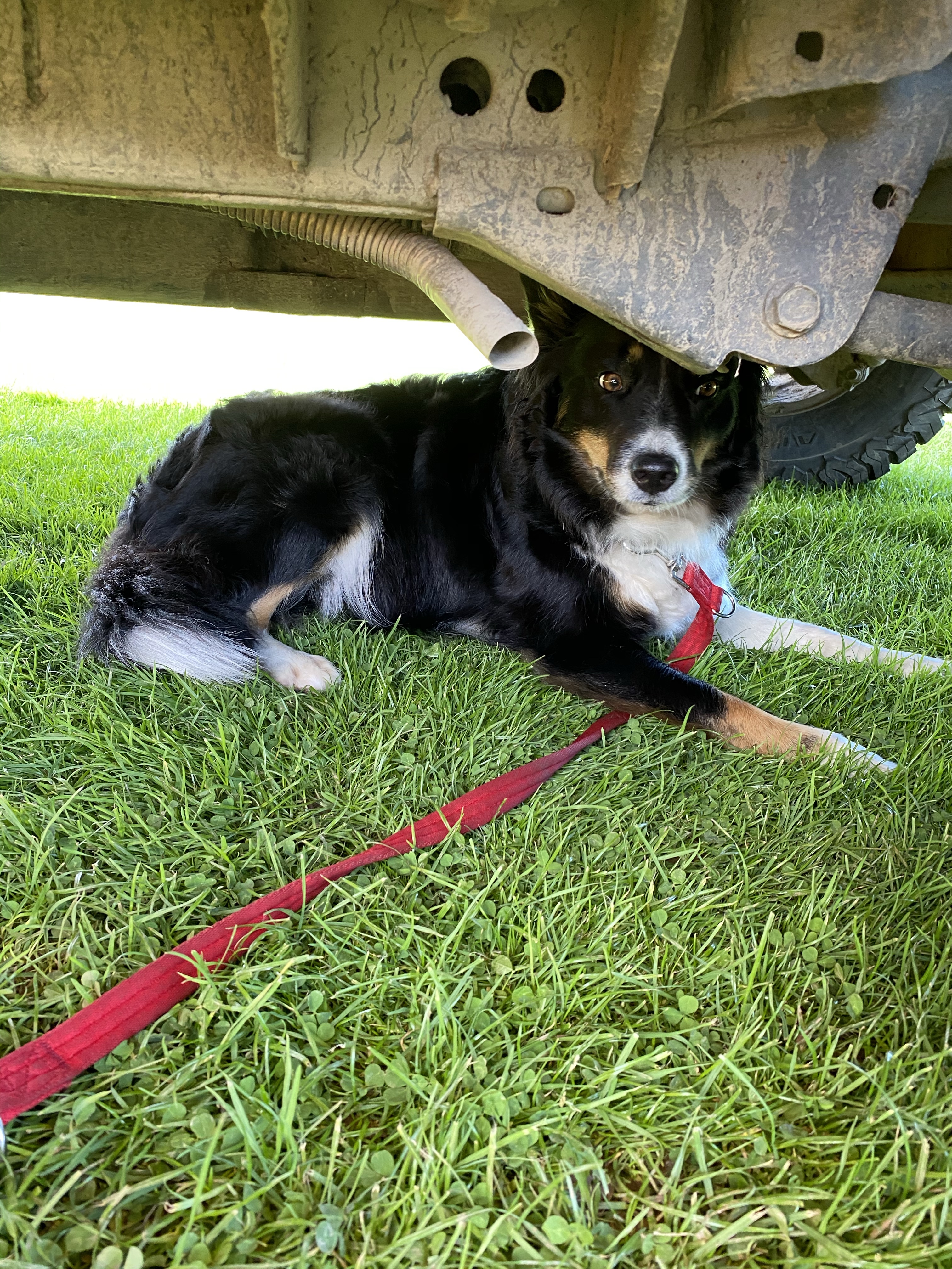 Calaidh sheltering under Jeepey McJeepfaceBhru has hardly moved in hoursFreya is the most active… always waiting for something to happen. Giving in to a wee lie down just now. Craigie is in the editing booth (or kitchen!) working on a film we took the other day. I am sampling alcohol free drinks! Love this oneSuch a peaceful corner of the site
