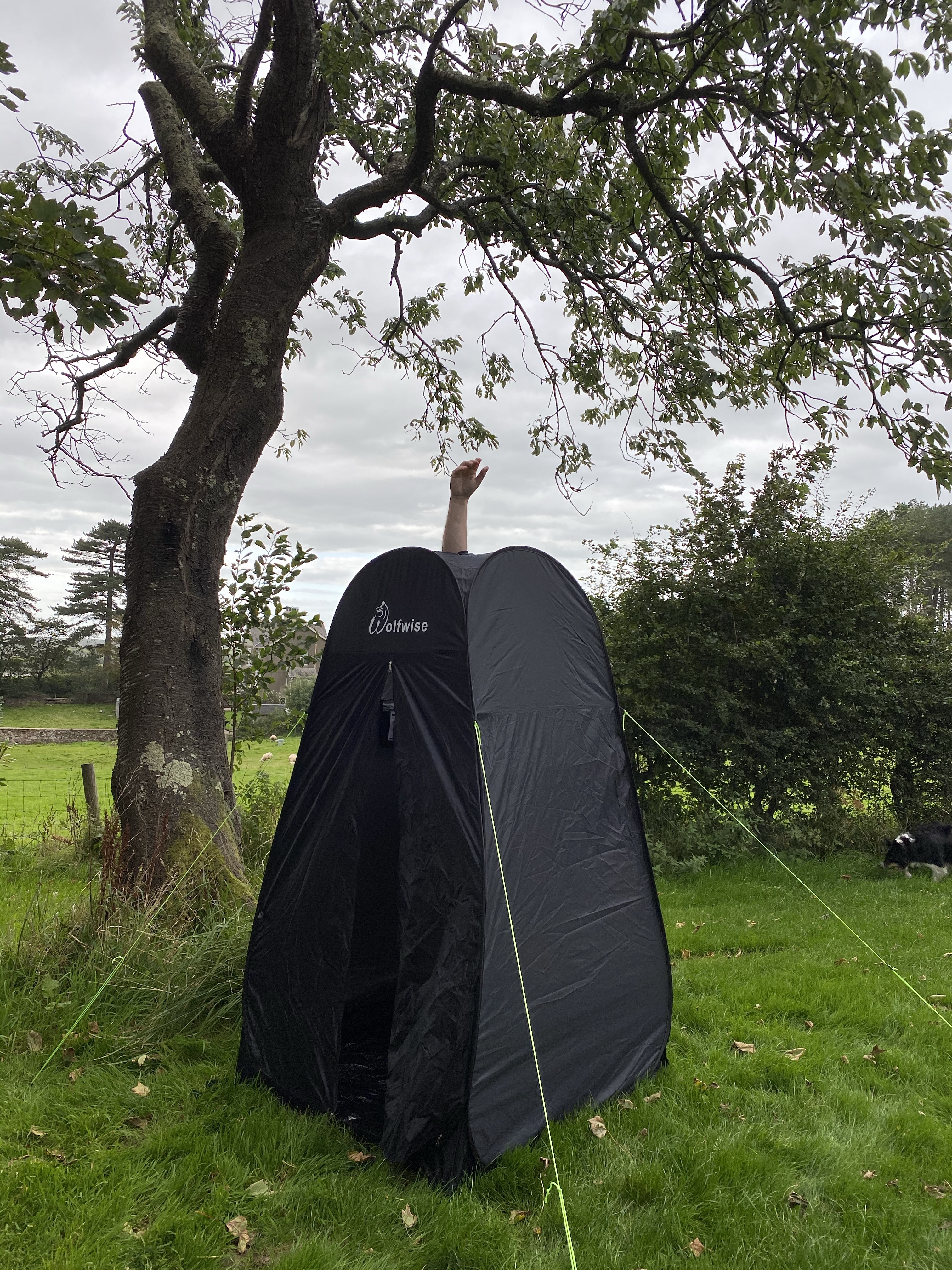 New camp set up in Ravenglass Yay the new toilet/shower tent 🏕 finally pitched