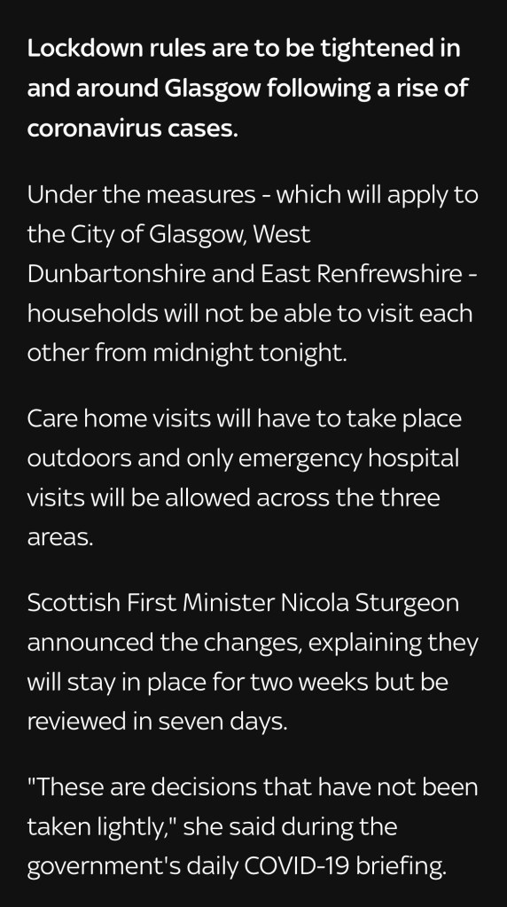 I mean like 🤩 So this happened last night and we realised East Renfrewshire comes as close to us as Lugton so we just missed out and aren’t affected by the tightening rulesA very good way to look at the new day