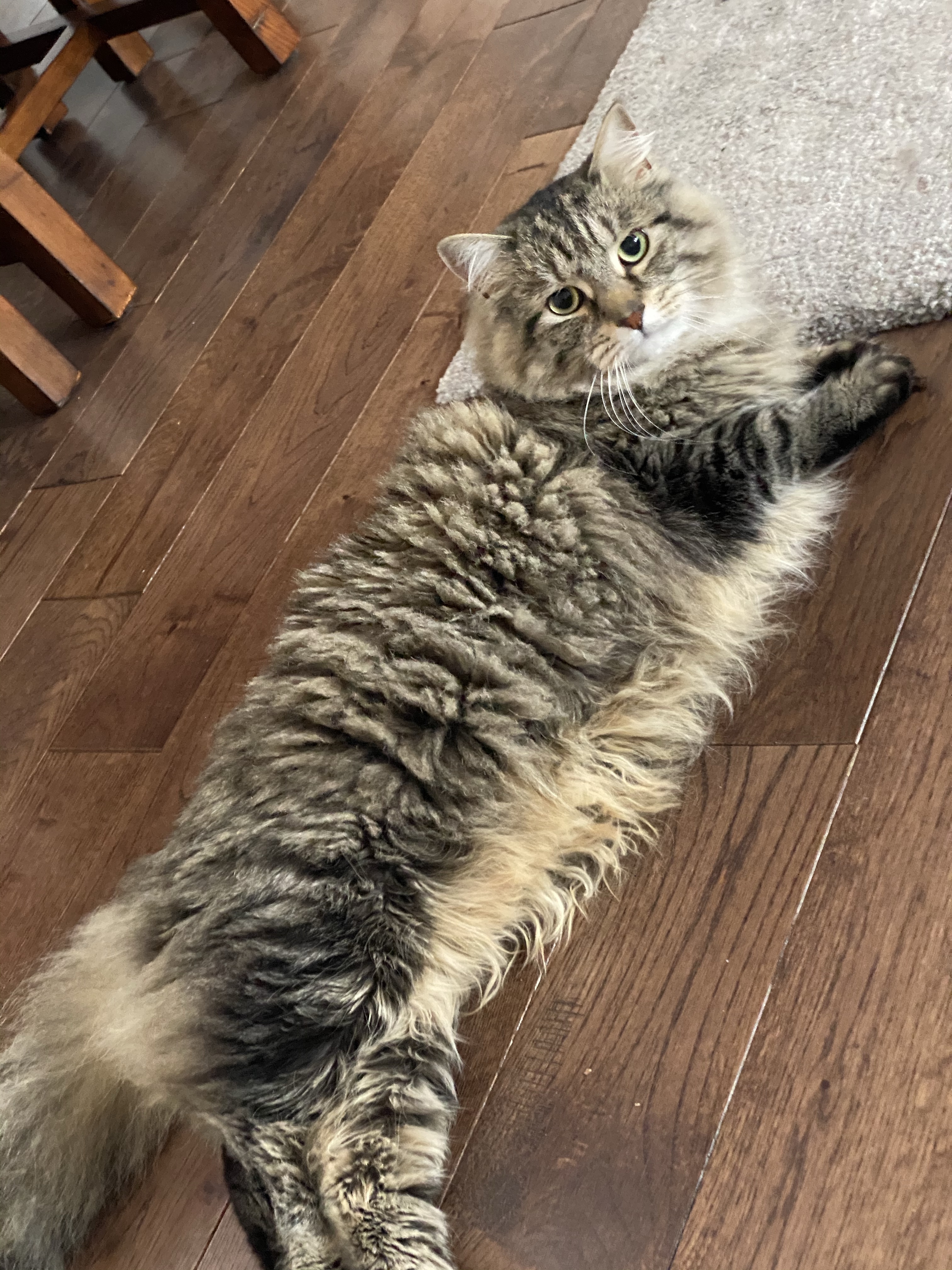Her gorgeous cat Bruce Springsteen comes to check me out! Then he has a weeeeee stretch!