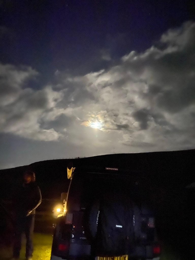 Supermarket shopping overland style! I sent Craig for that too… A real road! Welsh on everything sign here. Still breathing… the clutch that is… Still cold Julesie many layers! I have a feeling I’ve posted this pic before as I want to say yes I still have that spot…. 😬Dog walks at sunset 🌅