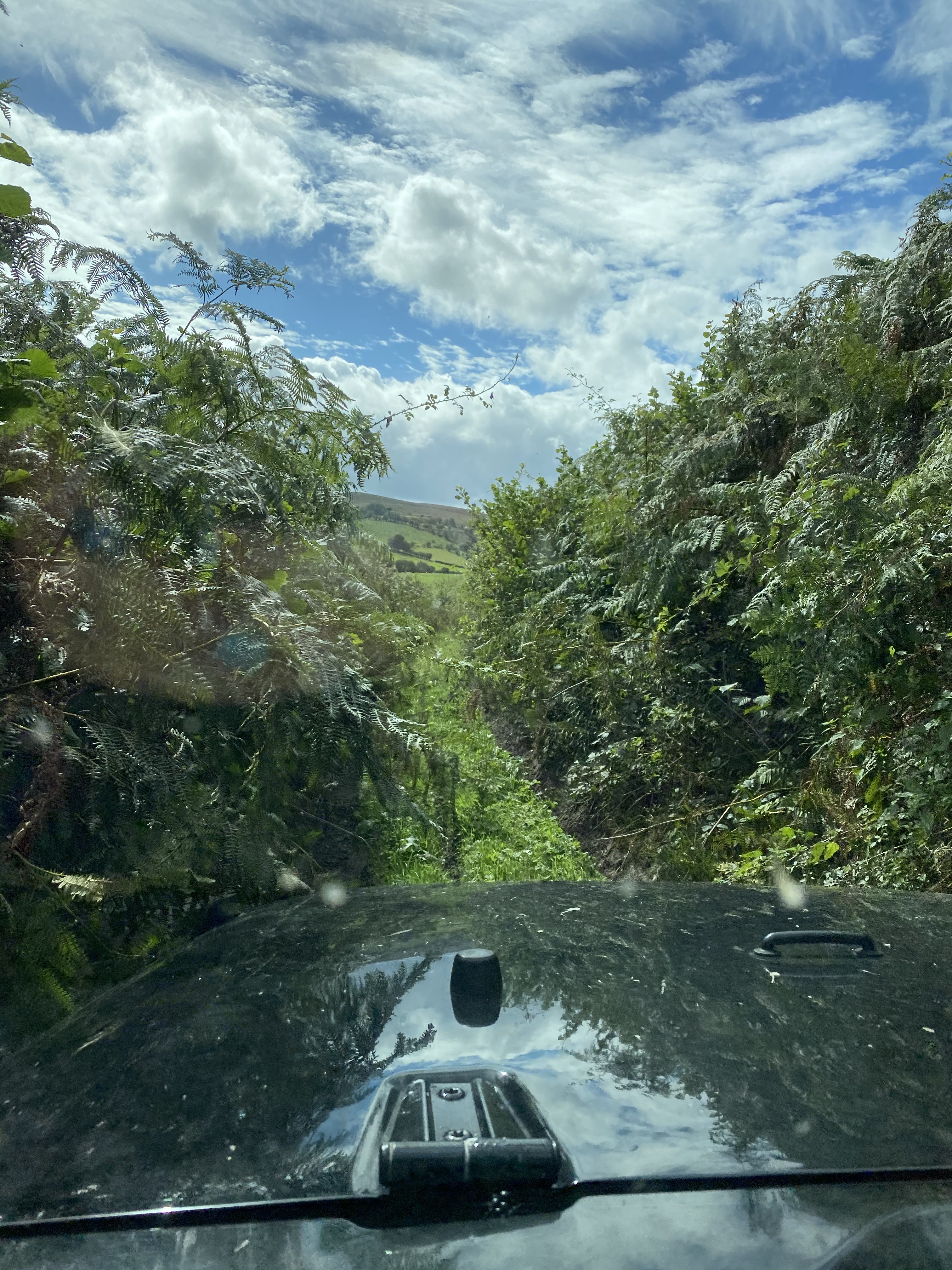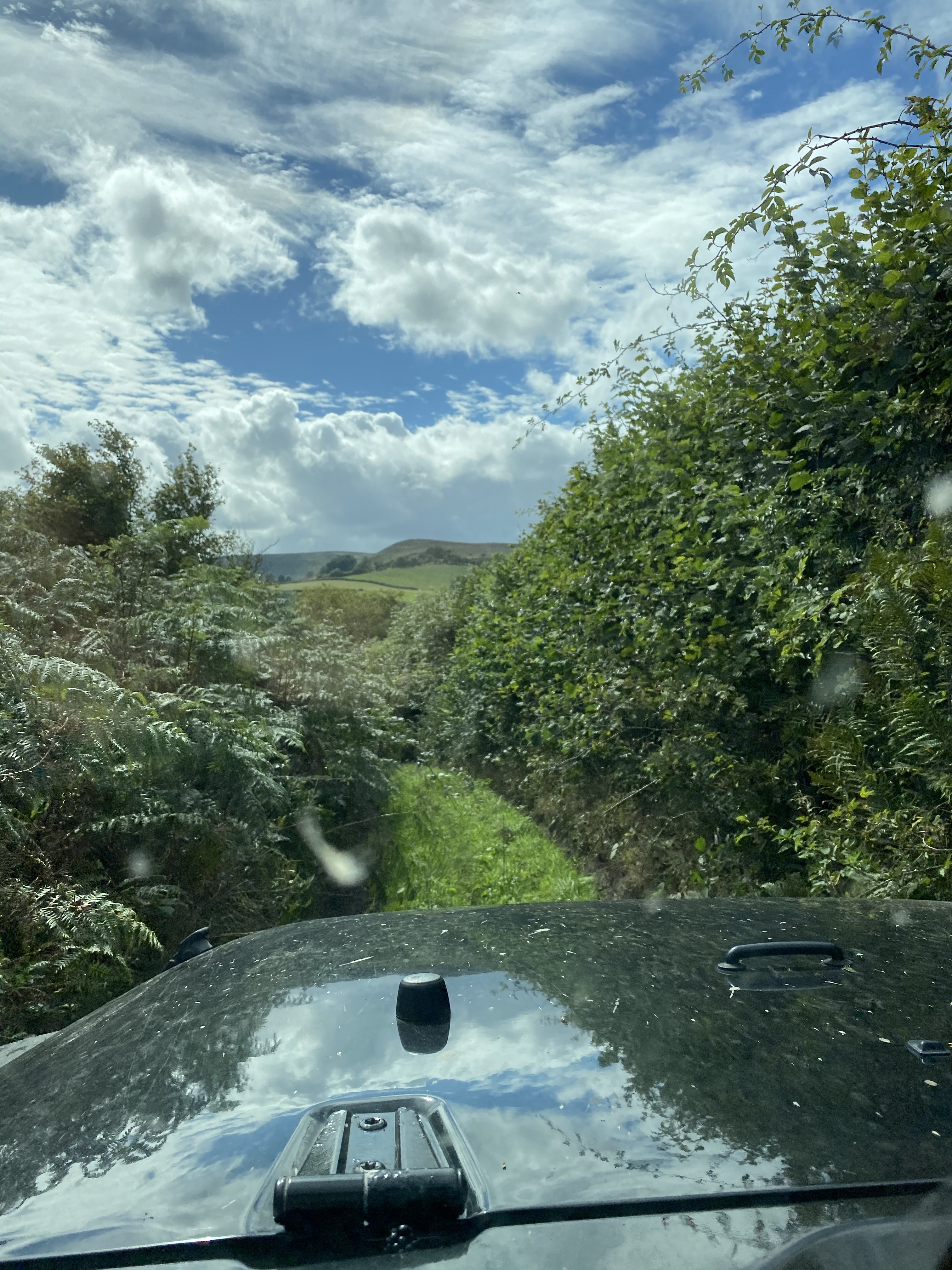 The greenlaning ended with a drive on the craziest road we have ever been on and a huge puff of smoke from engine the bonnet….. Craig did so well while I had a meltdown and ran away up the track with the dogs!!!