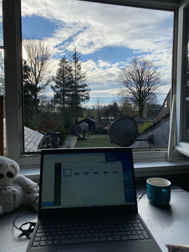 I moved the camping table upstairs along with a camping chair so was all set with this lovely view. The window has been open all day.