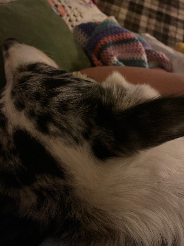 I’m lying on the day bed writing this while Freya, my new shadow, cooried in. (In an effort to change cookies to cooried I just dropped the phone on her back!!!! Oops!)