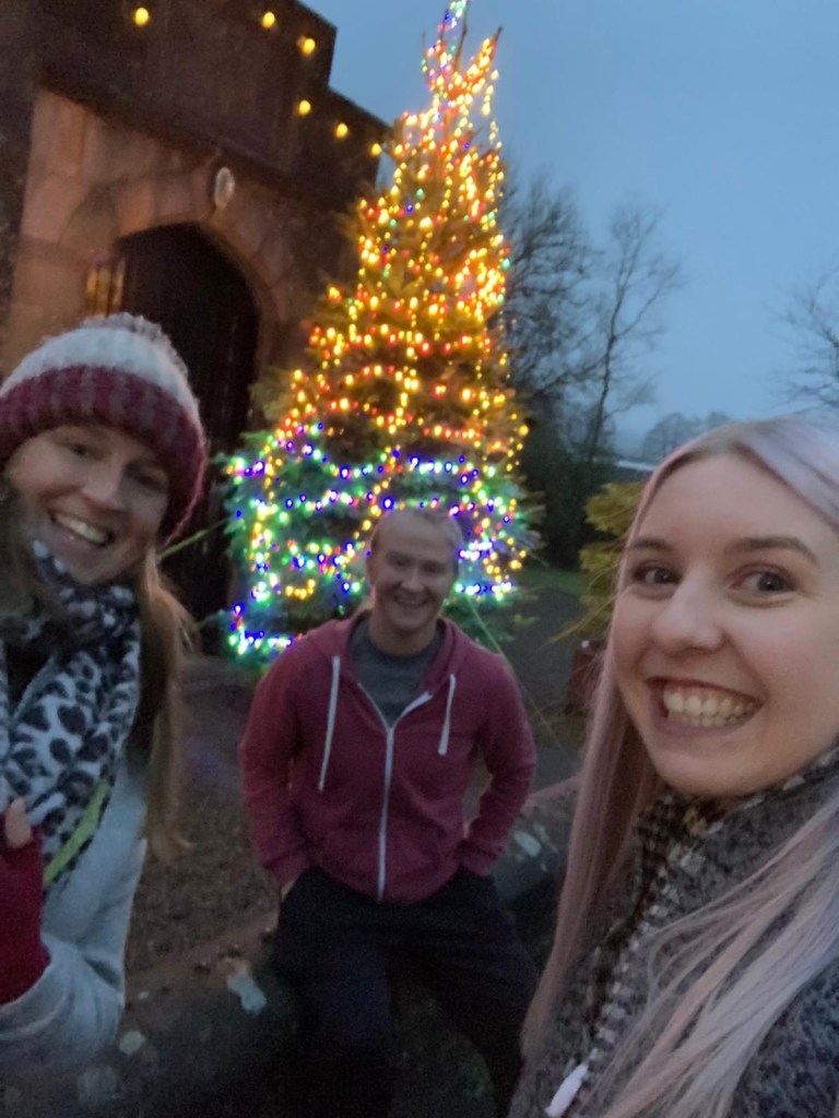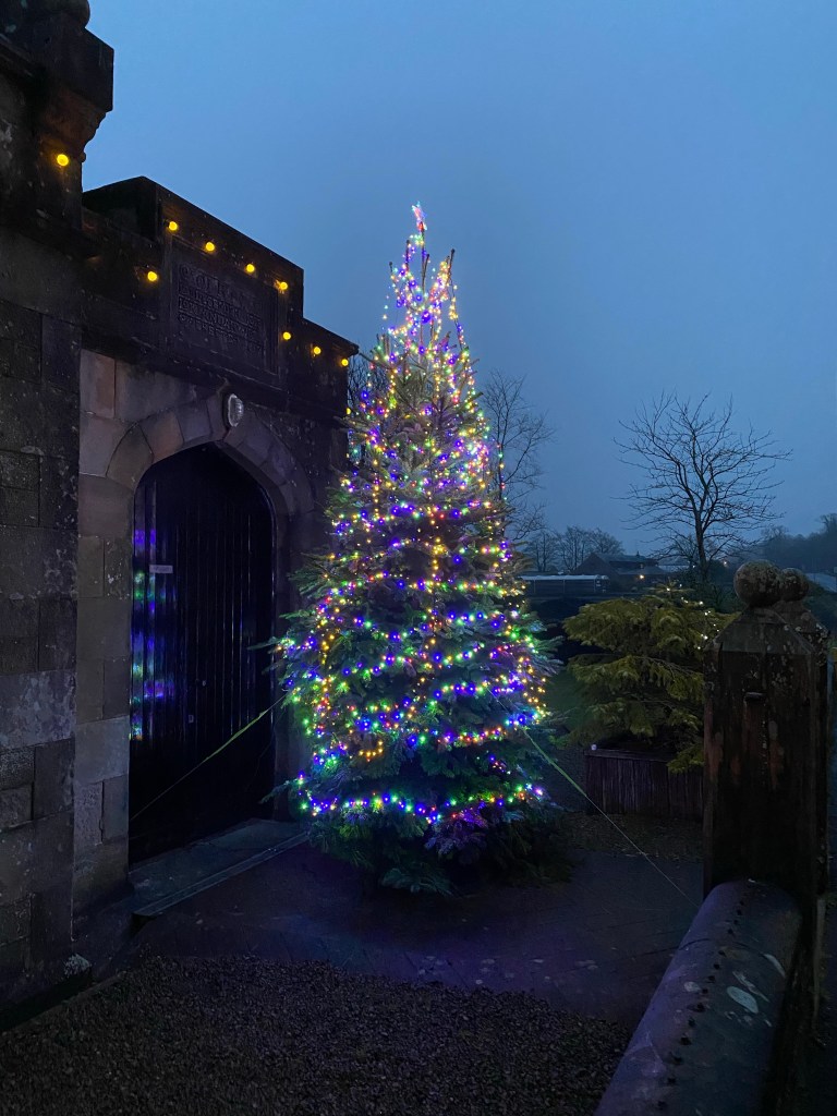 We were very lucky in the village this year when Holly who owns the pub decided to try and get a big Christmas tree die outside the memorial hall. She started asking some questions and next thing you know the Gateside Plant Centre had donated a 10ft tree and some neighbours Guy & Heather donated and fitted the lights. Such a lovely guesture.