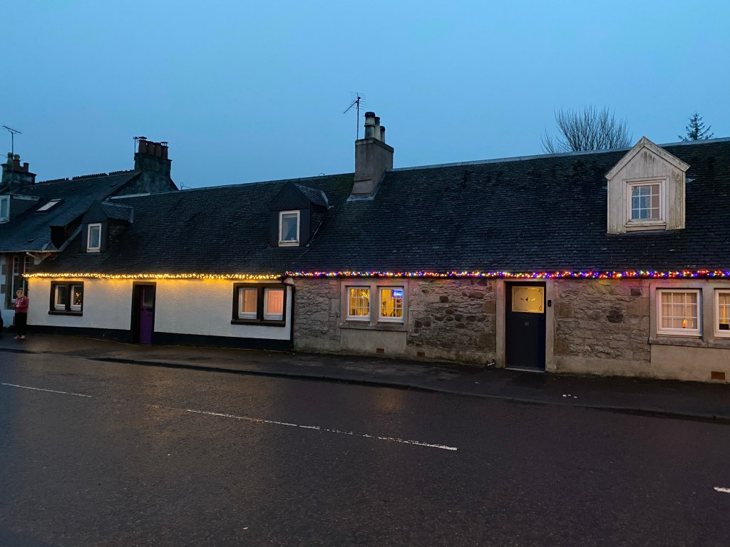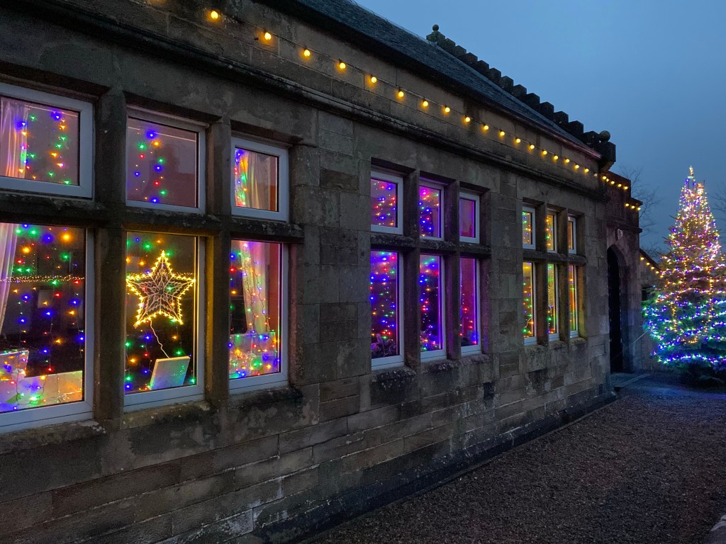 Claire and I went shopping within North Ayrshire this morning to pick up some lights for the windows of the hall. We wanted nets of lights but couldn’t get anything like that.