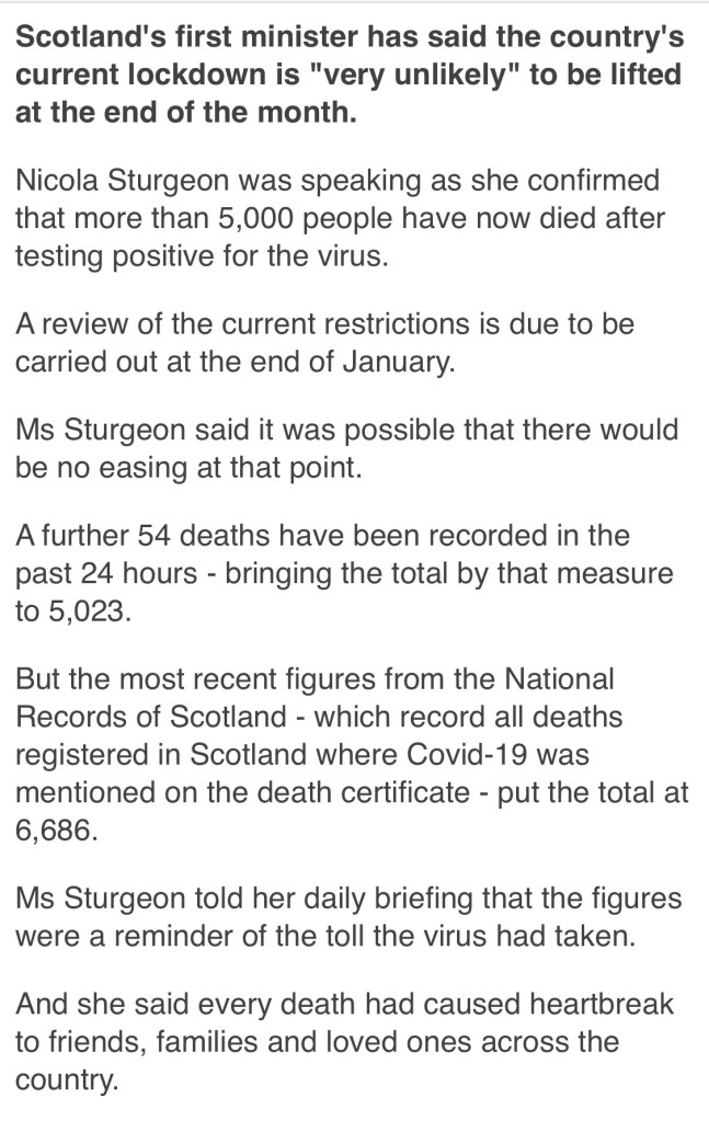 Sadly Scotland’s COVID-19 deaths surpassed 5,000 today. There is talk of our restrictions continuing which doesn’t actually surprise me at all.