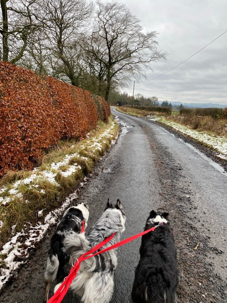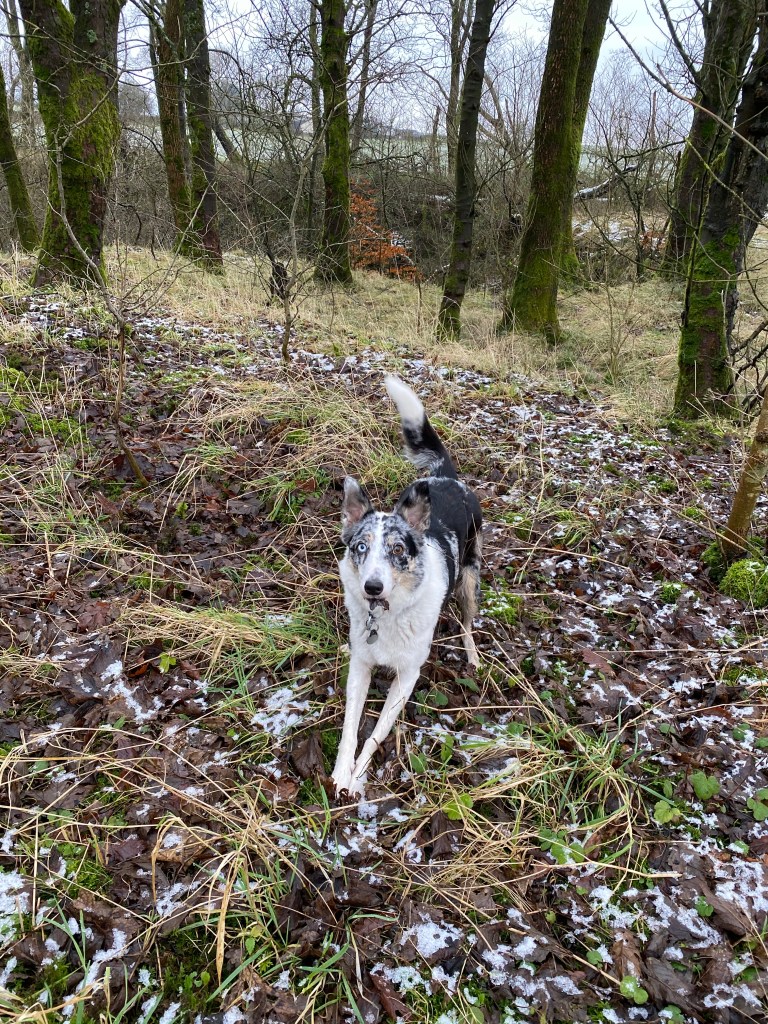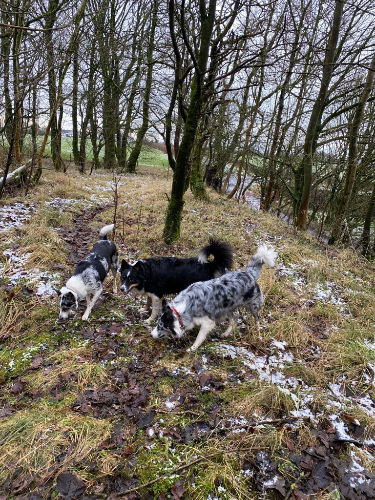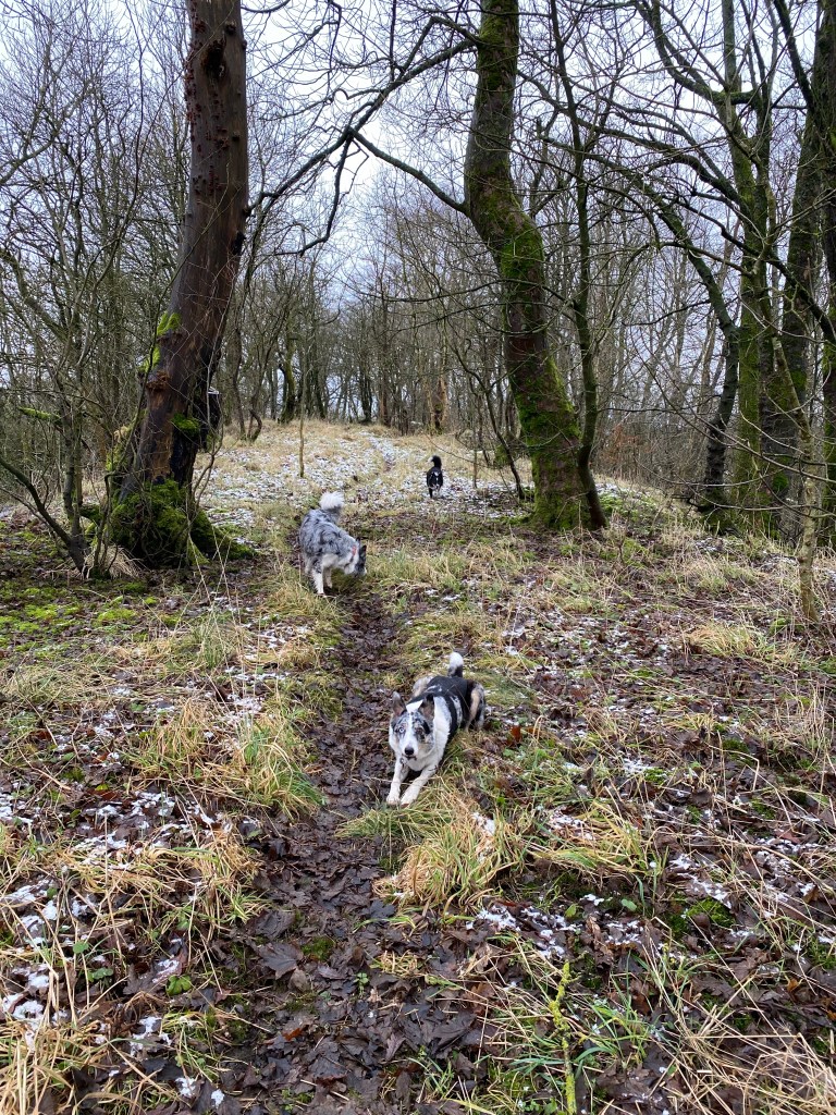 So off out with the dogs is a dry cold day but pretty dull. A bit like my mood with stomach cramps kicking in. Joy.