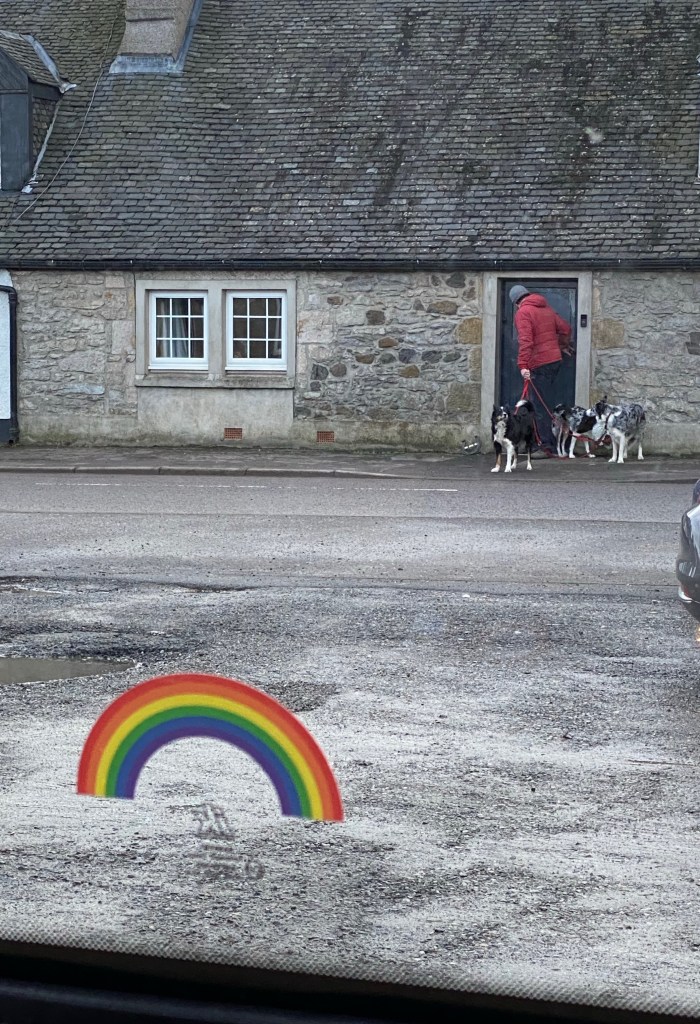 So in today’s news I had to negotiate my way around a bad accident at the Beith Bypass/A737 junction… AGAIN… this morning on the way to the Osteopath. The again being the accident and not my negotiation around it. It’s a dreadful junction. A driver doing a u-turn in the junction (I mean why would you?!) was immediately charged with dangerous driving as he sent another van careering onto the grass, through a fence and into the trees at the side of the road. No one at the scene had masks on as that’s not our first thought yet. Obviously the police did but a prime example of why we shouldn’t be on the roads. She says…. out on the road…